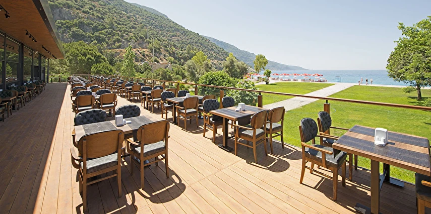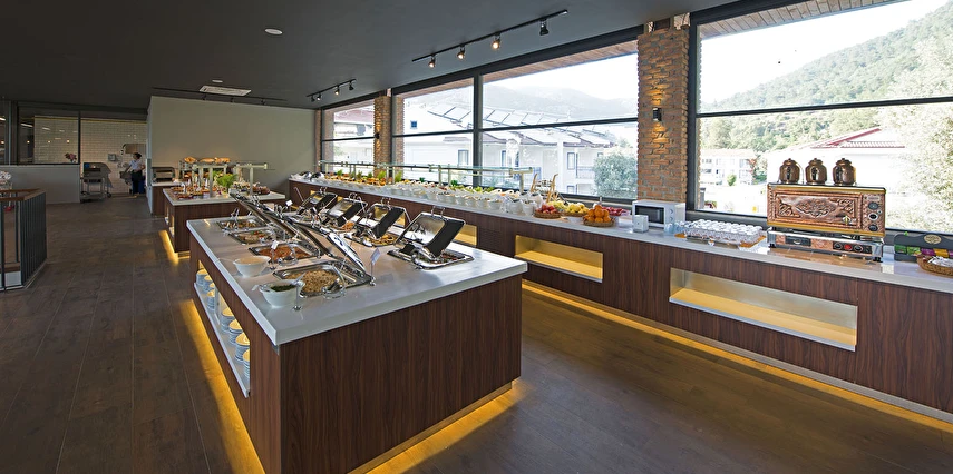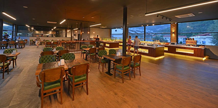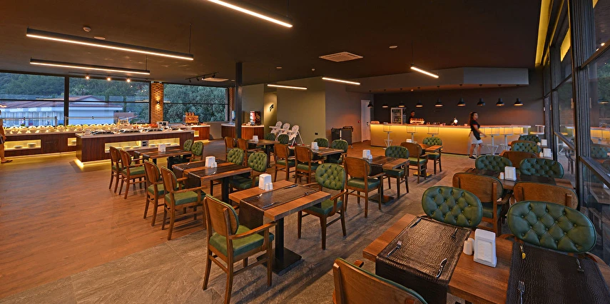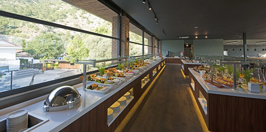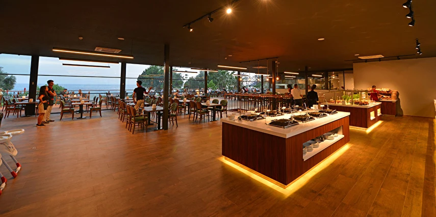 Sabah kahvaltısı, öğle ve akşam yemekleri açık büfe olup tesisin belirlediği saatler ve markalar dahilinde yerli içecekler 23:00 a kadar ücretsizdir. Taze sıkılmış meyve suları, premium alkollü ve alkolsüz içecekler, ithal ve konsept dışı şaraplar ücretlidir. Türk kahvesi ücretsizdir.