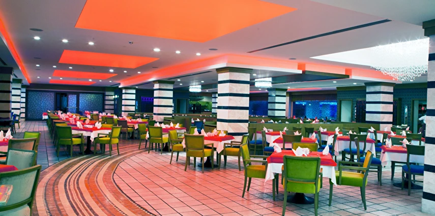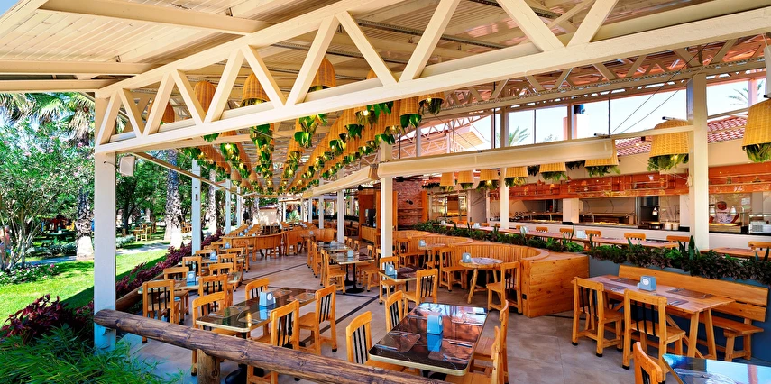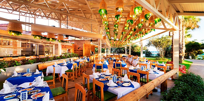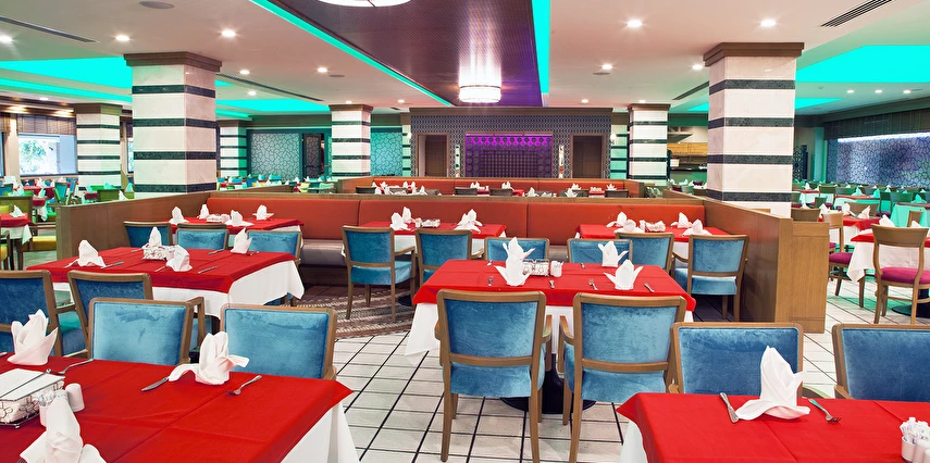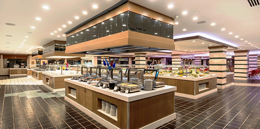 Sabah kahvaltısı, öğle ve akşam yemekleri açık büfe olup, tesisin belirlemiş olduğu yerli alkollü, alkolsüz ve bazı ithal içecekler 24 saat ücretsizdir. İthal Şampanya, Şarap ve Lüx Kategori Likör, Konyak, Brandy ve Viskiler, İmport Bitter ve Taze Sıkma Meyve Suları ücretlidir. Masa rezervasyonu ve süsleme, doğum günü pastası, özel gün organizasyonları ücretlidir.