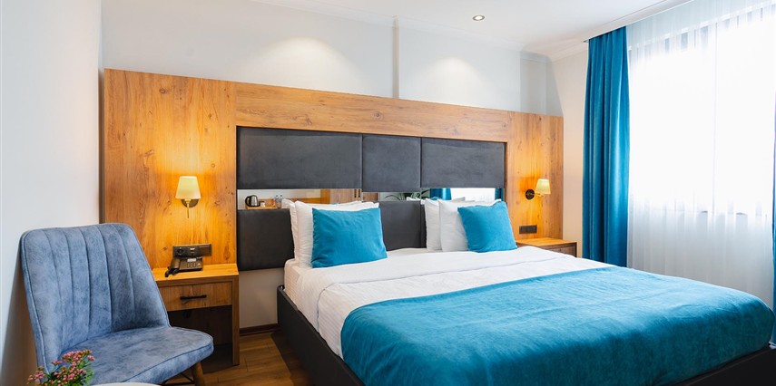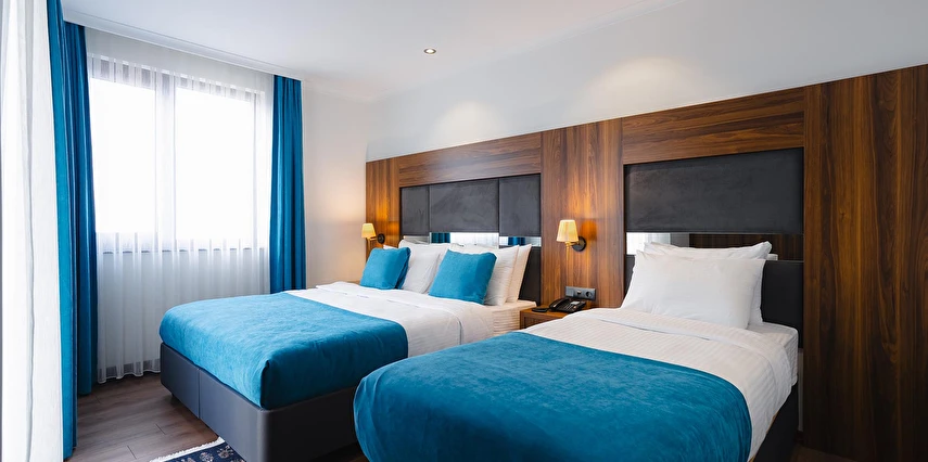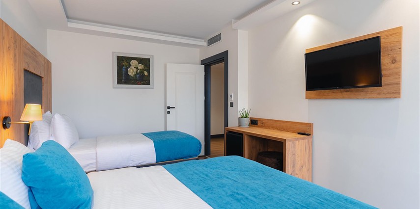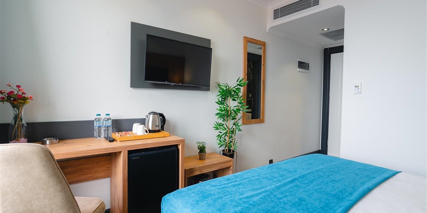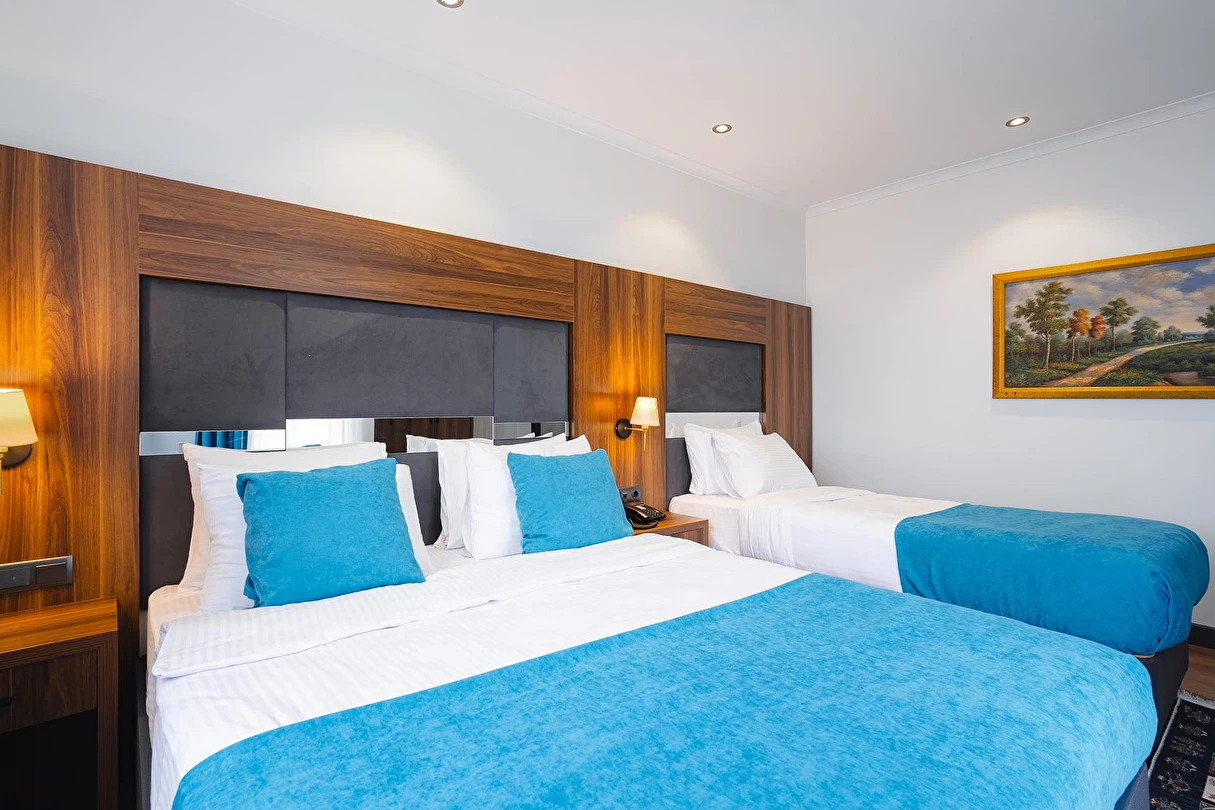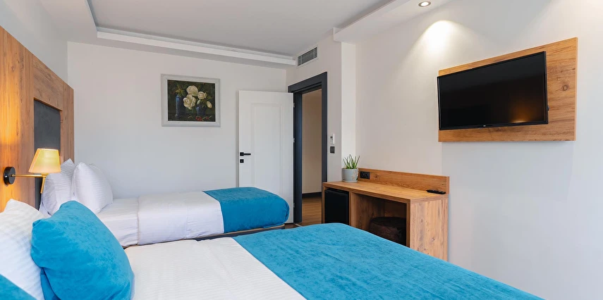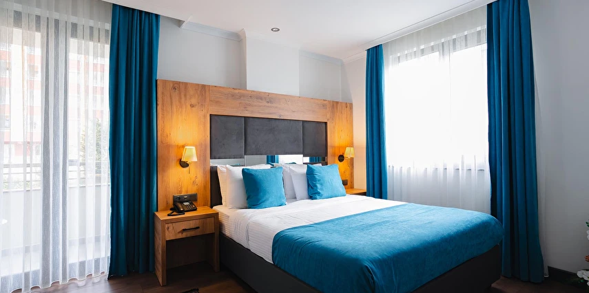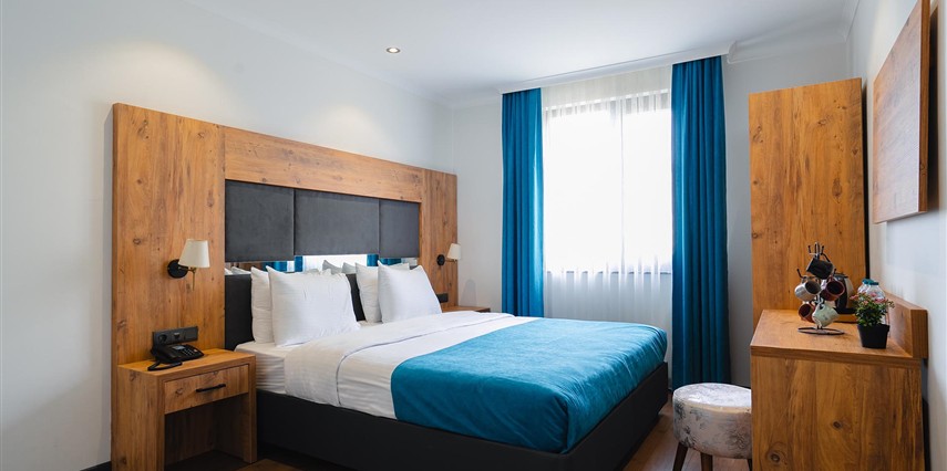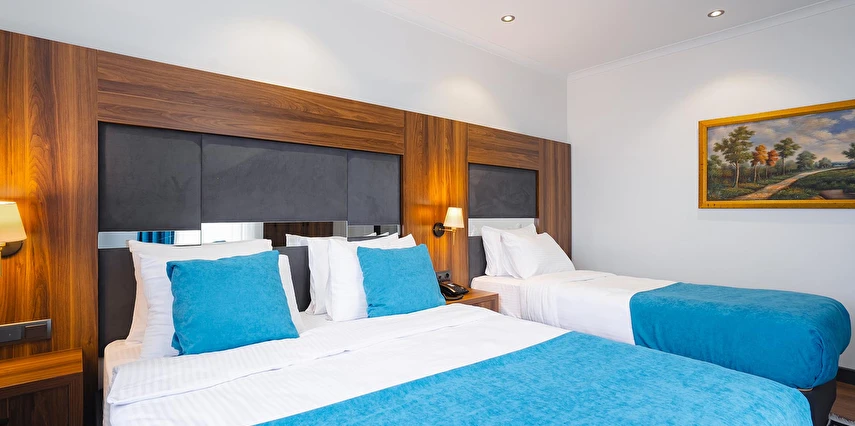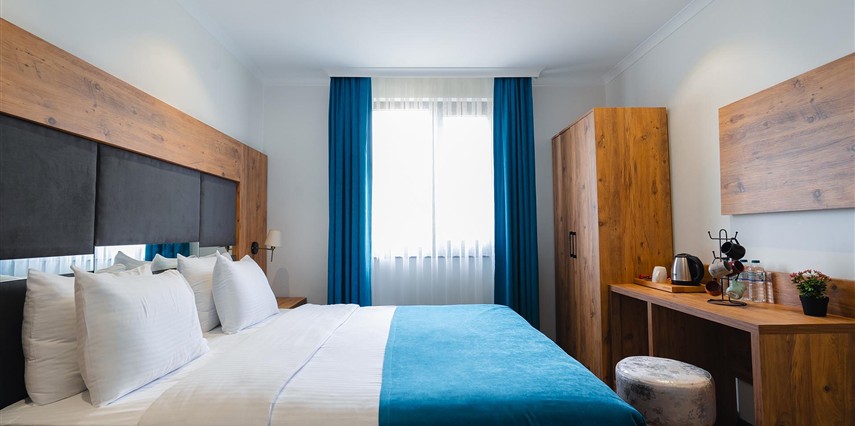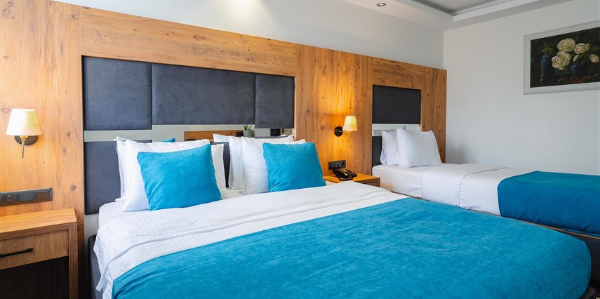 Otelimizde tek kişilik odalar, 2 kişilk ve geniş aileler için aile odalarımız bulunmaktadır. Toplam 90 odada 210 kişilk yatak kapasitesi bulunmaktadır.