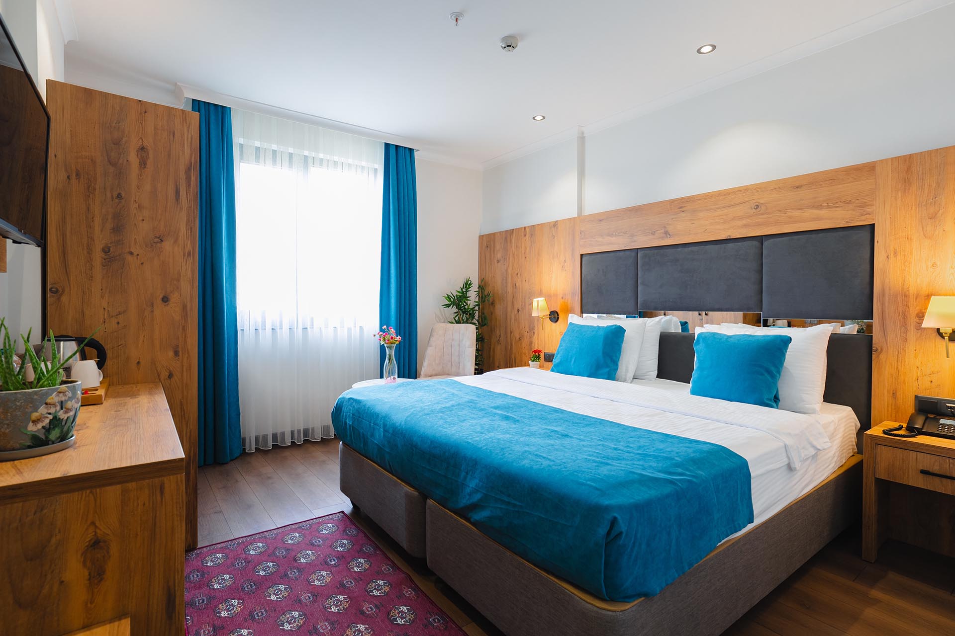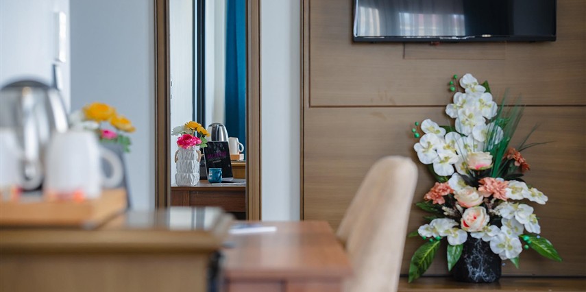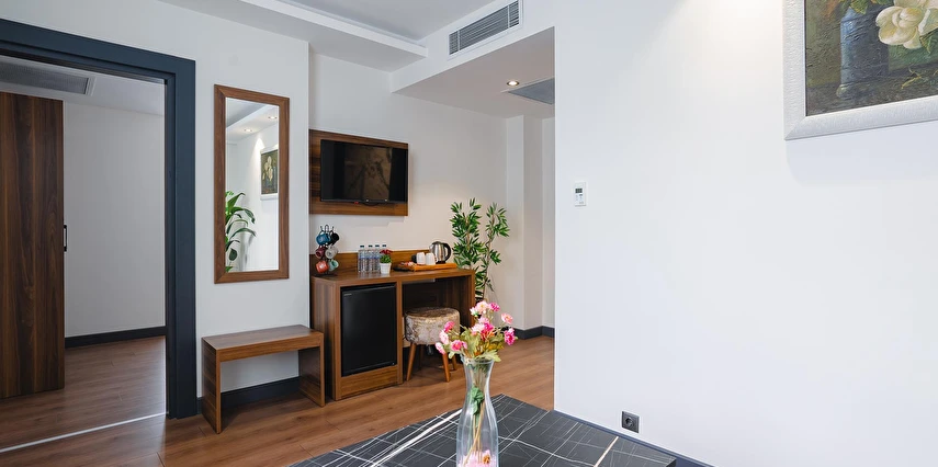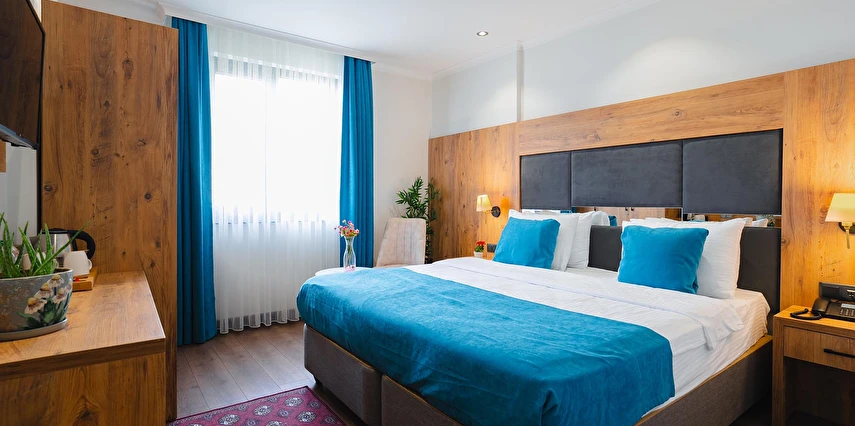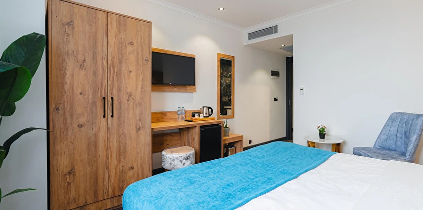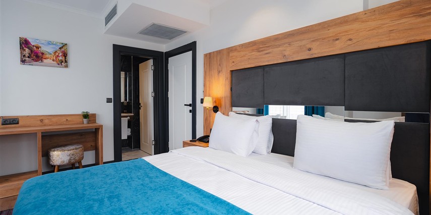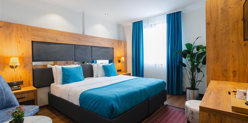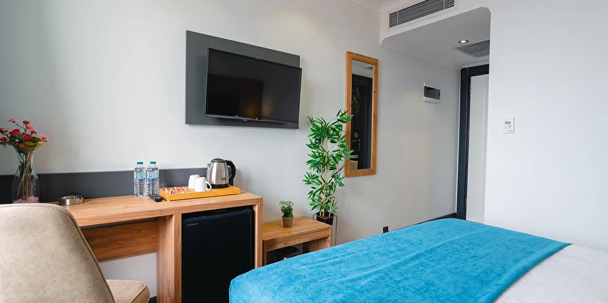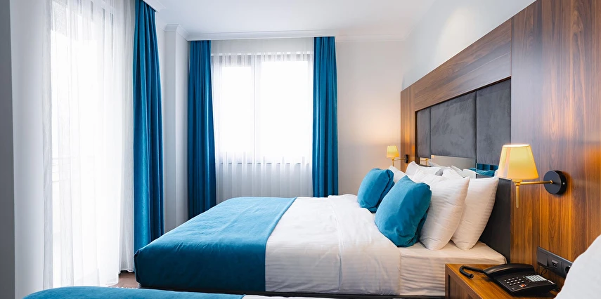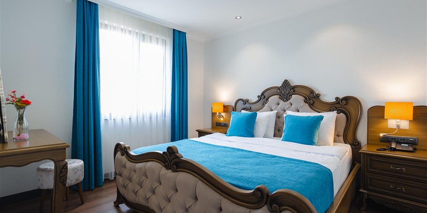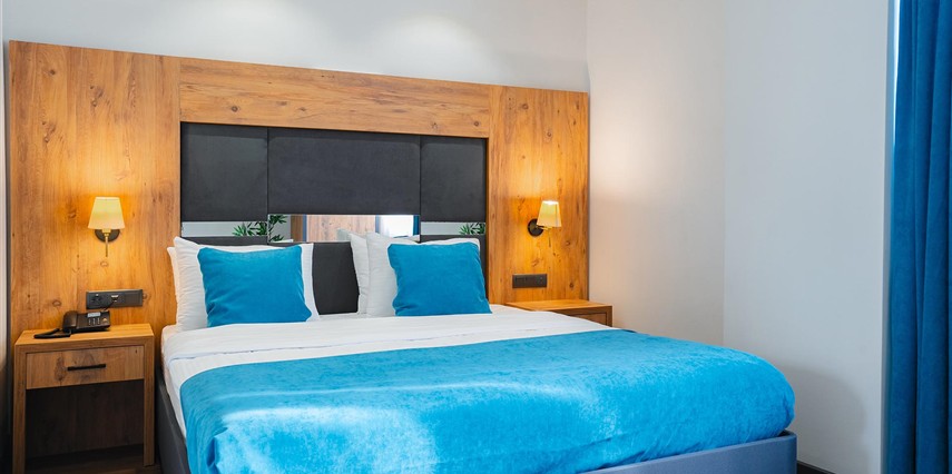 Otelimizde tek kişilik odalar, 2 kişilk ve geniş aileler için aile odalarımız bulunmaktadır. Toplam 90 odada 210 kişilk yatak kapasitesi bulunmaktadır.