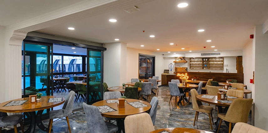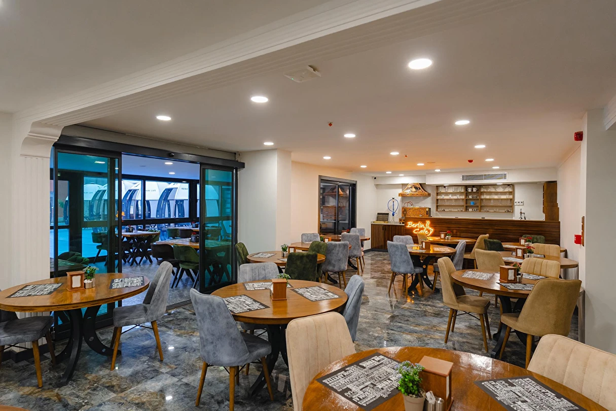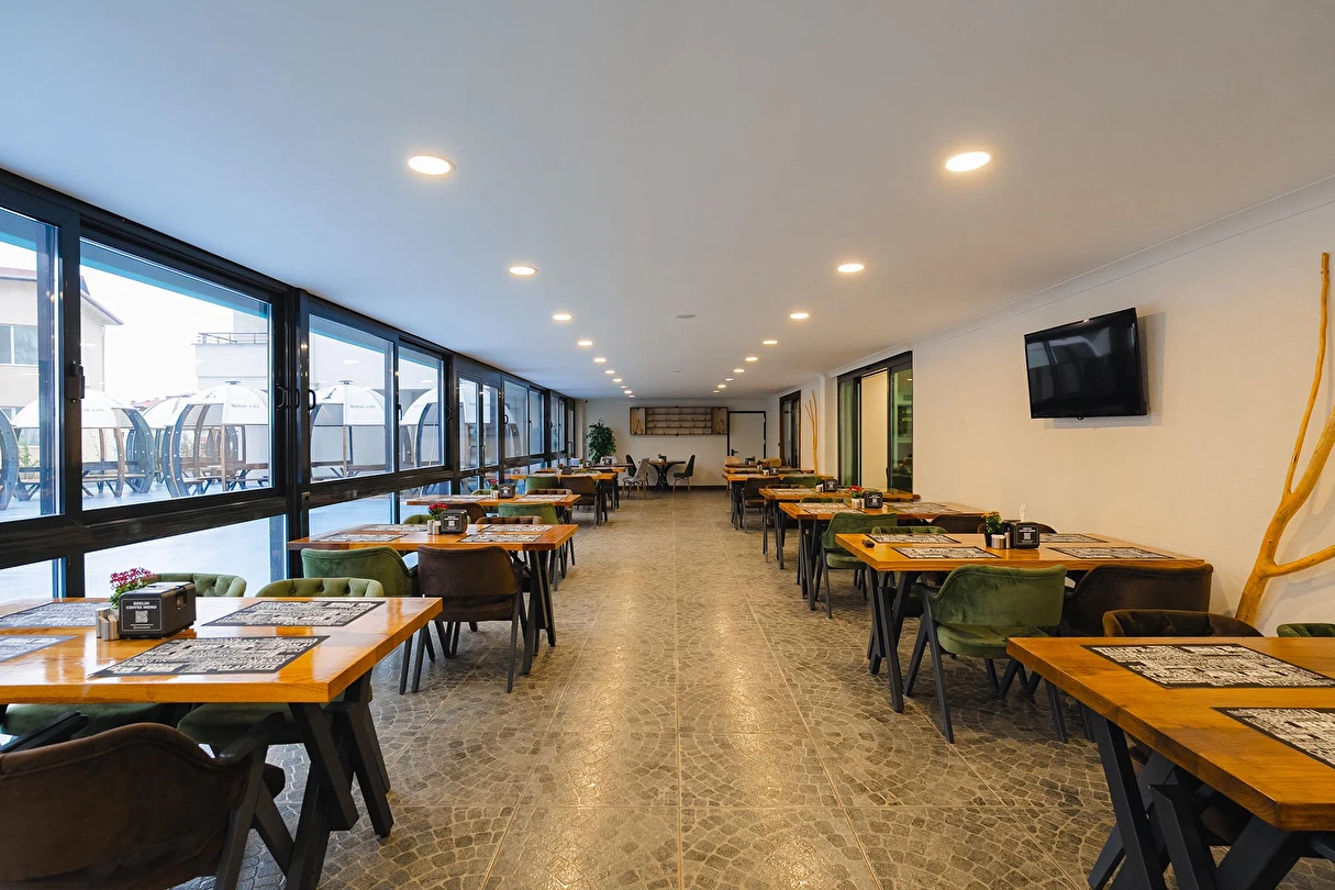 200 kişilik kapalı Restaurant, bahçeye açılan 1000 kişilk açık alan Restaurant imkanı yanında, nişan, düğün ve cafe olarak ta hizmet vermektedir. Odalarda TV, klima, mini bar ve 24 saat sıcak su bulunmaktadır. Odalarımızdan internete ücretsiz bağlanmak mümkündür.