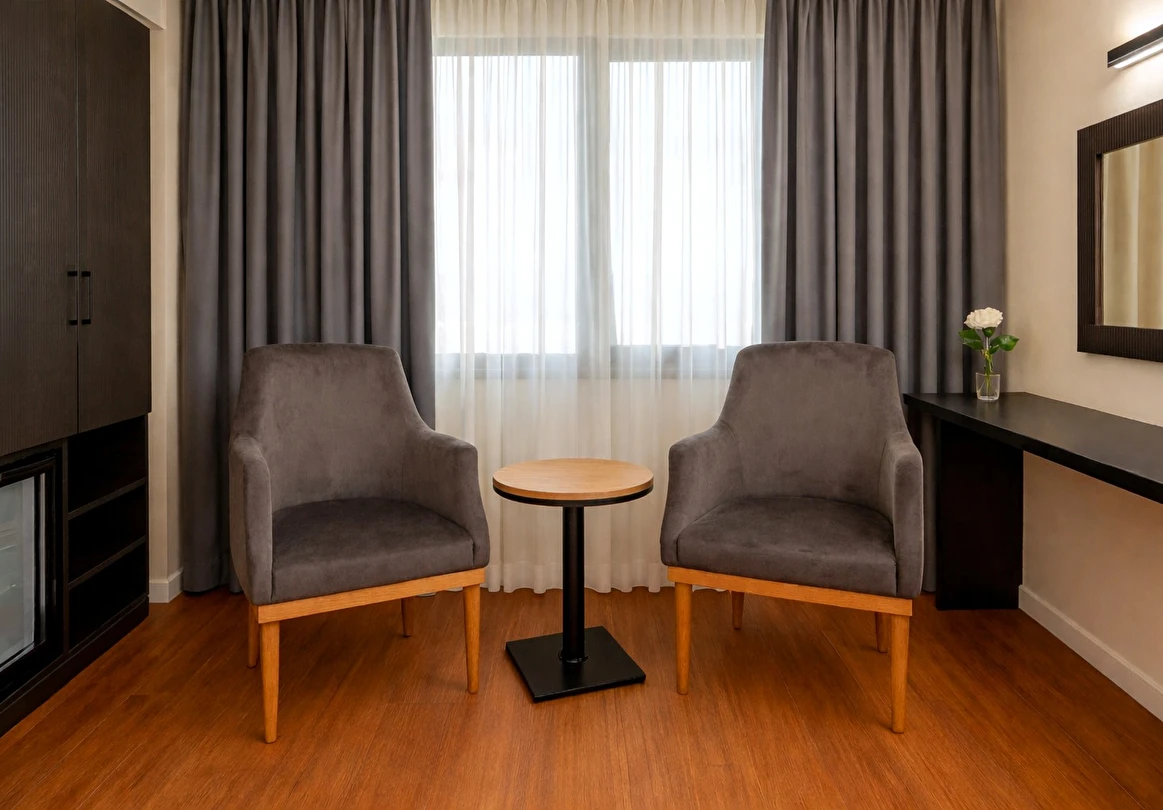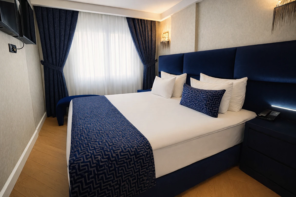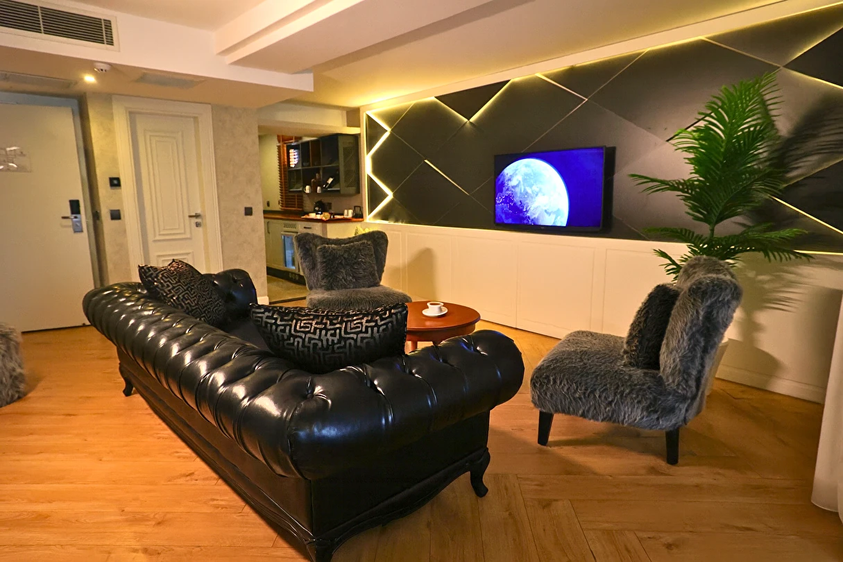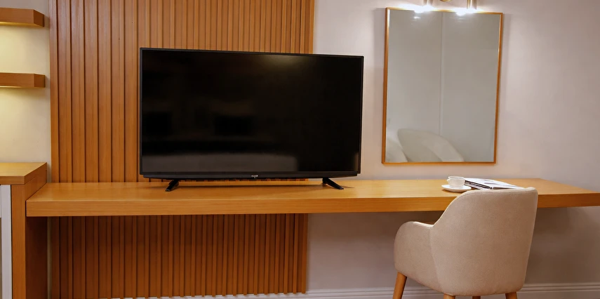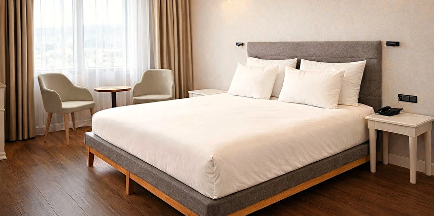Sizin için her şeyi düşünerek odalarımızı en son teknolojiyle donattık. Odalarımızda ısıyı kendinize göre ayarlayabileceğiniz klima, güvenliğiniz için elektronik kilit sistemi, değerli eşyalarınız için elektronik kasa, ihtiyaçlarınız için Minibar, Saç kurutma makinesi, TV, Uydu yayını, Telefon, Çay kahve seti, iş yaşantınız konfor sağlamak için şık bir çalışma masası bulunmaktadır.