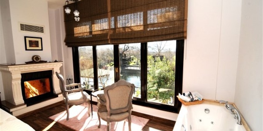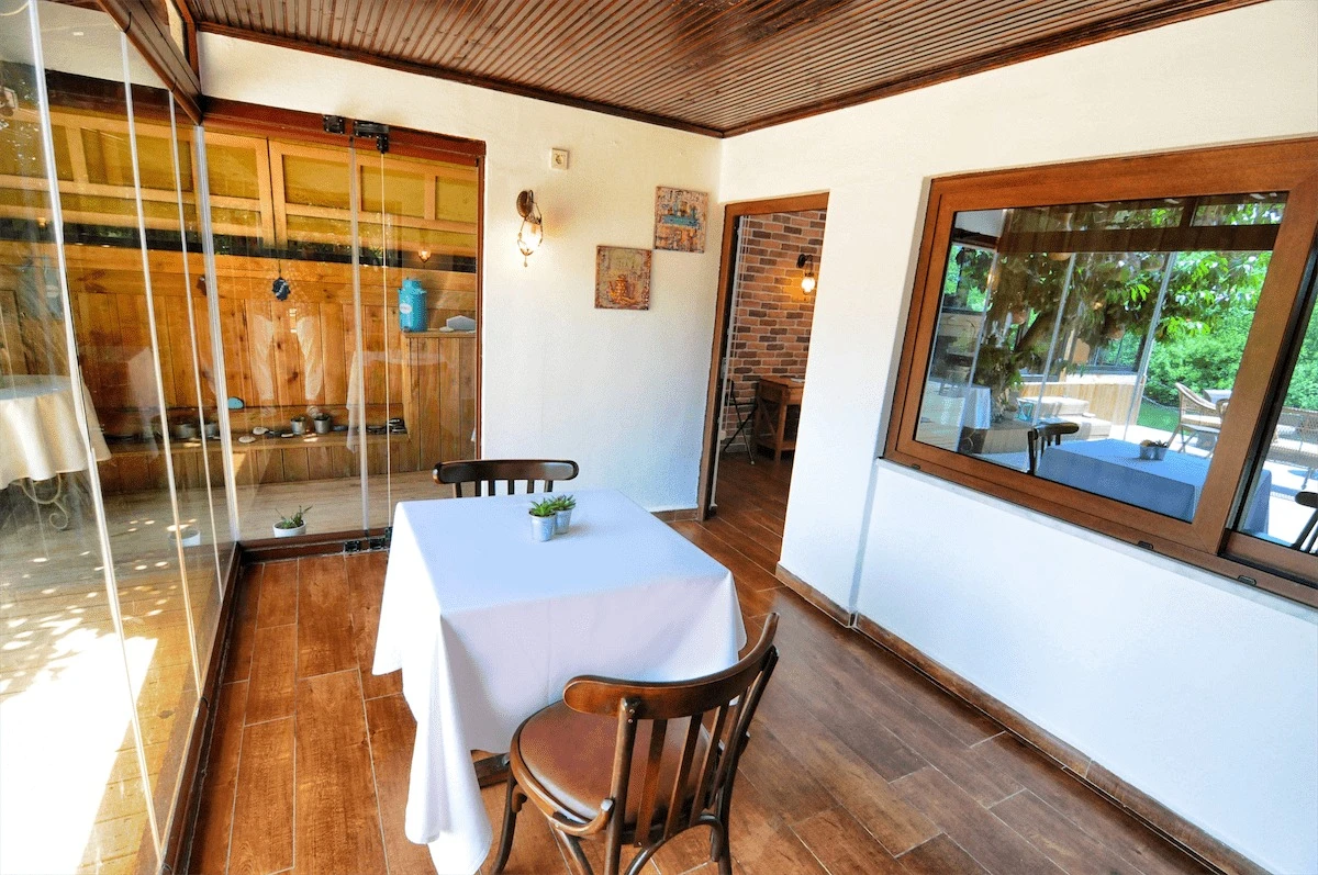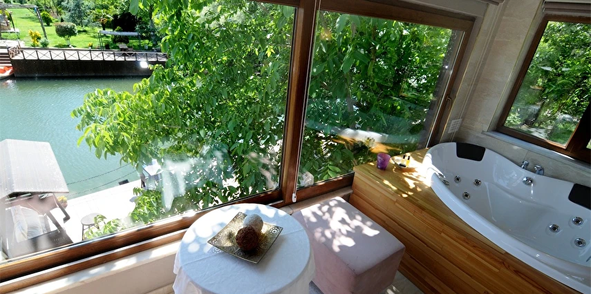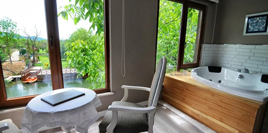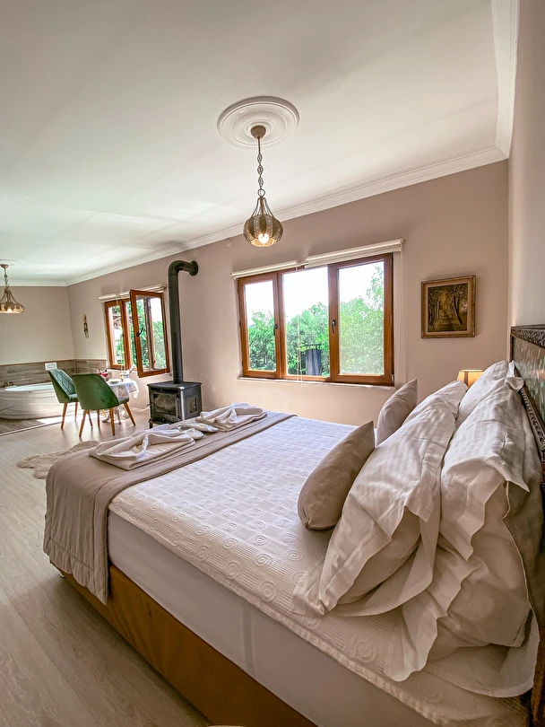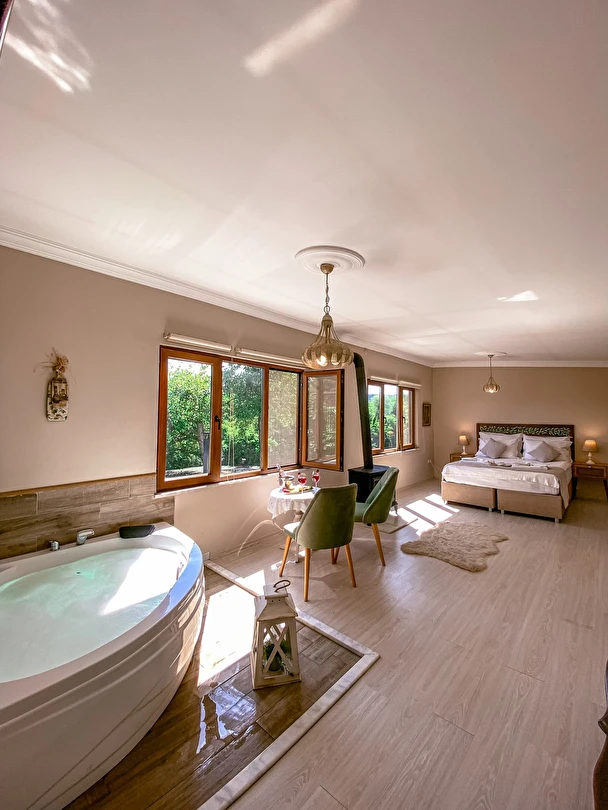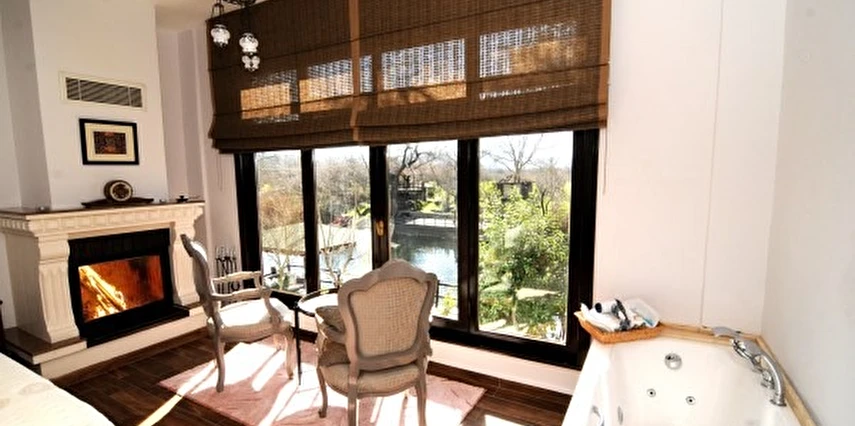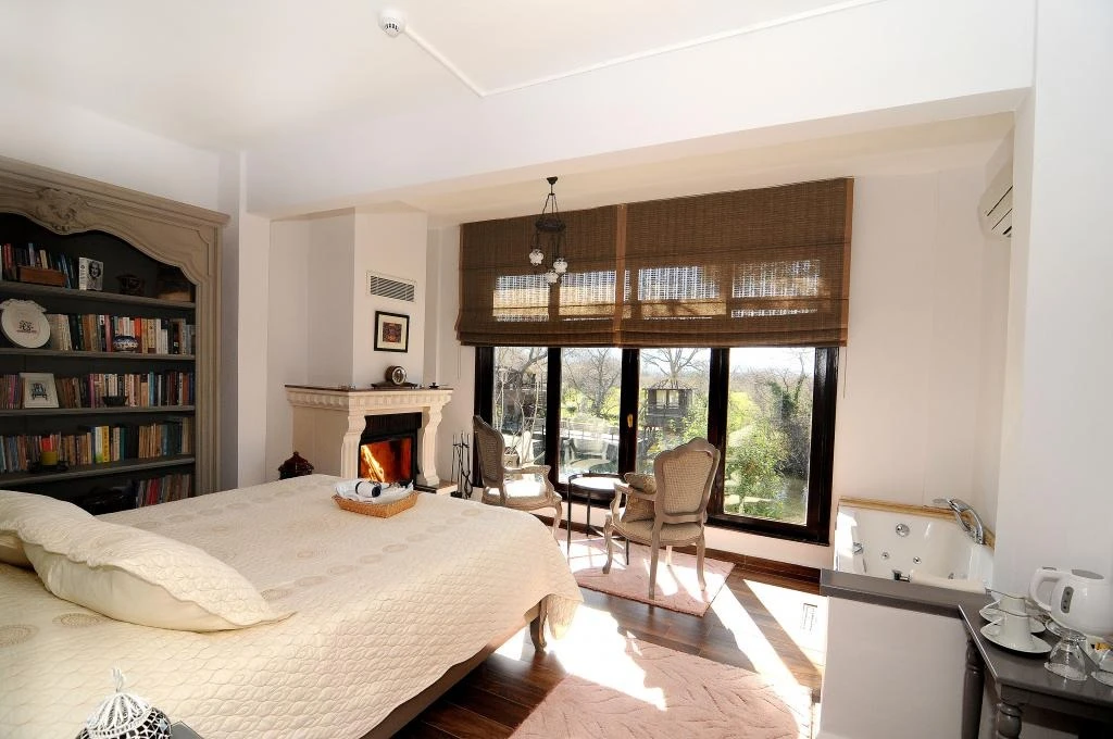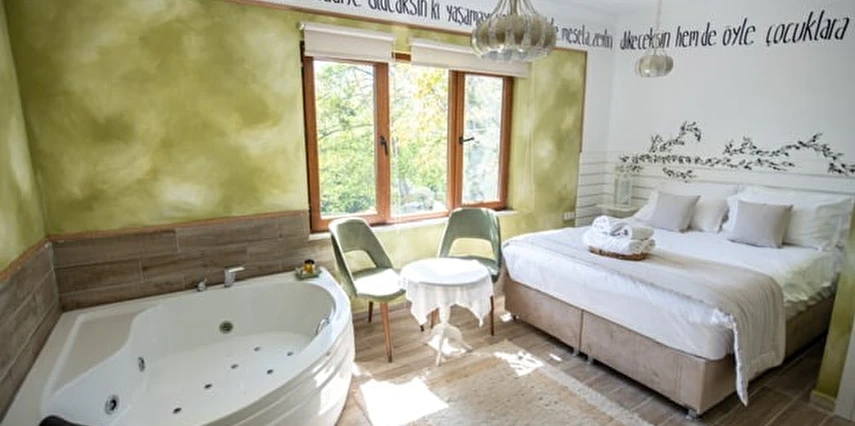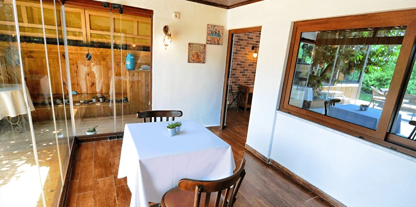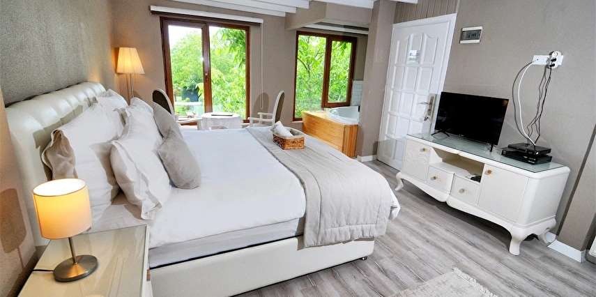 Daha Fazla GösterGöksu Nehri’nin tam kıyısında, doğa ile iç içe dinlendirici bahçe ve ahşap iskelesi, şömineli özel restoranı ve birbirinden farklı ve özenle döşenmiş, nehir manzaralı, konforlu odalarıyla hizmet veren Beyaz Ev Ağva Otel, sessiz, sakin ve huzurlu bir atmosfer sunuyor. 3 adet jakuzili ve şömineli süit oda, 4 adet jakuzili süit oda ve 2 adet standart oda mevcut. Tesisin tüm odaları nehir manzaralı olup, zengin bir serpme kahvaltı ile misafirlerine unutulmaz bir konaklama deneyimi yaşatıyor. Ayrıca Yetişkin Oteli konsepti ile hizmet veren tesiste, akşam yemeği ve gün boyu servis alabileceğin nehir manzaralı ve şömineli a la carte restoran mevcut. Göksu Nehri kıyısında geniş bahçesi ve nehir manzaralı odalarıyla hizmet veren tesis; sessiz, sakin ve huzurlu bir atmosferde misafirlerini ağırlıyor. Şehrin karmaşasından biraz uzaklaşmak ve doğa ile iç içe olup huzurlu birkaç gün geçirmek isteyen misafirler tarafından sıklıkla tercih edilen Beyaz Ev Ağva, Ağva’nın en güzel yerlerinden birinde misafirlerini ağırlıyor. Göksu Nehri kıyısında yer alan tesis, huzur dolu ve dinlendirici bir ahşap iskele ve bahçeye sahip. Sessiz ve sakin atmosferinin yanı sıra güler yüzlü personelleri ve kaliteli hizmet anlayışıyla da öne çıkan tesis,nehir manzaralı odalarında konforlu bir konaklama deneyimi vadediyor. Yetişkin oteli olarak hizmet veren Beyaz Ev Ağva, 16 yaş üstü misafirleri ağırlıyor. Modern şekilde dekore edilmiş odalarında şık bir ortam sunan tesiste 7 süit ve 2 standart oda yer alıyor. Misafirler tesisin jakuzili odalarında konaklamayı tercih ederek tatiline renk katabilir. Tesiste konaklayan misafirler lezzetli bir kahvaltı ile güne başlayabilir. Romantik bir tatil için Beyaz Ev Ağva’ya gelen misafirler, nehir kıyısındaki dinlenme alanlarında keyifle zaman geçirebilir. Misafirler, nehirde tekne turu yapabilir ya da Ağva Plajı’na gidebilir. Göksu Nehri kıyısında geniş bahçesi ve nehir manzaralı odalarıyla hizmet veren tesis; sessiz, sakin ve huzurlu bir atmosferde misafirlerini ağırlıyor.