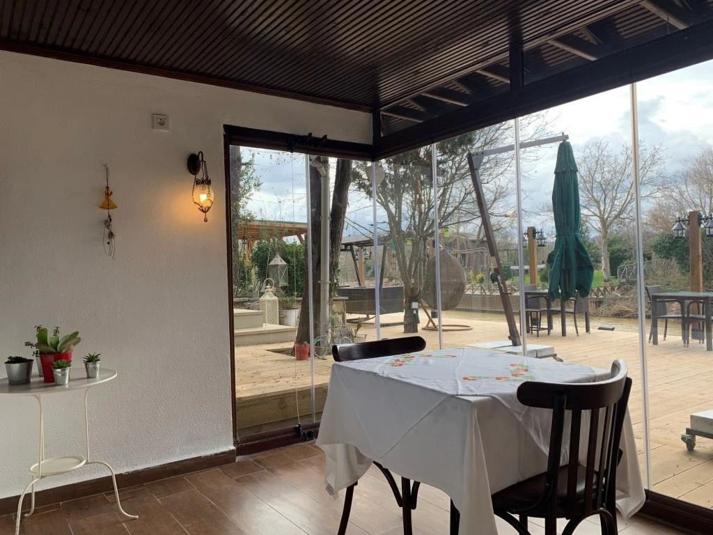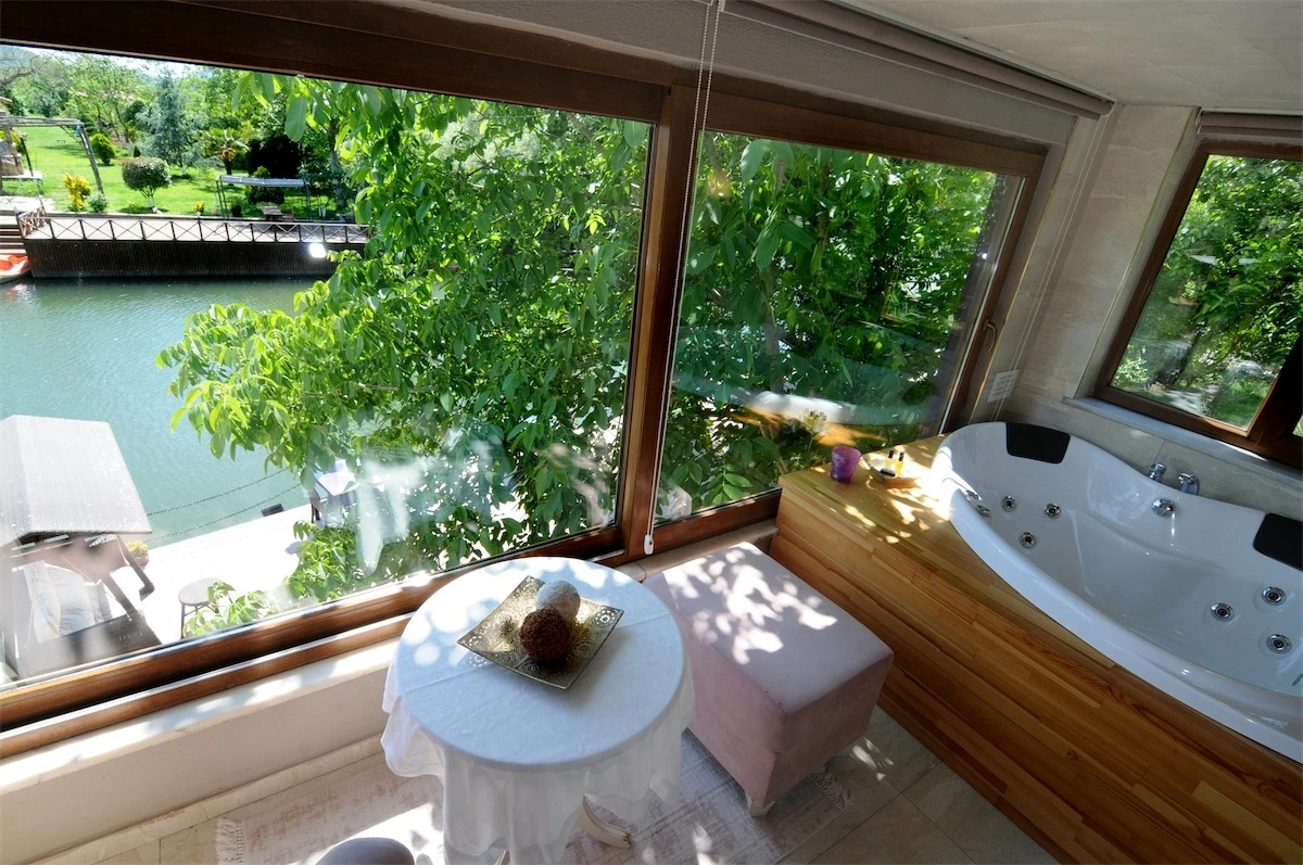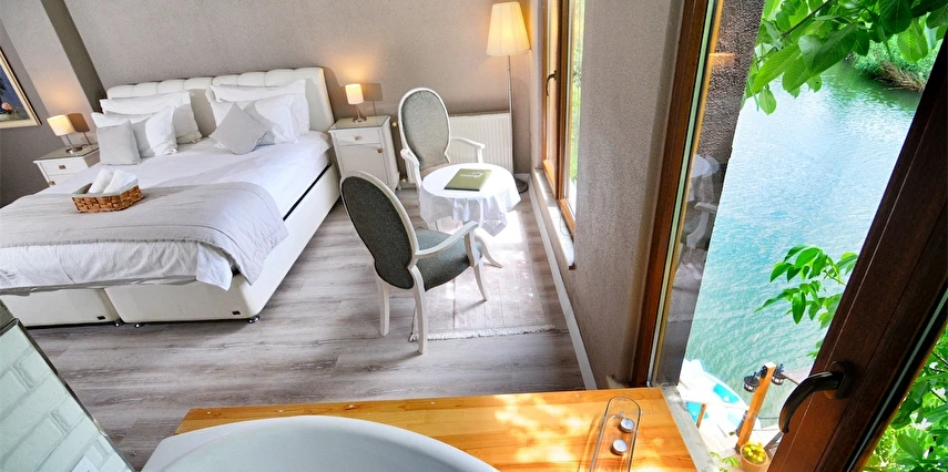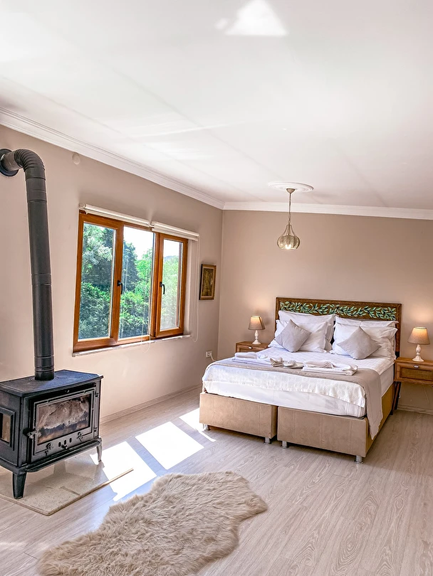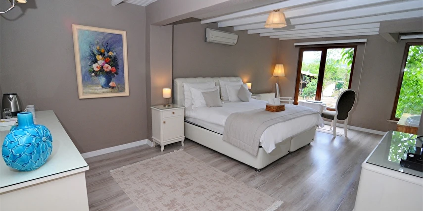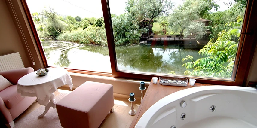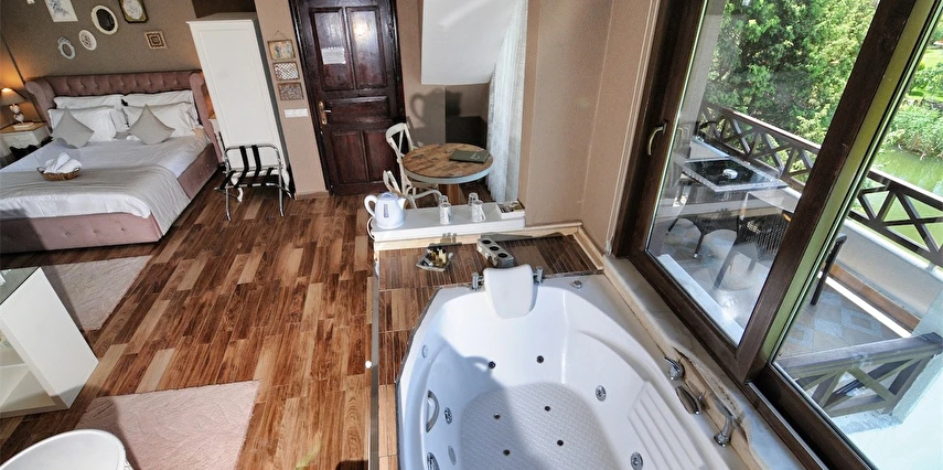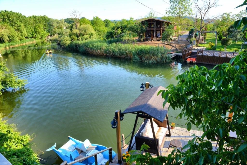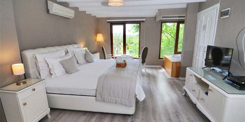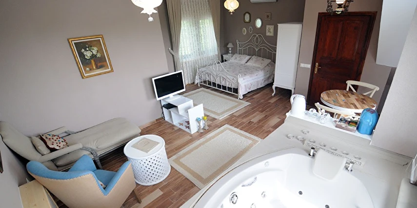Daha Fazla GösterGöksu Nehri’nin tam kıyısında, doğa ile iç içe dinlendirici bahçe ve ahşap iskelesi, şömineli özel restoranı ve birbirinden farklı ve özenle döşenmiş, nehir manzaralı, konforlu odalarıyla hizmet veren Beyaz Ev Ağva Otel, sessiz, sakin ve huzurlu bir atmosfer sunuyor. 3 adet jakuzili ve şömineli süit oda, 4 adet jakuzili süit oda ve 2 adet standart oda mevcut. Tesisin tüm odaları nehir manzaralı olup, zengin bir serpme kahvaltı ile misafirlerine unutulmaz bir konaklama deneyimi yaşatıyor. Ayrıca Yetişkin Oteli konsepti ile hizmet veren tesiste, akşam yemeği ve gün boyu servis alabileceğin nehir manzaralı ve şömineli a la carte restoran mevcut. Göksu Nehri kıyısında geniş bahçesi ve nehir manzaralı odalarıyla hizmet veren tesis; sessiz, sakin ve huzurlu bir atmosferde misafirlerini ağırlıyor. Şehrin karmaşasından biraz uzaklaşmak ve doğa ile iç içe olup huzurlu birkaç gün geçirmek isteyen misafirler tarafından sıklıkla tercih edilen Beyaz Ev Ağva, Ağva’nın en güzel yerlerinden birinde misafirlerini ağırlıyor. Göksu Nehri kıyısında yer alan tesis, huzur dolu ve dinlendirici bir ahşap iskele ve bahçeye sahip. Sessiz ve sakin atmosferinin yanı sıra güler yüzlü personelleri ve kaliteli hizmet anlayışıyla da öne çıkan tesis,nehir manzaralı odalarında konforlu bir konaklama deneyimi vadediyor. Yetişkin oteli olarak hizmet veren Beyaz Ev Ağva, 16 yaş üstü misafirleri ağırlıyor. Modern şekilde dekore edilmiş odalarında şık bir ortam sunan tesiste 7 süit ve 2 standart oda yer alıyor. Misafirler tesisin jakuzili odalarında konaklamayı tercih ederek tatiline renk katabilir. Tesiste konaklayan misafirler lezzetli bir kahvaltı ile güne başlayabilir. Romantik bir tatil için Beyaz Ev Ağva’ya gelen misafirler, nehir kıyısındaki dinlenme alanlarında keyifle zaman geçirebilir. Misafirler, nehirde tekne turu yapabilir ya da Ağva Plajı’na gidebilir. Göksu Nehri kıyısında geniş bahçesi ve nehir manzaralı odalarıyla hizmet veren tesis; sessiz, sakin ve huzurlu bir atmosferde misafirlerini ağırlıyor.