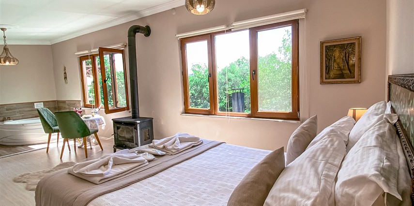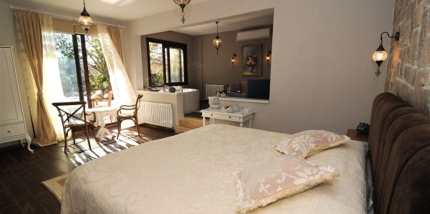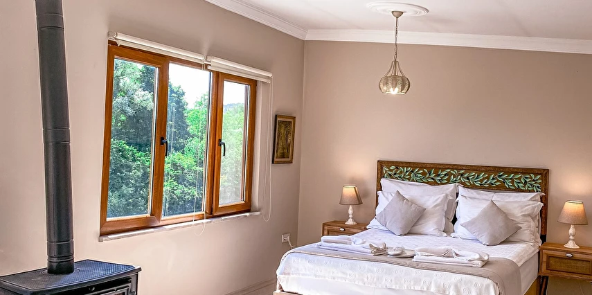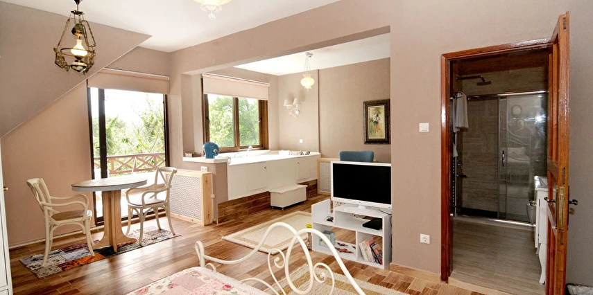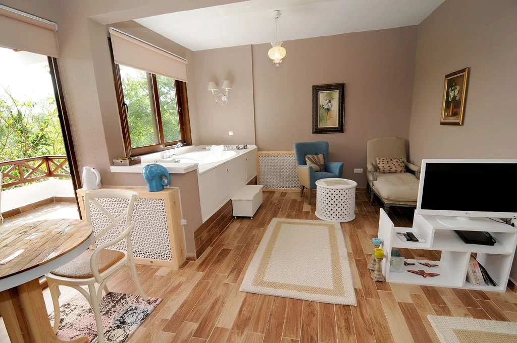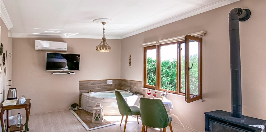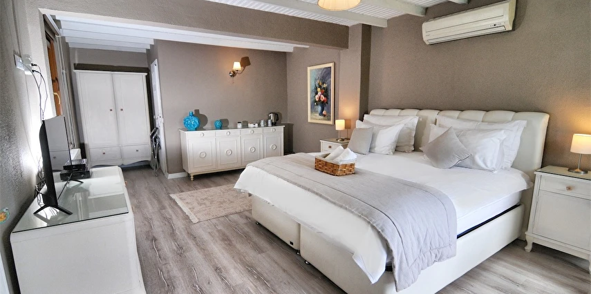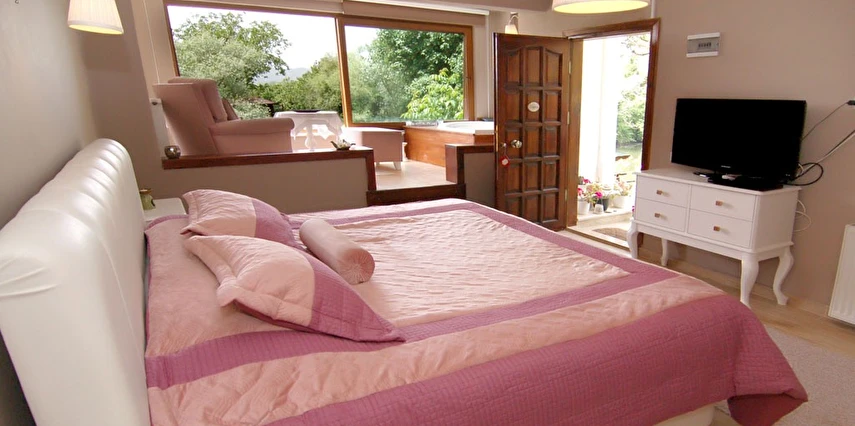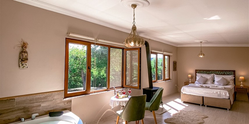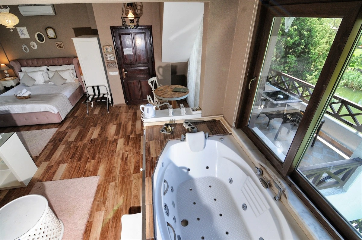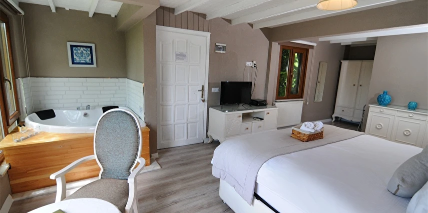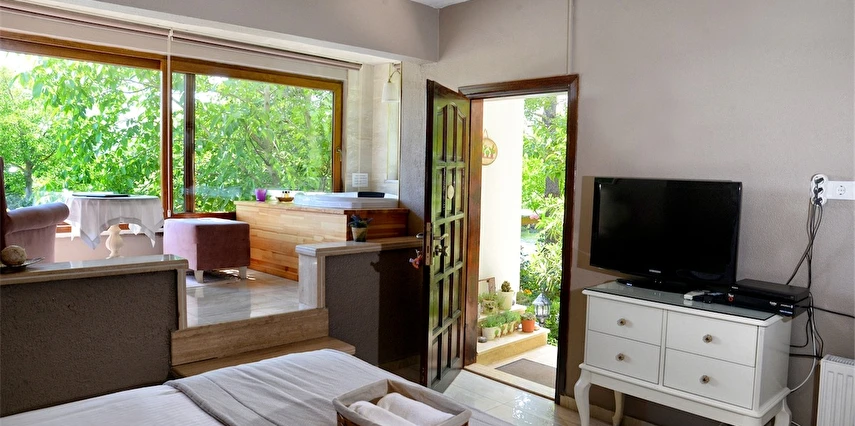 Daha Fazla GösterGöksu Nehri’nin tam kıyısında, doğa ile iç içe dinlendirici bahçe ve ahşap iskelesi, şömineli özel restoranı ve birbirinden farklı ve özenle döşenmiş, nehir manzaralı, konforlu odalarıyla hizmet veren Beyaz Ev Ağva Otel, sessiz, sakin ve huzurlu bir atmosfer sunuyor. 3 adet jakuzili ve şömineli süit oda, 4 adet jakuzili süit oda ve 2 adet standart oda mevcut. Tesisin tüm odaları nehir manzaralı olup, zengin bir serpme kahvaltı ile misafirlerine unutulmaz bir konaklama deneyimi yaşatıyor. Ayrıca Yetişkin Oteli konsepti ile hizmet veren tesiste, akşam yemeği ve gün boyu servis alabileceğin nehir manzaralı ve şömineli a la carte restoran mevcut. Göksu Nehri kıyısında geniş bahçesi ve nehir manzaralı odalarıyla hizmet veren tesis; sessiz, sakin ve huzurlu bir atmosferde misafirlerini ağırlıyor. Şehrin karmaşasından biraz uzaklaşmak ve doğa ile iç içe olup huzurlu birkaç gün geçirmek isteyen misafirler tarafından sıklıkla tercih edilen Beyaz Ev Ağva, Ağva’nın en güzel yerlerinden birinde misafirlerini ağırlıyor. Göksu Nehri kıyısında yer alan tesis, huzur dolu ve dinlendirici bir ahşap iskele ve bahçeye sahip. Sessiz ve sakin atmosferinin yanı sıra güler yüzlü personelleri ve kaliteli hizmet anlayışıyla da öne çıkan tesis,nehir manzaralı odalarında konforlu bir konaklama deneyimi vadediyor. Yetişkin oteli olarak hizmet veren Beyaz Ev Ağva, 16 yaş üstü misafirleri ağırlıyor. Modern şekilde dekore edilmiş odalarında şık bir ortam sunan tesiste 7 süit ve 2 standart oda yer alıyor. Misafirler tesisin jakuzili odalarında konaklamayı tercih ederek tatiline renk katabilir. Tesiste konaklayan misafirler lezzetli bir kahvaltı ile güne başlayabilir. Romantik bir tatil için Beyaz Ev Ağva’ya gelen misafirler, nehir kıyısındaki dinlenme alanlarında keyifle zaman geçirebilir. Misafirler, nehirde tekne turu yapabilir ya da Ağva Plajı’na gidebilir. Göksu Nehri kıyısında geniş bahçesi ve nehir manzaralı odalarıyla hizmet veren tesis; sessiz, sakin ve huzurlu bir atmosferde misafirlerini ağırlıyor.