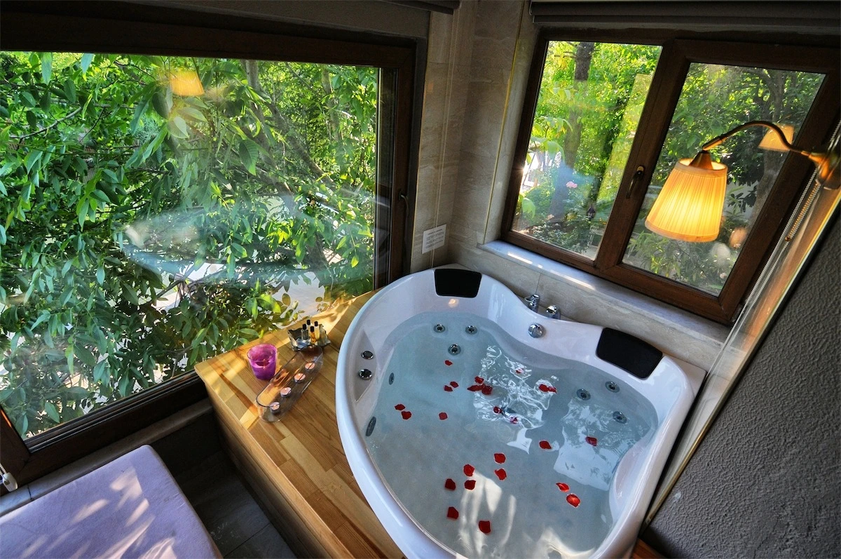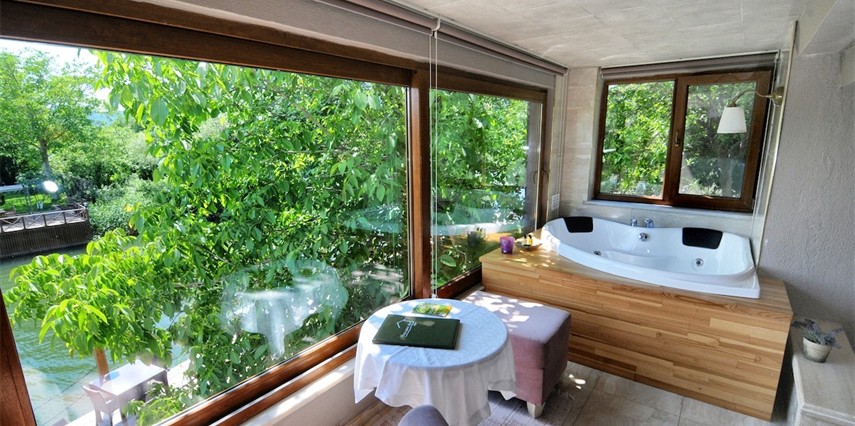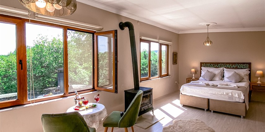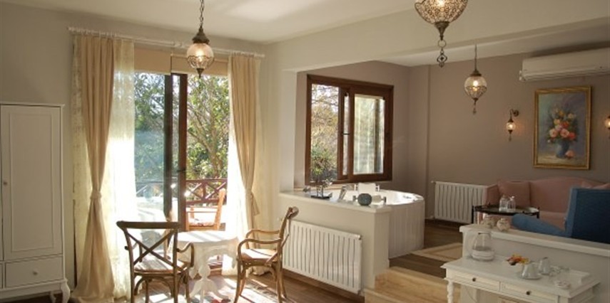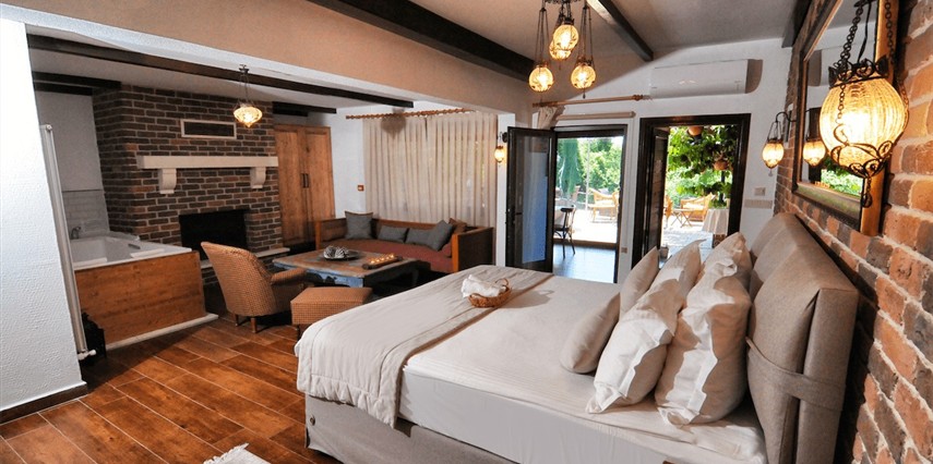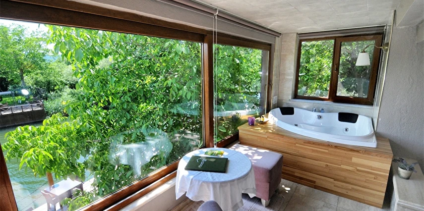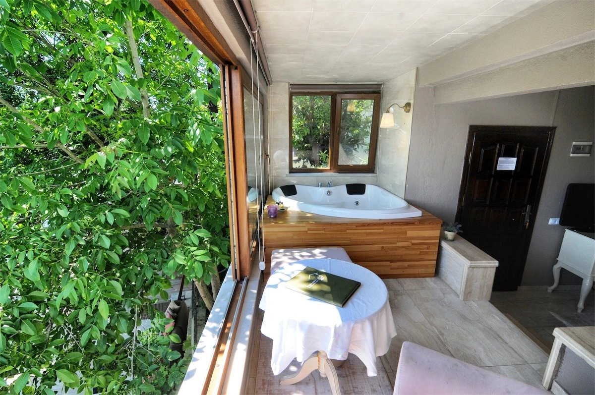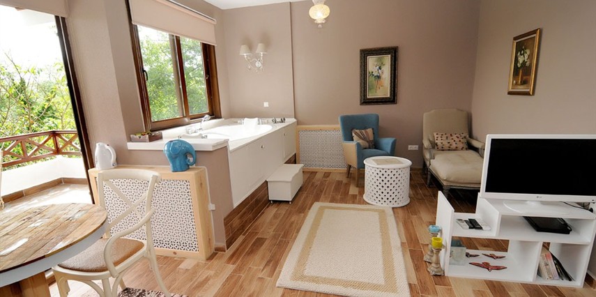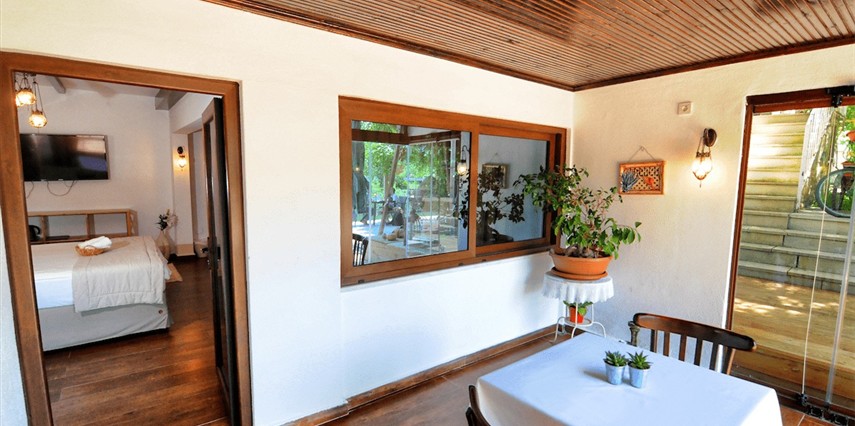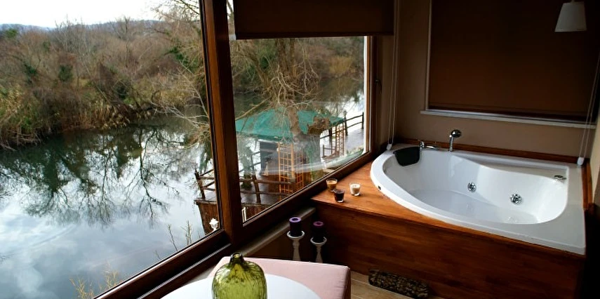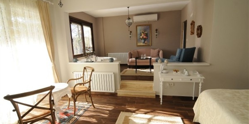 Daha Fazla GösterGöksu Nehri’nin tam kıyısında, doğa ile iç içe dinlendirici bahçe ve ahşap iskelesi, şömineli özel restoranı ve birbirinden farklı ve özenle döşenmiş, nehir manzaralı, konforlu odalarıyla hizmet veren Beyaz Ev Ağva Otel, sessiz, sakin ve huzurlu bir atmosfer sunuyor. 3 adet jakuzili ve şömineli süit oda, 4 adet jakuzili süit oda ve 2 adet standart oda mevcut. Tesisin tüm odaları nehir manzaralı olup, zengin bir serpme kahvaltı ile misafirlerine unutulmaz bir konaklama deneyimi yaşatıyor. Ayrıca Yetişkin Oteli konsepti ile hizmet veren tesiste, akşam yemeği ve gün boyu servis alabileceğin nehir manzaralı ve şömineli a la carte restoran mevcut. Göksu Nehri kıyısında geniş bahçesi ve nehir manzaralı odalarıyla hizmet veren tesis; sessiz, sakin ve huzurlu bir atmosferde misafirlerini ağırlıyor. Şehrin karmaşasından biraz uzaklaşmak ve doğa ile iç içe olup huzurlu birkaç gün geçirmek isteyen misafirler tarafından sıklıkla tercih edilen Beyaz Ev Ağva, Ağva’nın en güzel yerlerinden birinde misafirlerini ağırlıyor. Göksu Nehri kıyısında yer alan tesis, huzur dolu ve dinlendirici bir ahşap iskele ve bahçeye sahip. Sessiz ve sakin atmosferinin yanı sıra güler yüzlü personelleri ve kaliteli hizmet anlayışıyla da öne çıkan tesis,nehir manzaralı odalarında konforlu bir konaklama deneyimi vadediyor. Yetişkin oteli olarak hizmet veren Beyaz Ev Ağva, 16 yaş üstü misafirleri ağırlıyor. Modern şekilde dekore edilmiş odalarında şık bir ortam sunan tesiste 7 süit ve 2 standart oda yer alıyor. Misafirler tesisin jakuzili odalarında konaklamayı tercih ederek tatiline renk katabilir. Tesiste konaklayan misafirler lezzetli bir kahvaltı ile güne başlayabilir. Romantik bir tatil için Beyaz Ev Ağva’ya gelen misafirler, nehir kıyısındaki dinlenme alanlarında keyifle zaman geçirebilir. Misafirler, nehirde tekne turu yapabilir ya da Ağva Plajı’na gidebilir. Göksu Nehri kıyısında geniş bahçesi ve nehir manzaralı odalarıyla hizmet veren tesis; sessiz, sakin ve huzurlu bir atmosferde misafirlerini ağırlıyor.