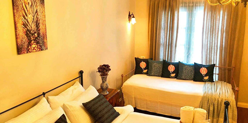 İzmir Adnan Menderes Hava Limanı'na 90 km, eğlencenin başkenti Çeşme'ye sadece 8 km, Ege Denizi'ni doya doya yaşayacağınız Ilıca Plajına 6 km, Sörf severler ve Sörf eğitimi almak isteyenlere Sörf kulüplerine 5 km mesafededir. Alaçatı ruhunu yaşayacağınız özenle dekore edilmiş "Sigara İçilmeyen" Cumbalı, Deluxe, Standart ve Ekonomik odalı ile her zevk ve bütçeye hitap eden otelimizde sabah ev reçelleri ile Alaçatı Kahvaltısı ile güne merhaba demenin keyfini yaşayacaksınız. Bahçede ve Otel genelinde kullanabileceğiniz ücretsiz Wİ-Fİ erişimi bulunmaktadır.Odalarda kasa, minibar, duş ve banyo malzemeleri ve saç kurutma makinesi mevcuttur.