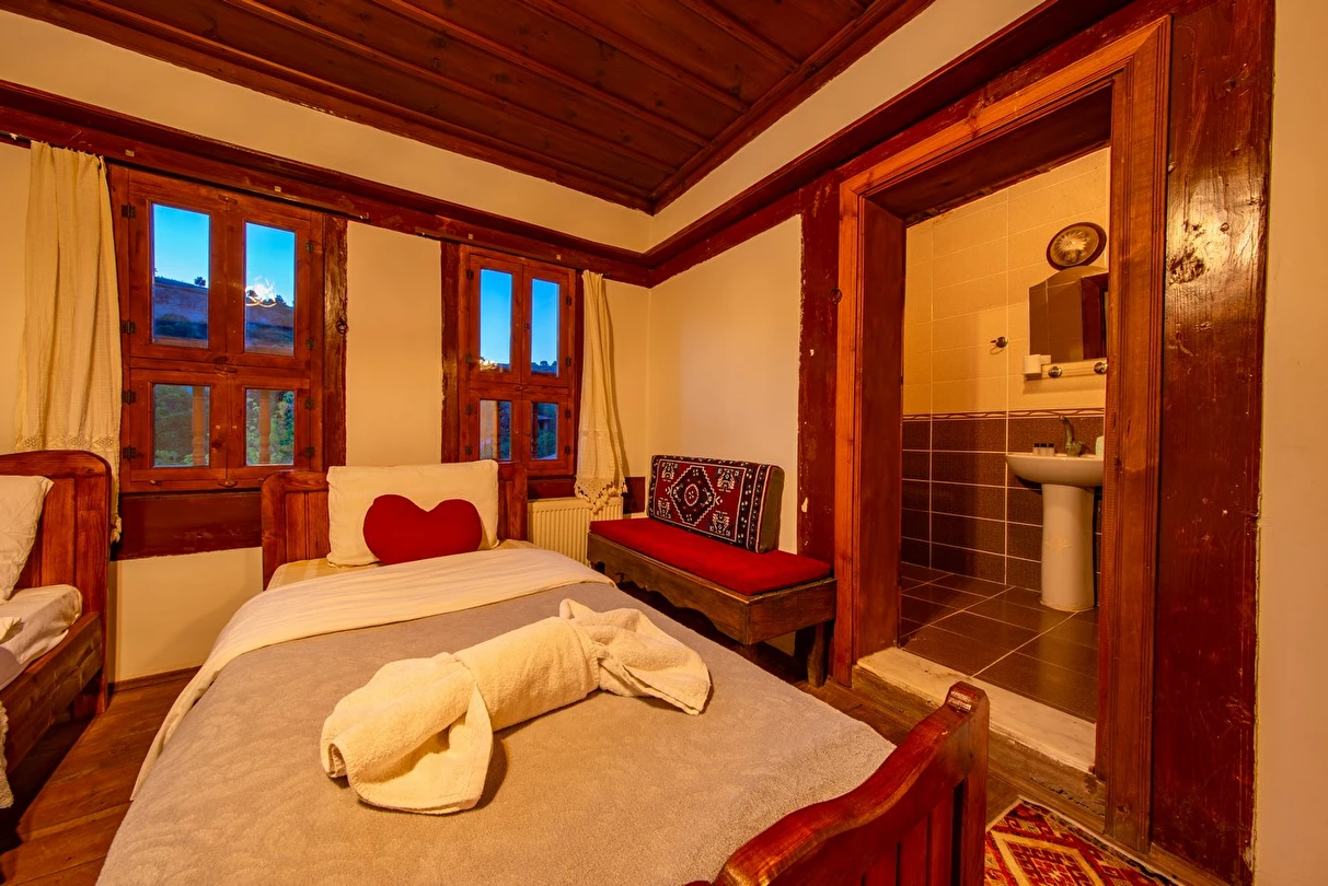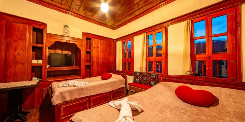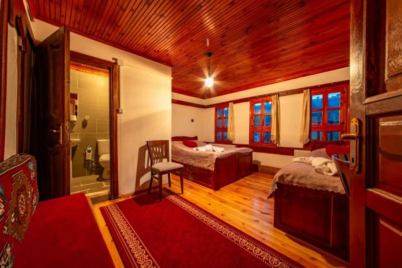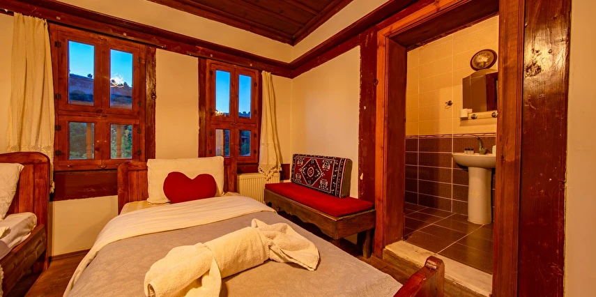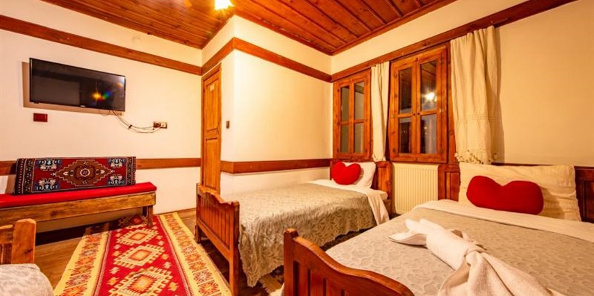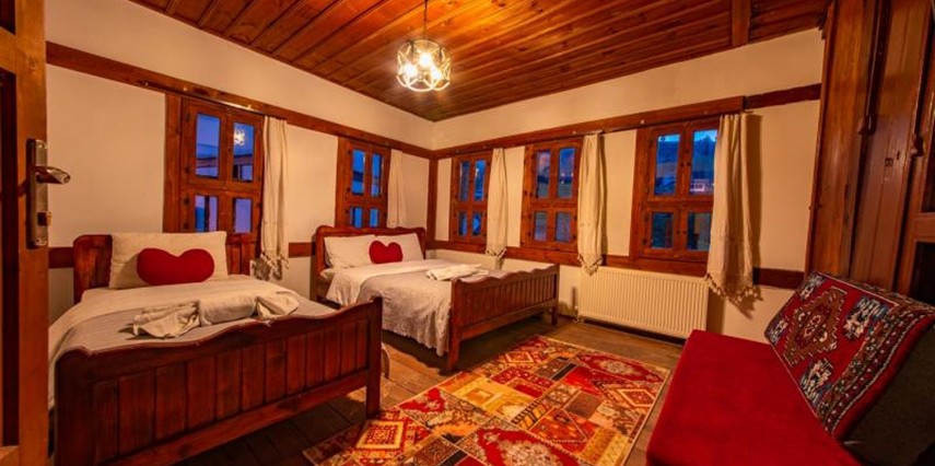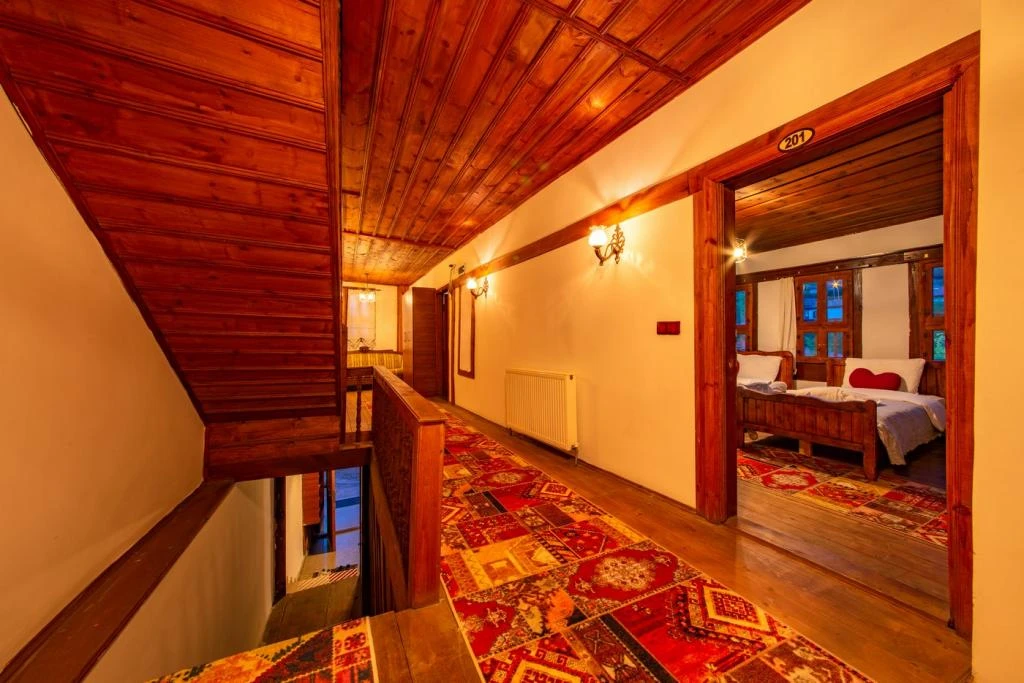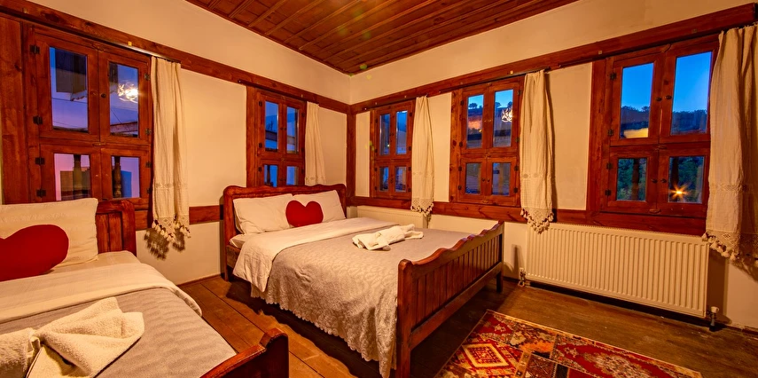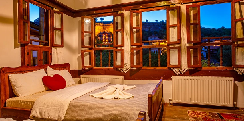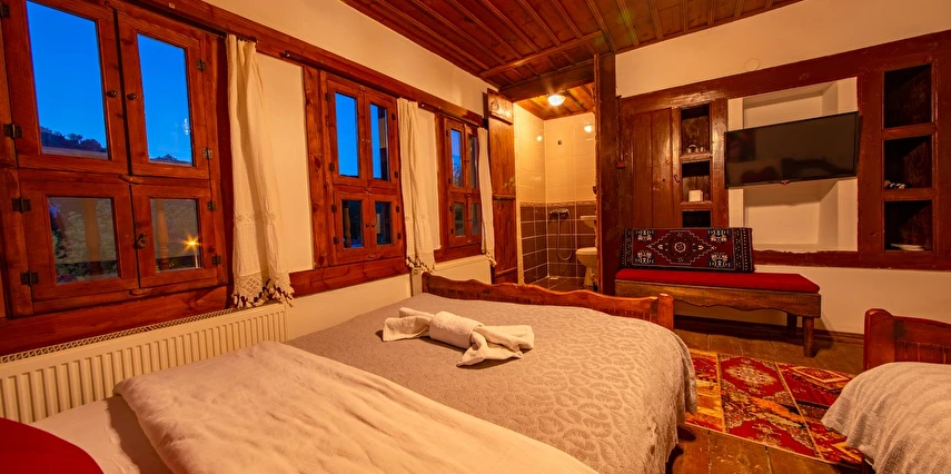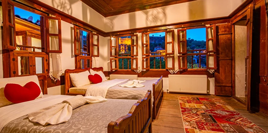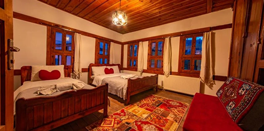 Daha Fazla GösterTarihi Safranbolu çarşısında gezilecek yerlere yürüme mesafesinde olup, konaklarımızdan Safranbolu'nun her yönüne rahatlıkla yürüyüşler gezintiler düzenleyebilirsiniz. Mükemmel ahşap el işçiliği ile donatılmış aynı sokak içerisinde karşılıklı 4 ayrı konakta 30 oda ve 100 kişilik toplam yatak kapasitemizle Safranbolu’da hizmet veriyoruz.