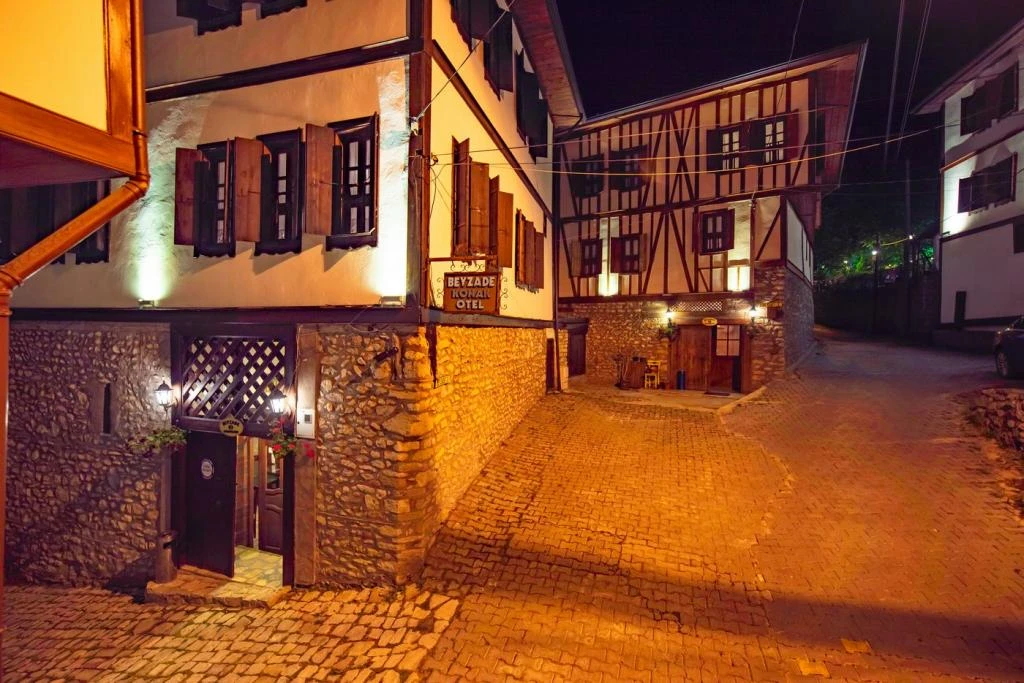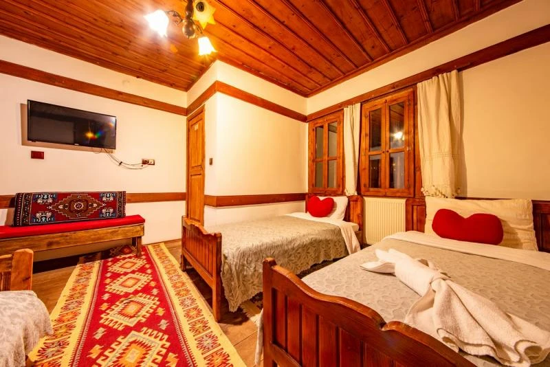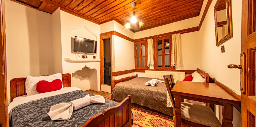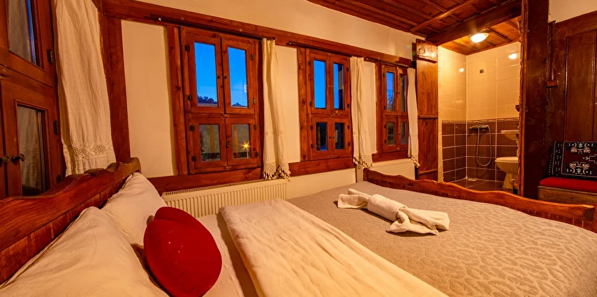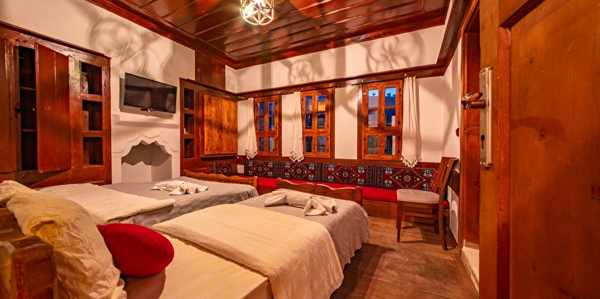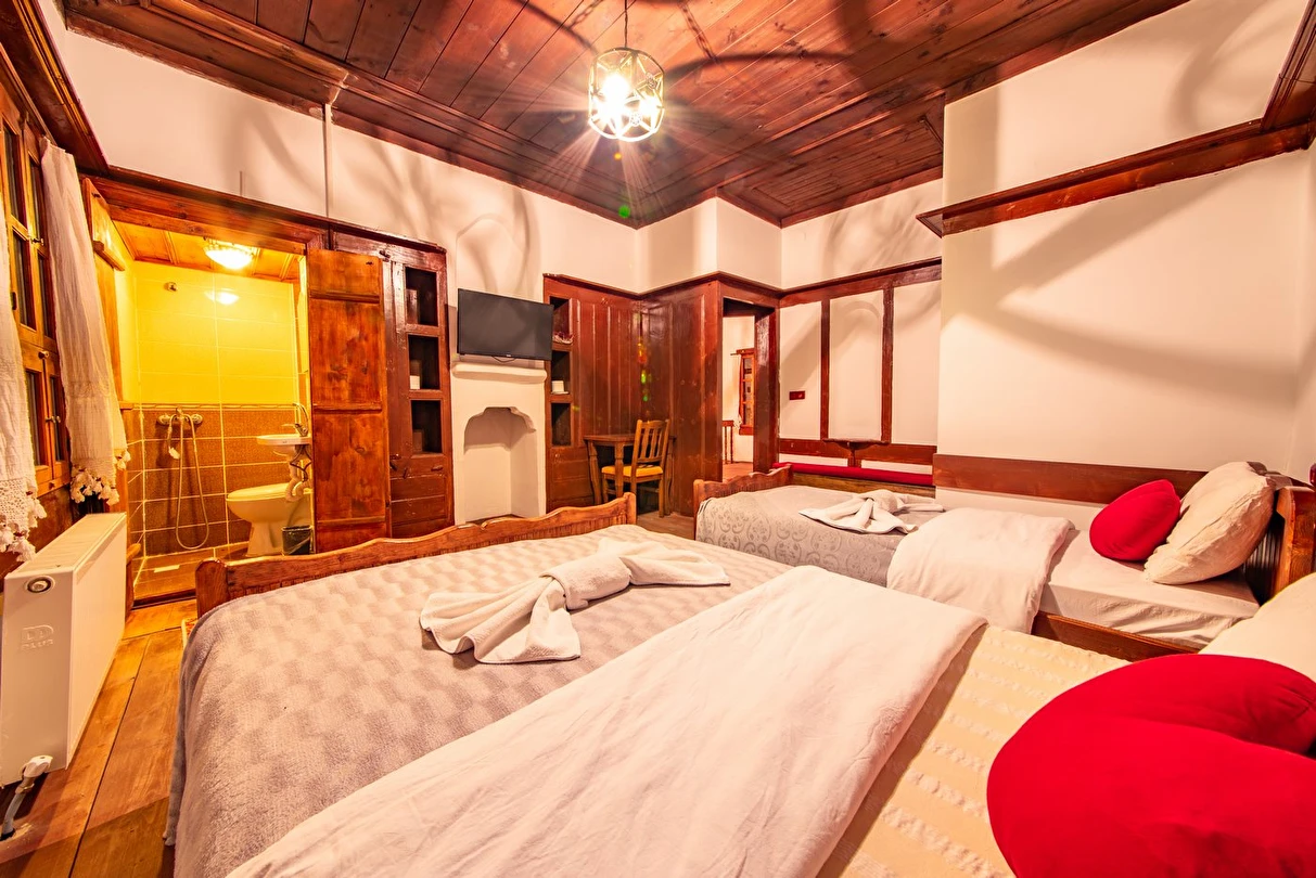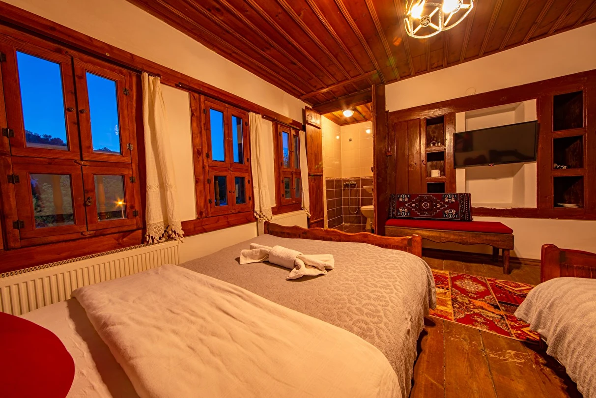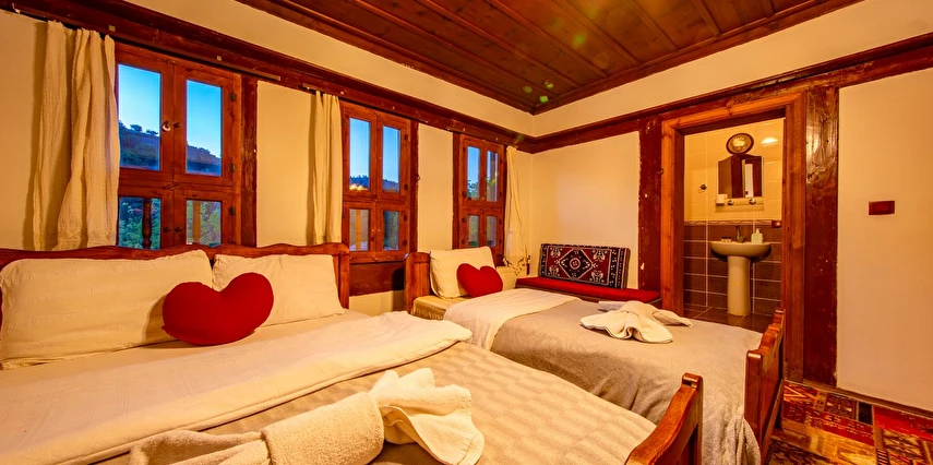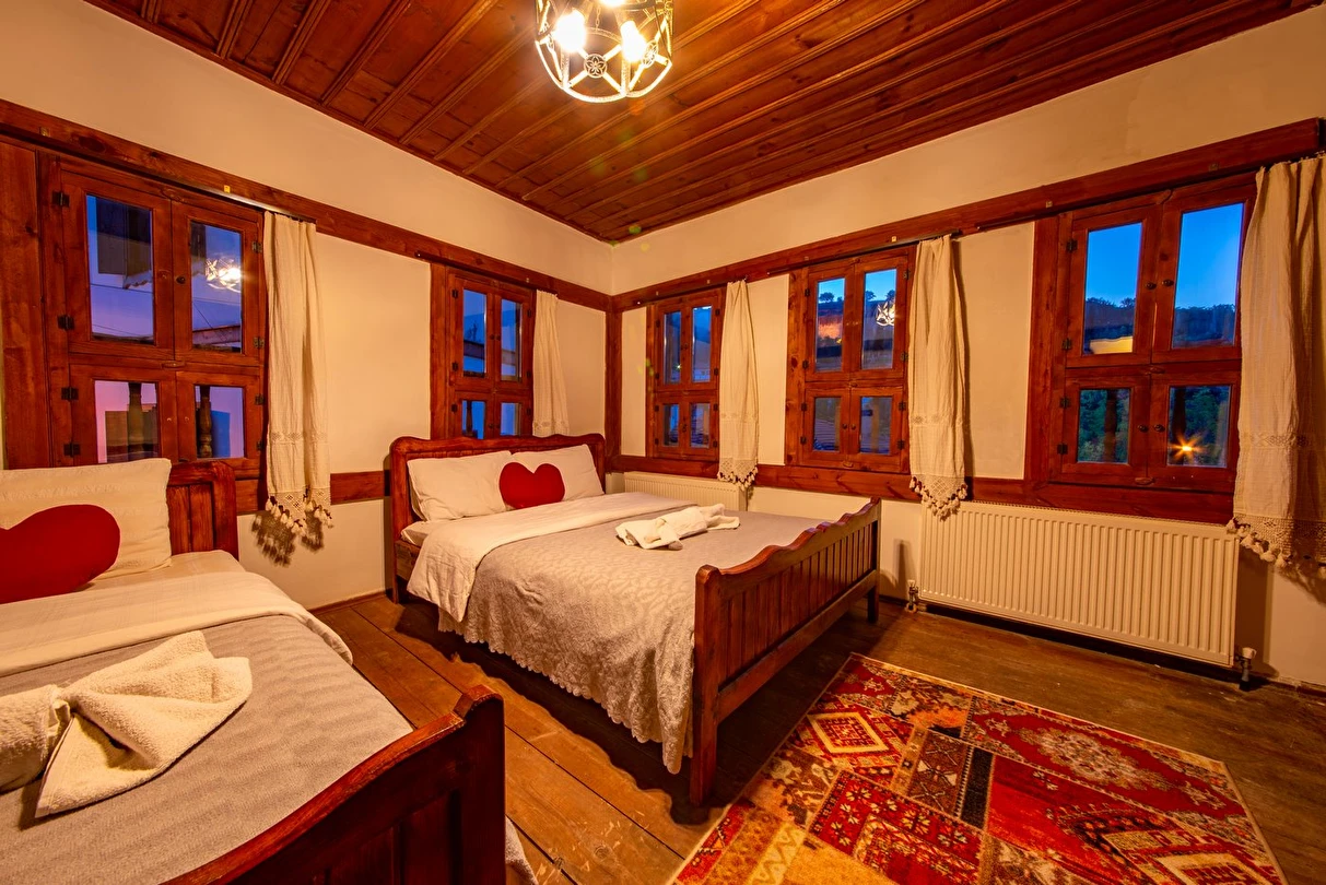 Daha Fazla GösterTarihi Safranbolu çarşısında gezilecek yerlere yürüme mesafesinde olup, konaklarımızdan Safranbolu'nun her yönüne rahatlıkla yürüyüşler gezintiler düzenleyebilirsiniz. Mükemmel ahşap el işçiliği ile donatılmış aynı sokak içerisinde karşılıklı 4 ayrı konakta 30 oda ve 100 kişilik toplam yatak kapasitemizle Safranbolu’da hizmet veriyoruz.