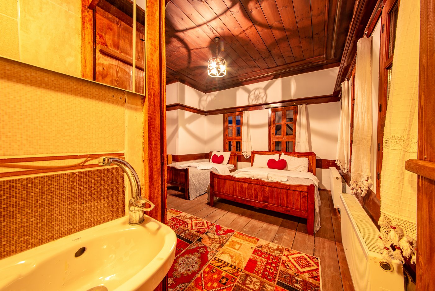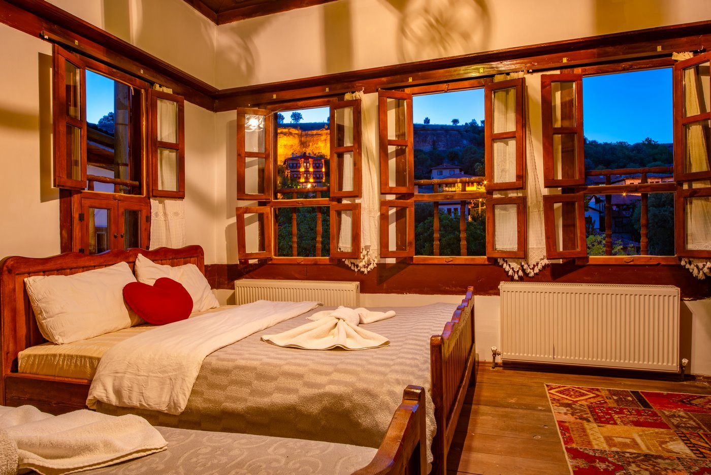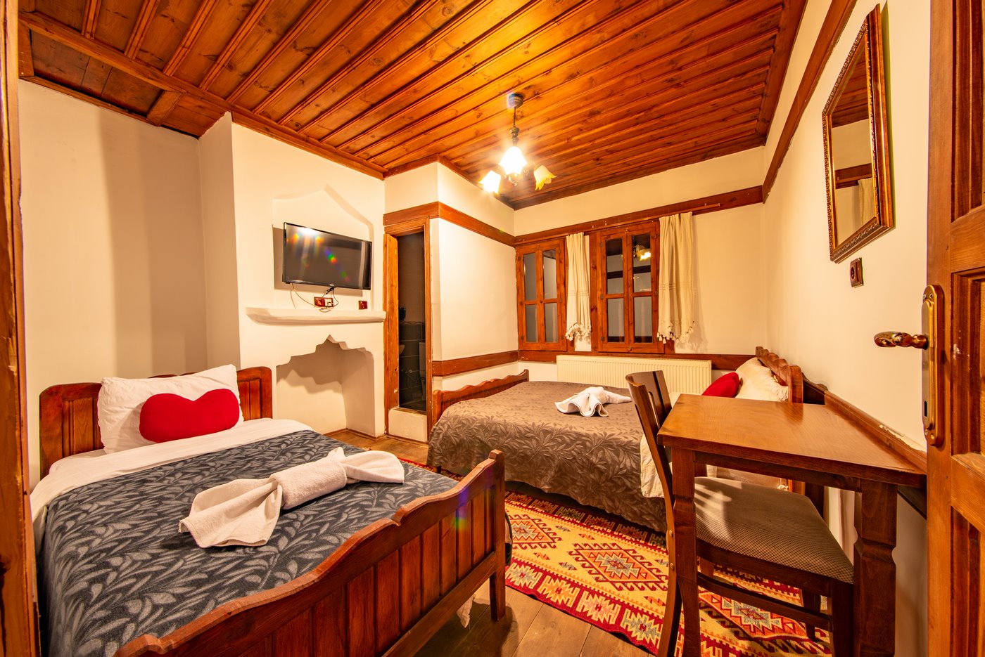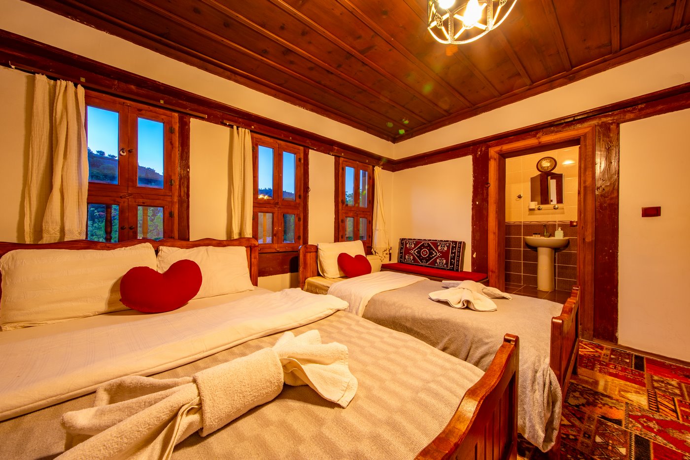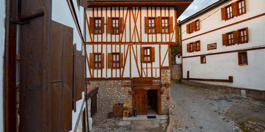 Daha Fazla GösterTarihi Safranbolu çarşısında gezilecek yerlere yürüme mesafesinde olup, konaklarımızdan Safranbolu'nun her yönüne rahatlıkla yürüyüşler gezintiler düzenleyebilirsiniz. Mükemmel ahşap el işçiliği ile donatılmış aynı sokak içerisinde karşılıklı 4 ayrı konakta 30 oda ve 100 kişilik toplam yatak kapasitemizle Safranbolu’da hizmet veriyoruz.