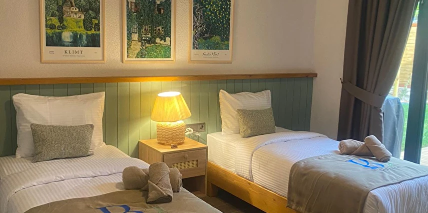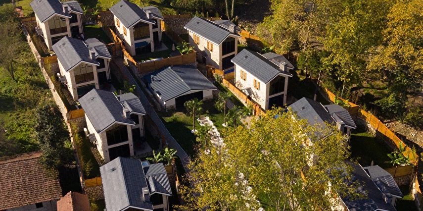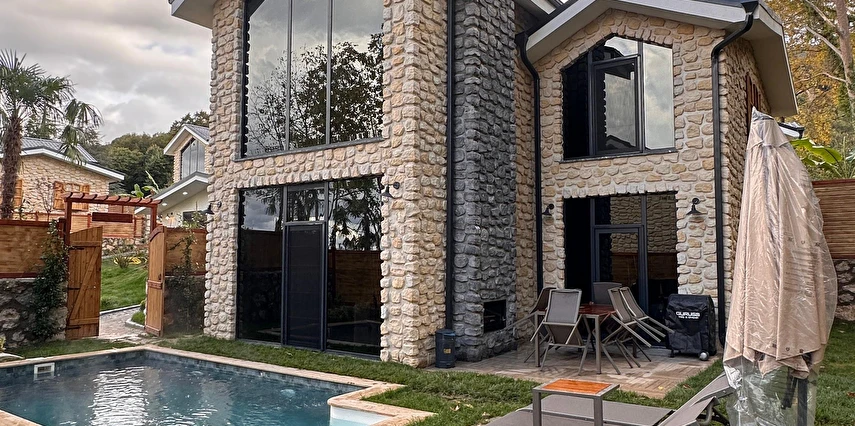 Daha Fazla GösterSapanca'nın yemyeşil ormanları içinde yer alan BG Sapanca Bungalov, modern tasarımıyla doğallığı bir araya getiriyor. Hem rahat hem de şık döşenmiş bungalovlar, misafirlerine ev sıcaklığında bir konaklama sunuyor. Villamız 3+1 olup yaklaşık 120 m² dir. Bahçe alanında ısıtmalı havuz , şezlong ve şemsiye , barbekü , 6 kişilik masa mevcuttur. Villamız içerisinde de 1 adet çift kişilik yatak , 4 adet tek kişilik yatak ( 160*200 1 adet / 90*190 4 adet yatak ), köşe koltuk , smart tv , buzdolabı , fırın , ocak, mikrodalga fırın , mutfak malzemeleri , safebox , buklet malzemeleri , türk kahve makinası , çay makinası , saç kurutma makinası, fiber internet, klima