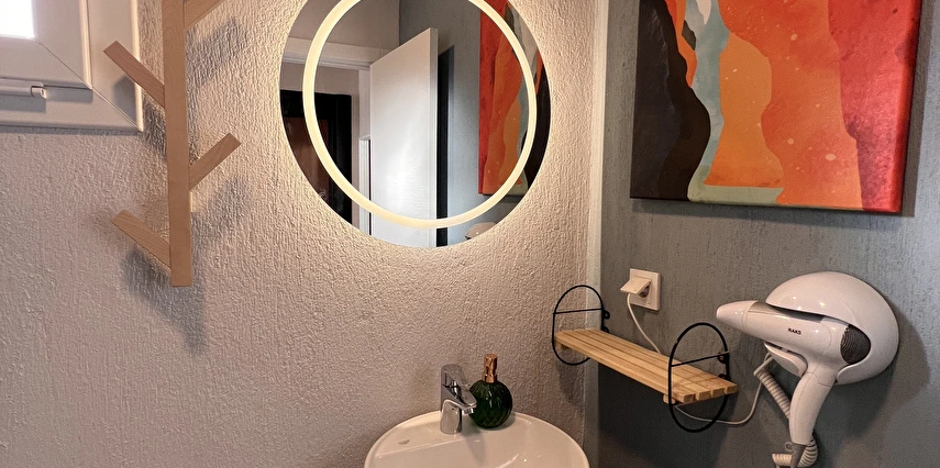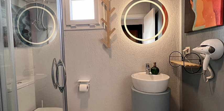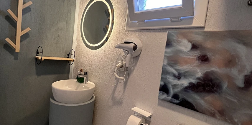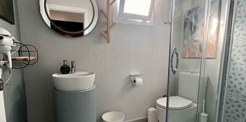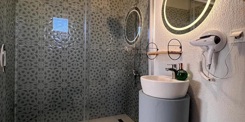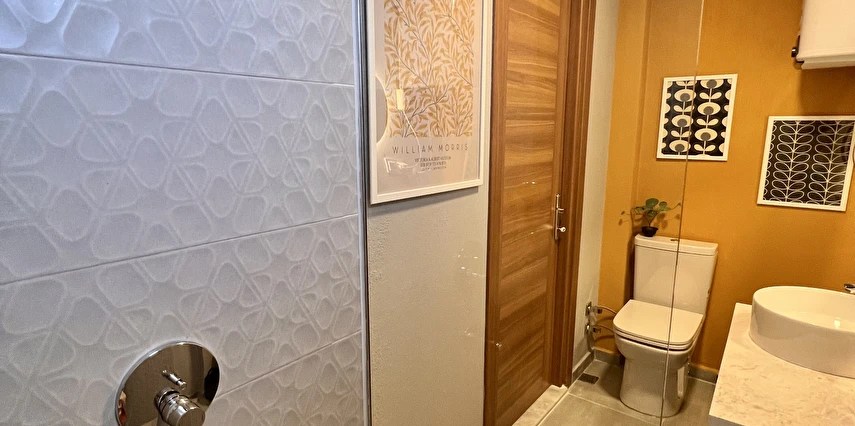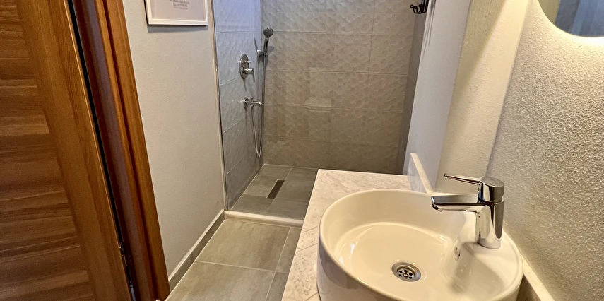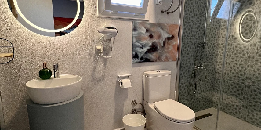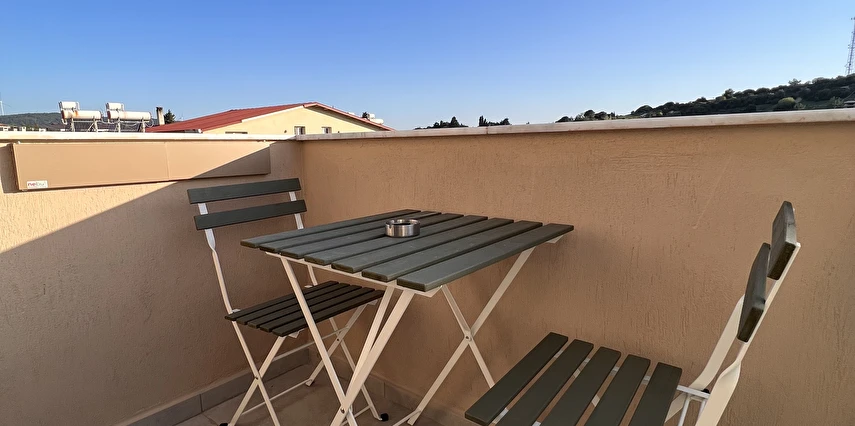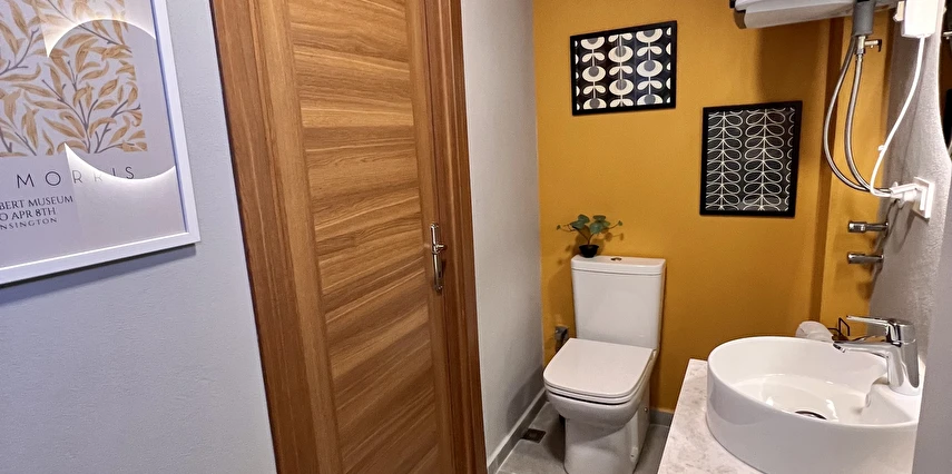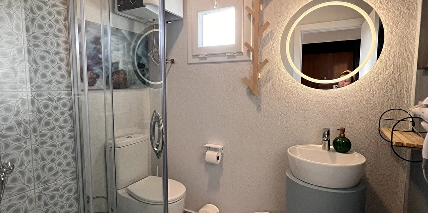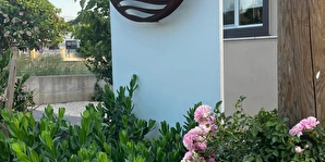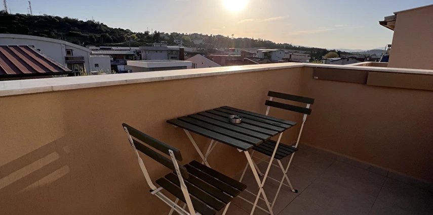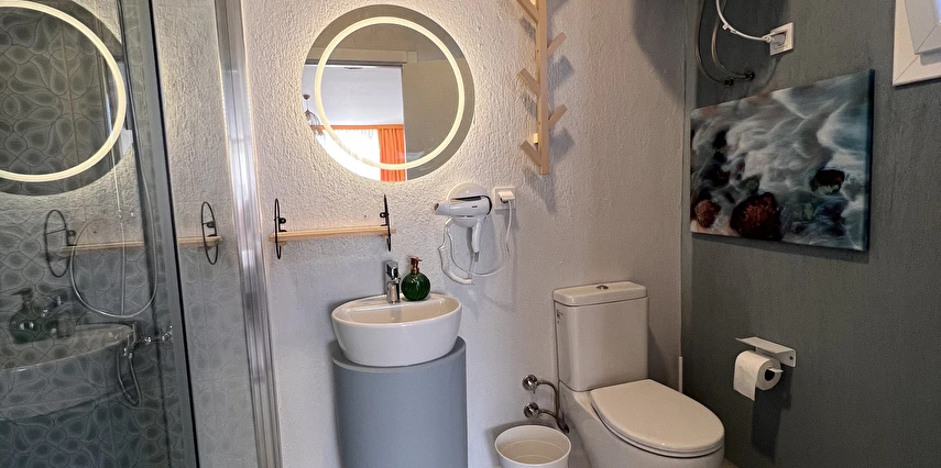Dairemiz, tam bir ev konforu sunar. Binamızda her biri dört kişilik balkonlu dört adet 1+1 daire ve ikişer kişilik balkonlu dört adet otel tarzı oda bulunmaktadır. Yeni binada her şey özenle seçilmiş ve yenidir. Her dairede çift kişilik yatak ve dolap bulunan bir yatak odası, yatak olabilen koltuklu bir salon, açık mutfak ve balkon vardır. Salondaki klima tüm daireyi ısıtıp soğutabilir. İki katlı binanın üst katında, ön bahçeye bakan dairemiz bulunmaktadır. TV, Ethernet bağlantılı bir smart TV’dir. Bina kameralarla izlenmekte ve yangın güvenliği için duman dedektörleri bulunmaktadır.