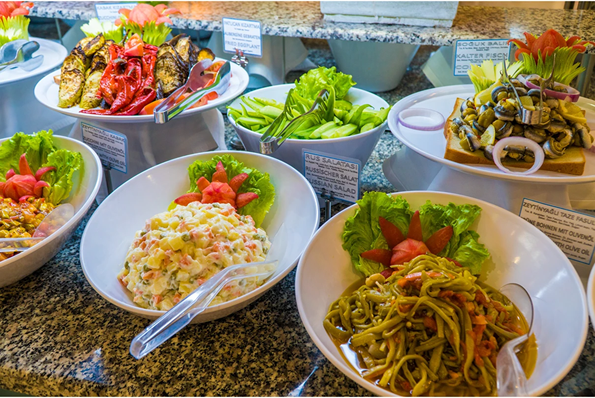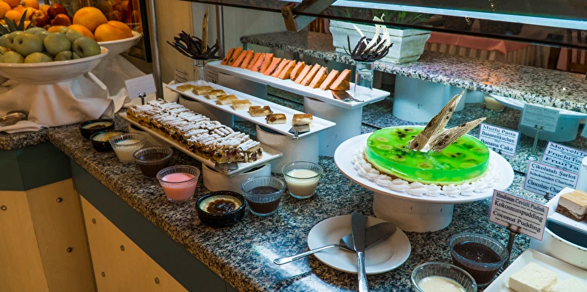Bieno Venüs Hotel restoran alanı, lobi barı, snack-barı, gözleme köşesi, havuz barı ve sahil barı bulunuyor. Tesis her öğün için konuklarına belirli saat ve alanlarda çeşitli yemekler sunuyor.