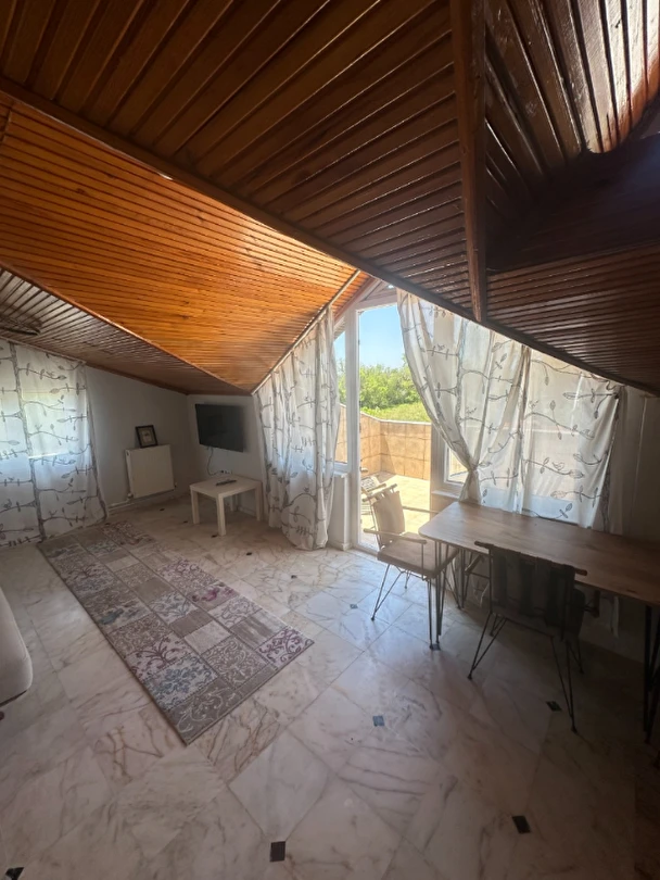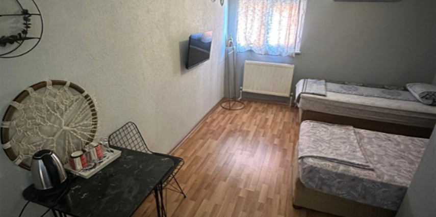 Çatı Katı 2+1, Balkonlu: 60 m² büyüklüğündeki daire, 4 yetişkin ve 2 çocuk kapasitelidir. Balkonuyla ferah bir ortam sunar ve misafirlerin konforu düşünülerek sigara içilmesine izin verilmemektedir.