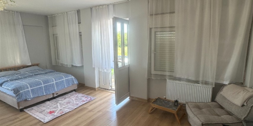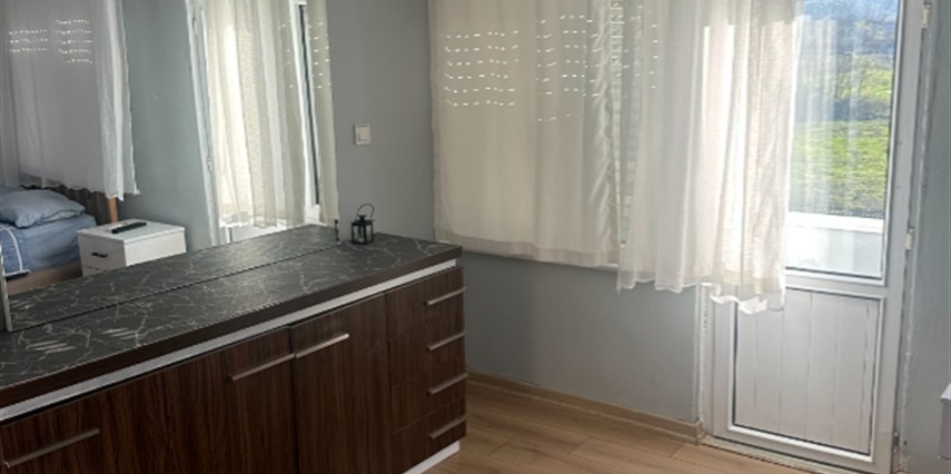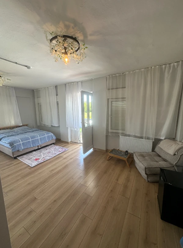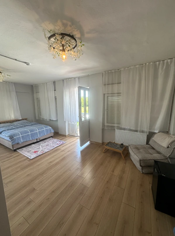 1+0 Balkonlu Daire: 40 m² büyüklüğündeki kompakt daire, 2 yetişkin kapasitesine sahiptir. Balkonuyla küçük ama işlevsel bir alan sunar.