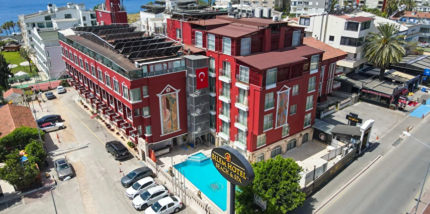 Bilem Hotel Beach & Spa, Antalya’nın en prestijli sahil bölgelerinden biri olan Lara - Muratpaşa hattında, denize sıfır konumu ve panoramik Akdeniz manzarasıyla misafirlerini ağırlayan bir "City Resort" otelidir. Şık tasarımı, kendine özel plaj platformu ve kapsamlı Spa hizmetleriyle hem tatilciler hem de iş seyahati yapanlar için ideal bir duraktır.