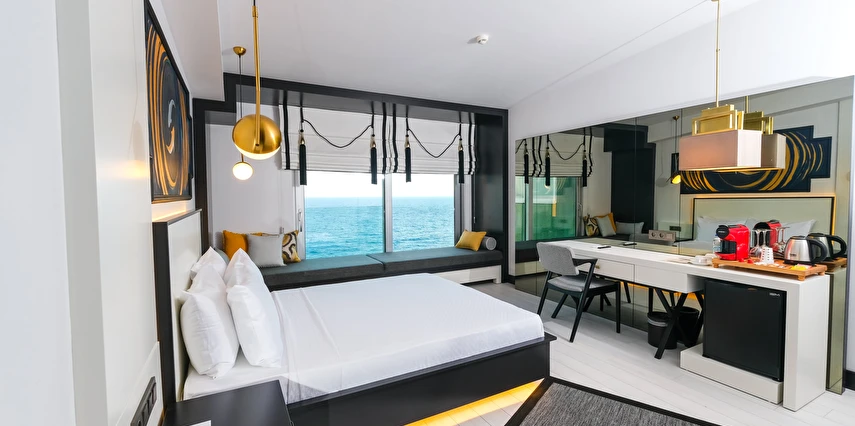 Deniz Manzaralı Odalar: Akdeniz’in büyüleyici gün batımını odanızın konforunda izleme ayrıcalığı.