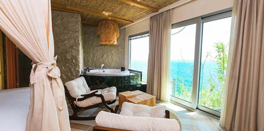 Bilem Hotel, misafirlerine falezlerin altına saklanmış özel bir dünya sunar: