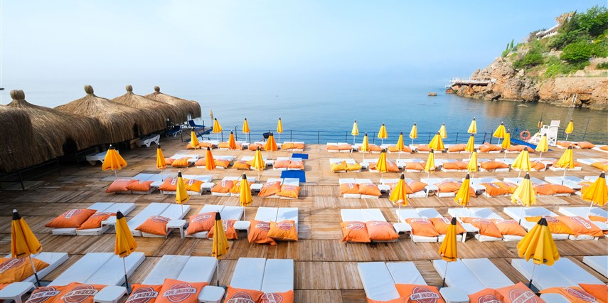 Bilem Beach: Otelimize özel plaj platformunda, Akdeniz’in serin sularına doğrudan erişim sağlayabilir, güneşin tadını şezlongunuzda çıkarabilirsiniz.