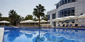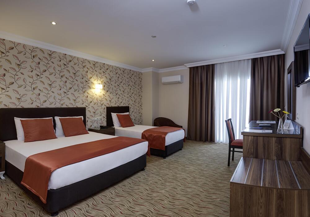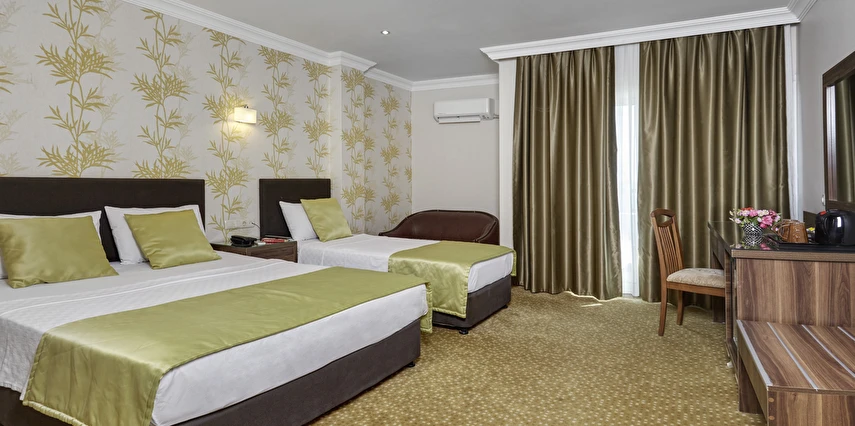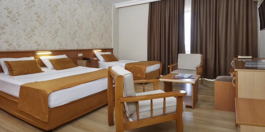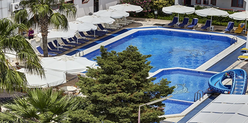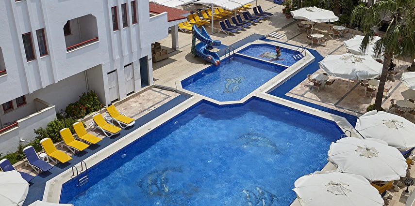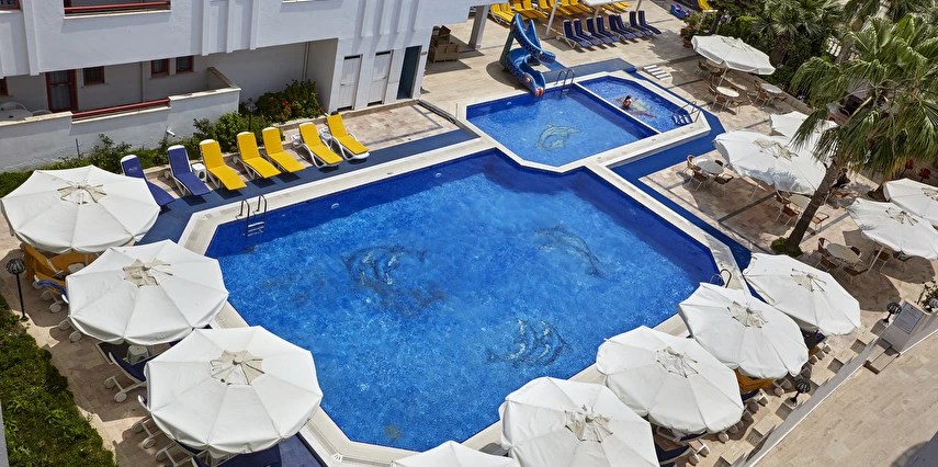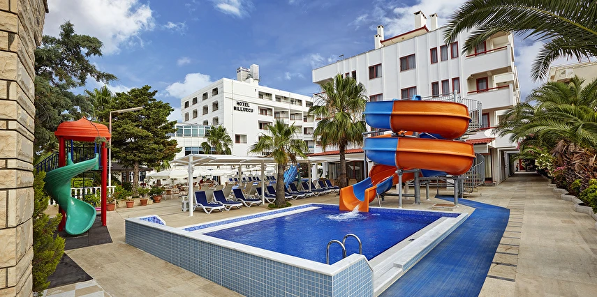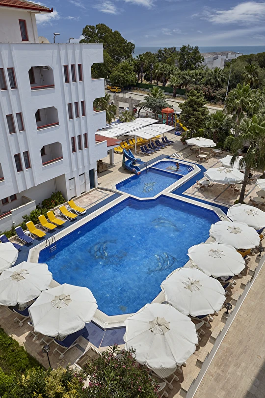 Ayrıca otelimiz bünyesinde 250 kişilik Restaurant, zevkle döşenmiş bir Lobby, Toplantı Salonu, Havuz-Bar, Lobby-Bar ve odalara çıkan asansör bulunmaktadır. Oyun parkımız ve çocuk havuzunda 6 m boyunda bir yılan-su kaydırağı ve ayrı bir havuzu bulunan büyük su kaydırağımız küçük müşterilerimizin eğlenceli bir tatil geçirmesini sağlar.