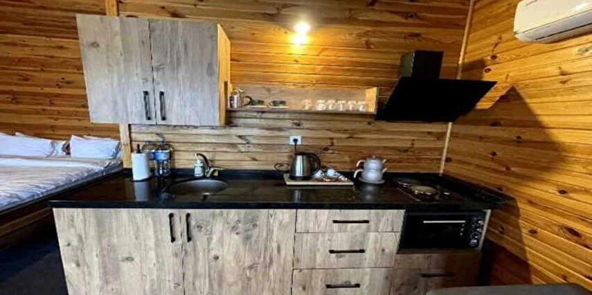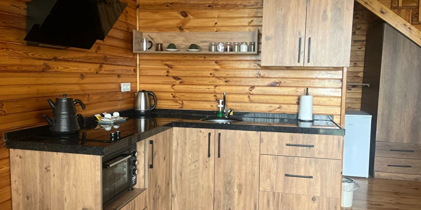 Tesiste restoran hizmeti bulunmaz. Konaklamaya yalnızca kahvaltı dahildir ve 09:00–10:30 saatleri arasında tabak servisi şeklinde sunulur. Diğer öğünler için evlerde yer alan mutfaklar kullanılabilir ya da misafirler kendi mangal malzemelerini getirerek bahçelerinde mangal yapabilir. Kömür, mangal ve ateş çemberi kullanımı ücretlidir.