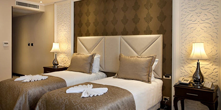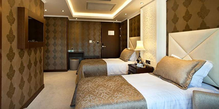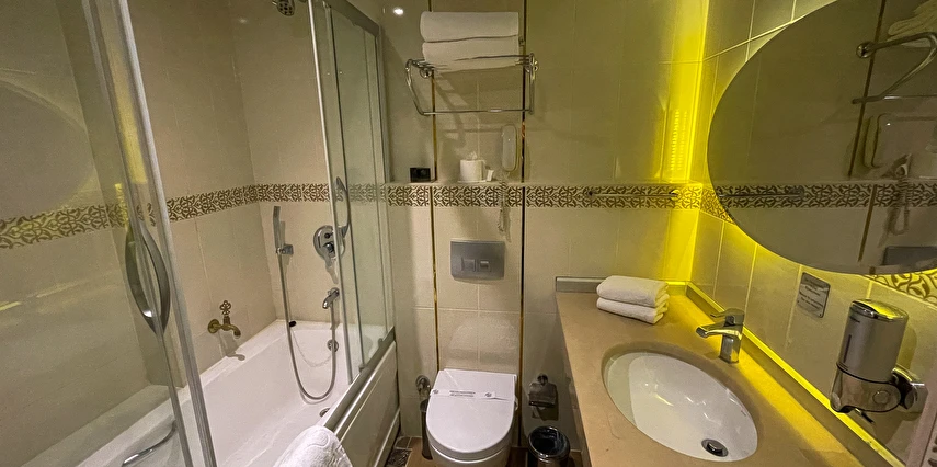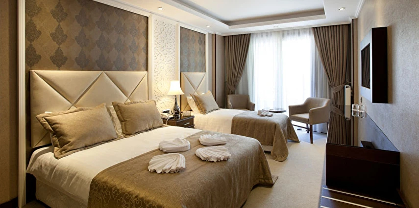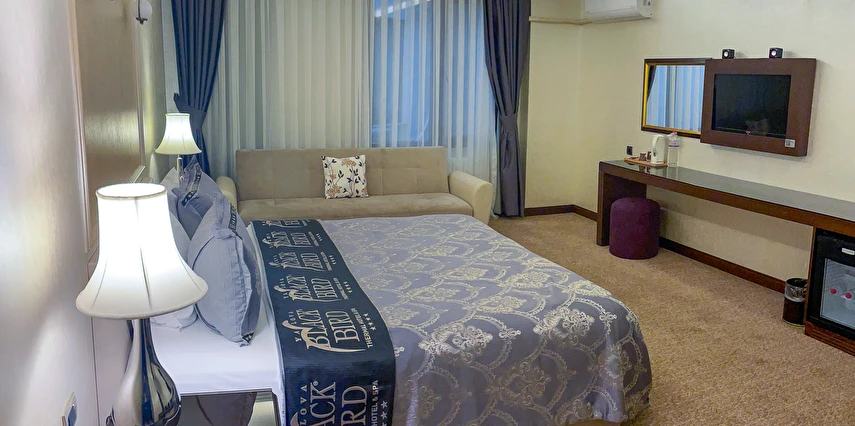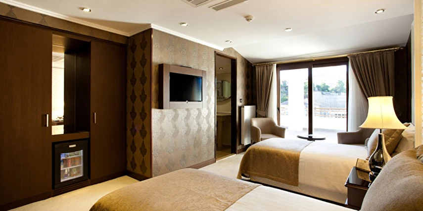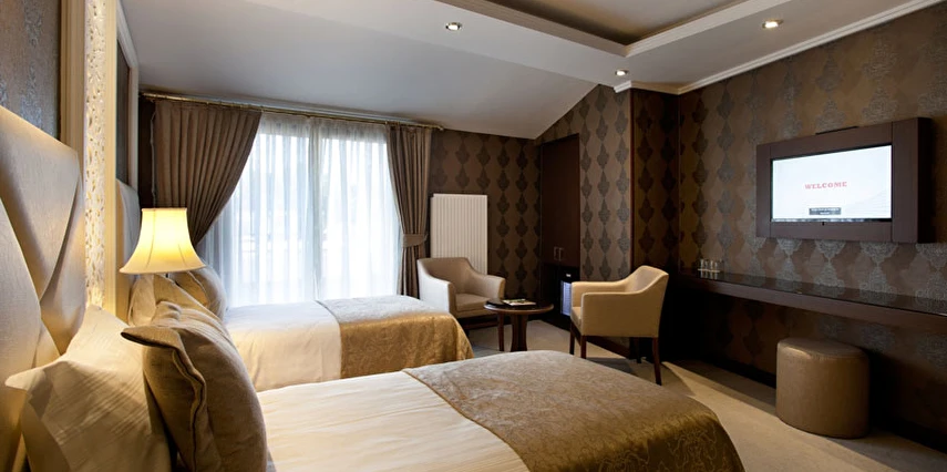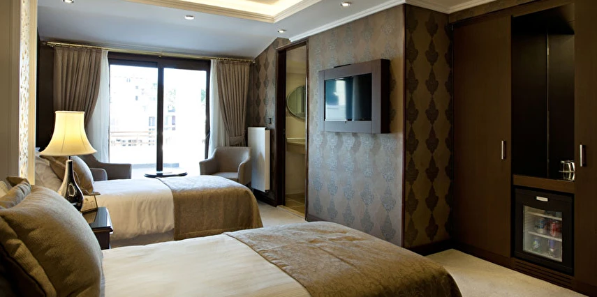 Ekonomik odalar, dışarıyı görmeyen bina boşluğuna bakar. Split (bireysel klima) mevcuttur.