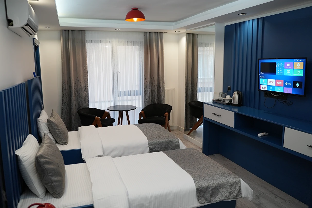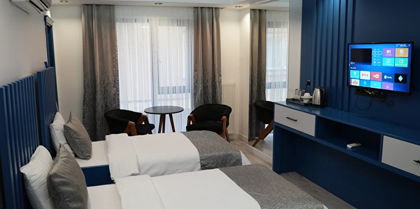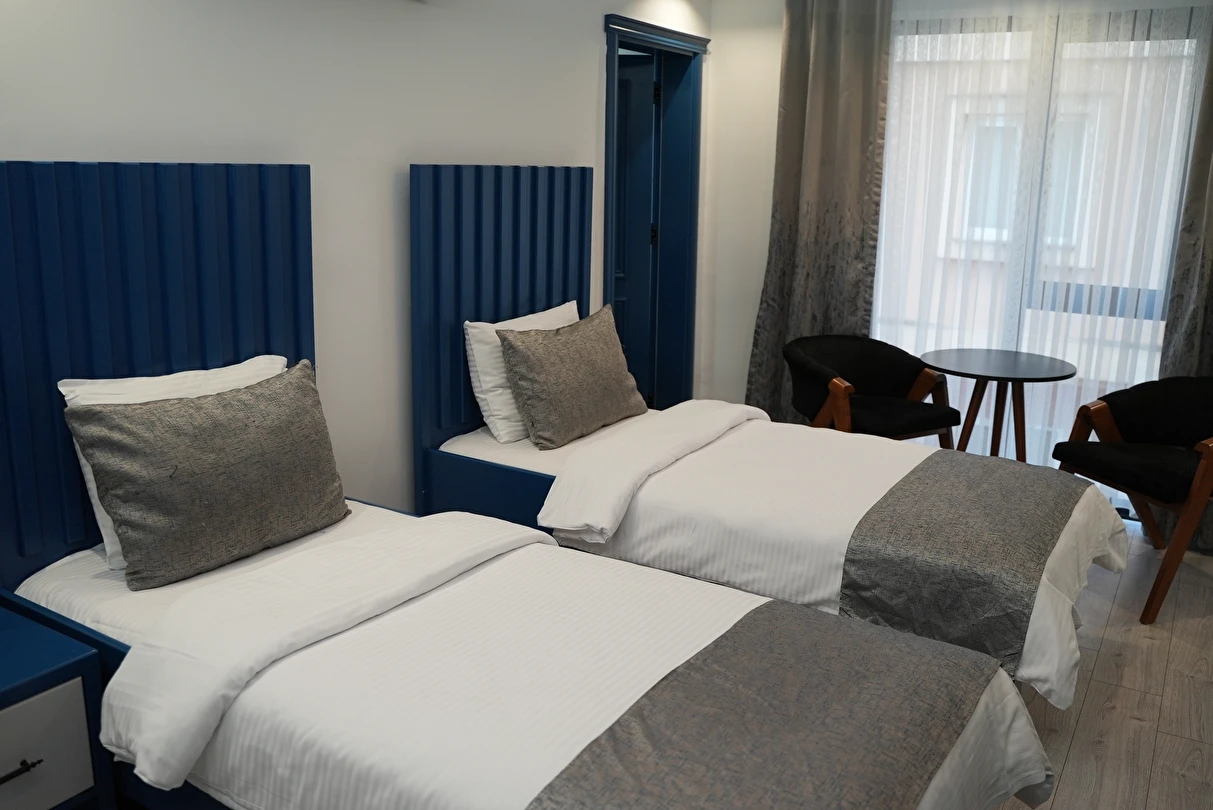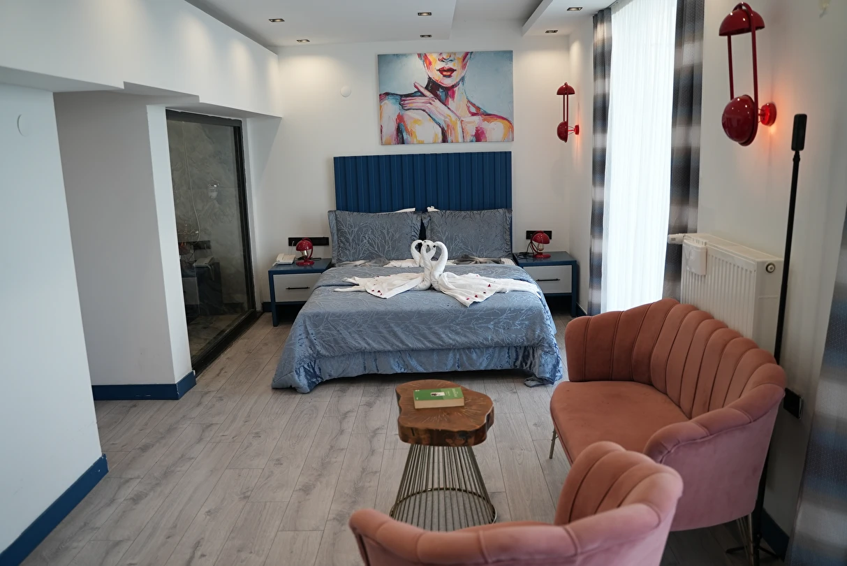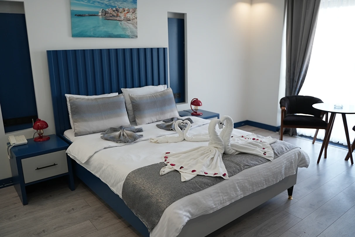 Modern detaylarla özenle hazırlanan odalarımız, rahatlık ve estetiği bir araya getirirken; huzurlu atmosferiyle misafirlerine şehirden uzak, dinlendirici bir ortam sağlar. Kaliteli hizmet anlayışıyla öne çıkan Blue Ay Boutique Hotel, Samsun Atakum’da unutulmaz bir konaklama alternatifi sunmaktad