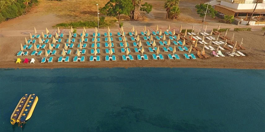 Tesis denize sıfır değildir. Plajda bir bölüm otele aittir ve otel misafirlerinin kullanımına sunulmaktadır. Otel ile plaj arasında boş bir arazi vardır ve buradan plaja geçilir. Plaj alanında otel misafirlerine ücretsiz şezlong ve şemsiye hizmeti verilir. Plajda bar ve snack bar bulunmamaktadır, ayrıca hiçbir şekilde yeme-içme hizmeti bulunmamaktadır.