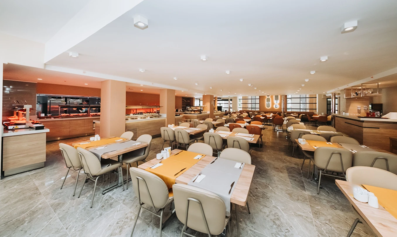 Sabah kahvaltısı, öğle ve akşam yemekleri açık büfe olup, tesisin belirlemiş olduğu saatler ve markalar dahilinde yerli alkollü ve alkolsüz içecekler 10:00 ile 23:00 saatleri arasında ücretsizdir. Her şey dahil içecekler; votka, cin, rakı, seçilmiş likörler, fıçı bira ve şarap, kola, sprite, fanta, konsantre meyve suları, soda, çay, kahve, süt ve suyu içerir. İçecekler bardakla servis edilir. İthal içecekler, yerel brendi, Türk kahvesi ve taze meyve suları ekstra ücrete tabidir.