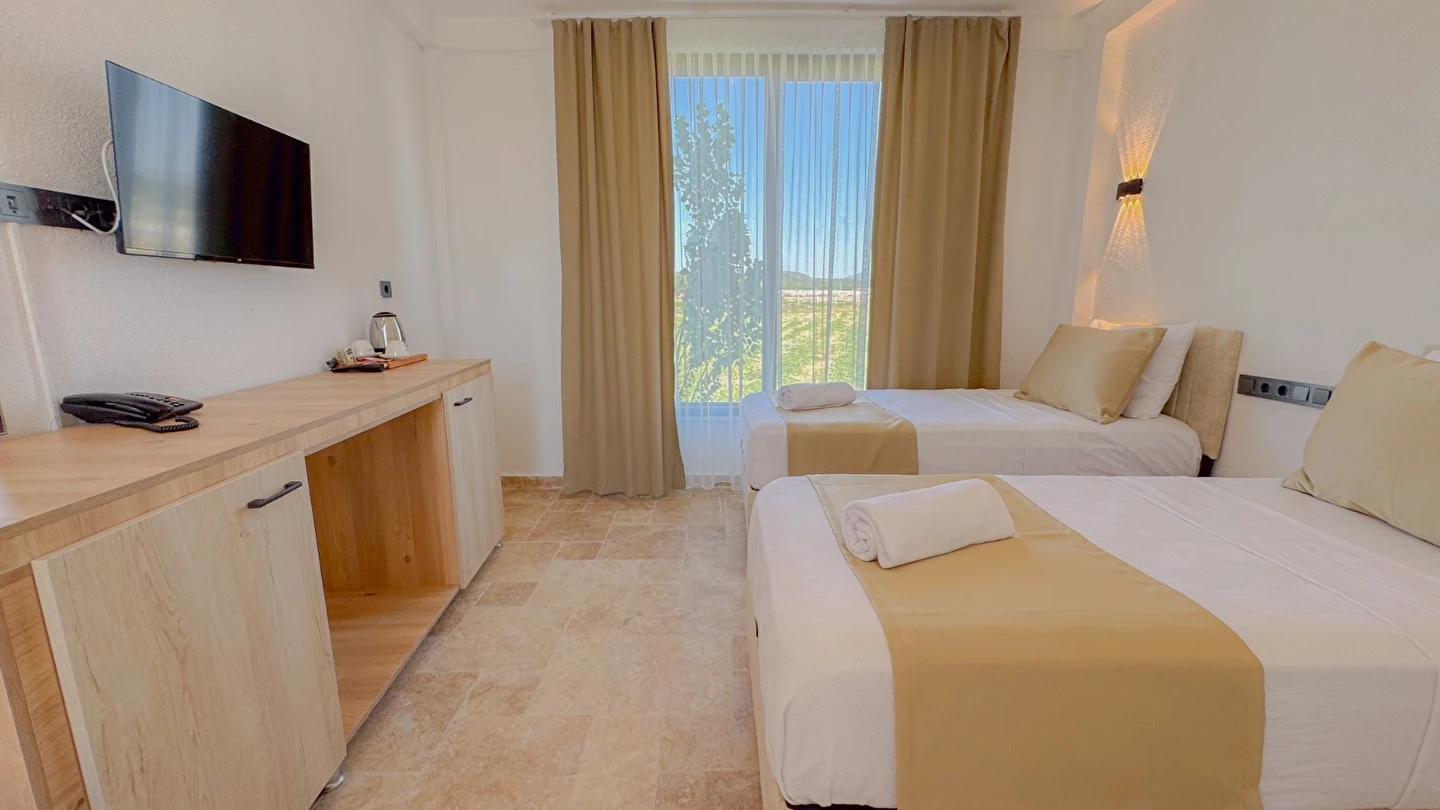Güne gözlerinizi açtığınızda tuz gölündeki sayısız flamingo manzarası, zeytin ağaçlarının kokusu, doğanın ve denizin esintisi işte huzurlu bir tatil.