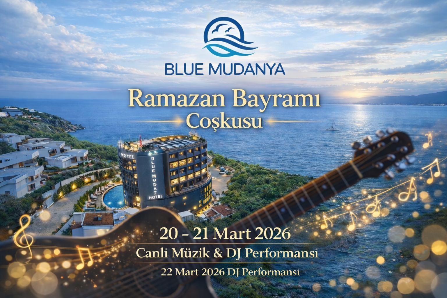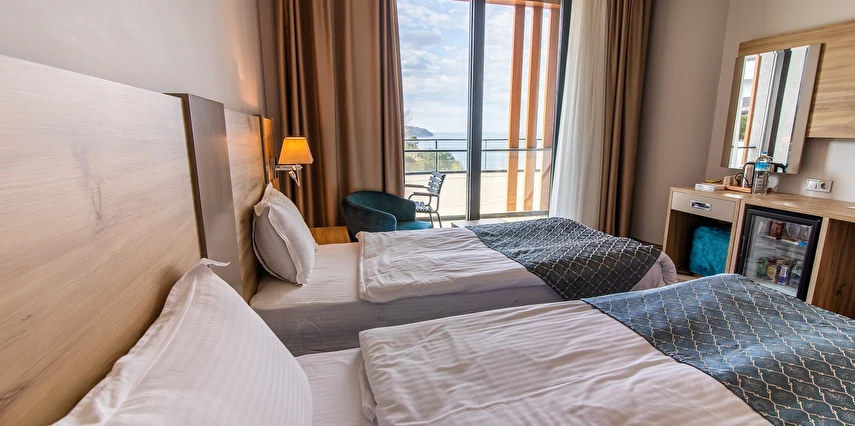 Blue Mudanya Hotel, "Mudanya şehir merkezine" 5 dakika, "trilye" merkezine 10 dakika, "Mudanya Budo Feribot iskelesine" 3 km, "Güzelyalı İDO feribot iskelesine" 8 km, Bursa şehir merkezine ise 25 km mesafede bulunmaktadır. Bu nedenle, hem dinlenmek, hem de iş amaçlı seyahatler için ideal bir konumdadır. Konuklarının ihtiyaçlarını karşılamak için tasarlanmış odaları ve imkanları ile Blue Mudanya Hotel, Marmara Denizi’nin güzel manzarasını koşulsuz müşteri memnuniyetine dayanan doğru hizmet anlayışıyla sizlere sunuyor.