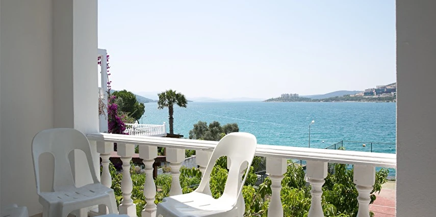 Odalardan plaj ve havuza bahçe içerisinden kademeli olarak basamaklarla inilir.