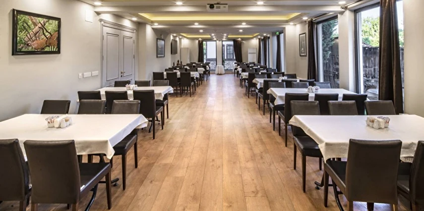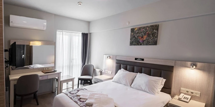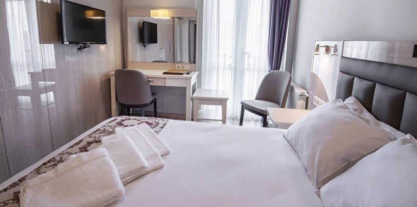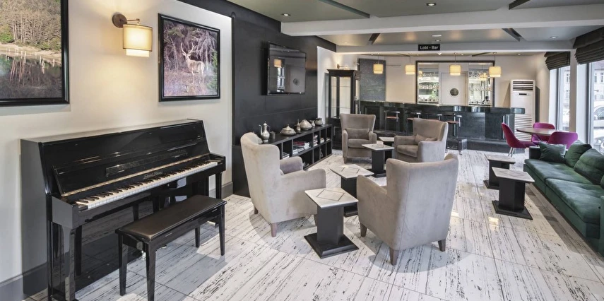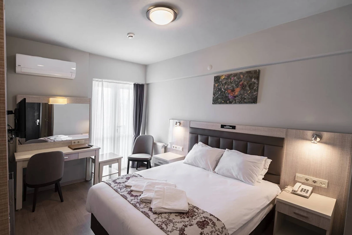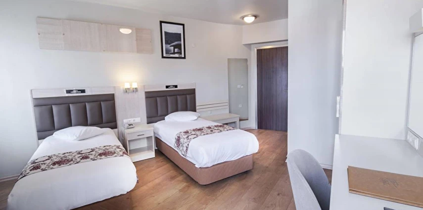 Daha Fazla GösterBolu’nun merkezi bir noktasında misafirlerini ağırlayan Bolu Köroğlu Hotel, Bolu Müzesi’ne 650 m mesafede yer alıyor. 50 odası ile misafirlerine konforlu bir konaklama deneyimi vadeden tesiste, sabahları yerel lezzetler ile zenginleştirilmiş bir kahvaltı servis ediliyor. Köroğlu Hotel bünyesinde yer alan spor salonu, hareketli ve sağlıklı yaşamdan vazgeçmeyen misafirler için hizmet veriyor. Tesisin kendine ait otoparkı bulunuyor. Dileyen misafirler tesisin terasında keyifli vakit geçirebilir. İş amacıyla seyahat eden misafirlerin kullanımına yönelik hizmet veren bir konferans salonuna sahip olan Köroğlu Hotel, dinlenmek isteyen misafirlerine de sauna imkanı sunuyor. Tesiste ayrıca çamaşırhane de bulunuyor. Tatilin yanı sıra iş seyahatleri için de uygun fırsatlar sunan Bolu Köroğlu Hotel, sabahları sunduğu yerel kahvaltısı ve ev konforunda odalarıyla misafirlerini bekliyor. Tesis, Bolu Otogarı’na yalnızca 3 km mesafede konumlanıyor.