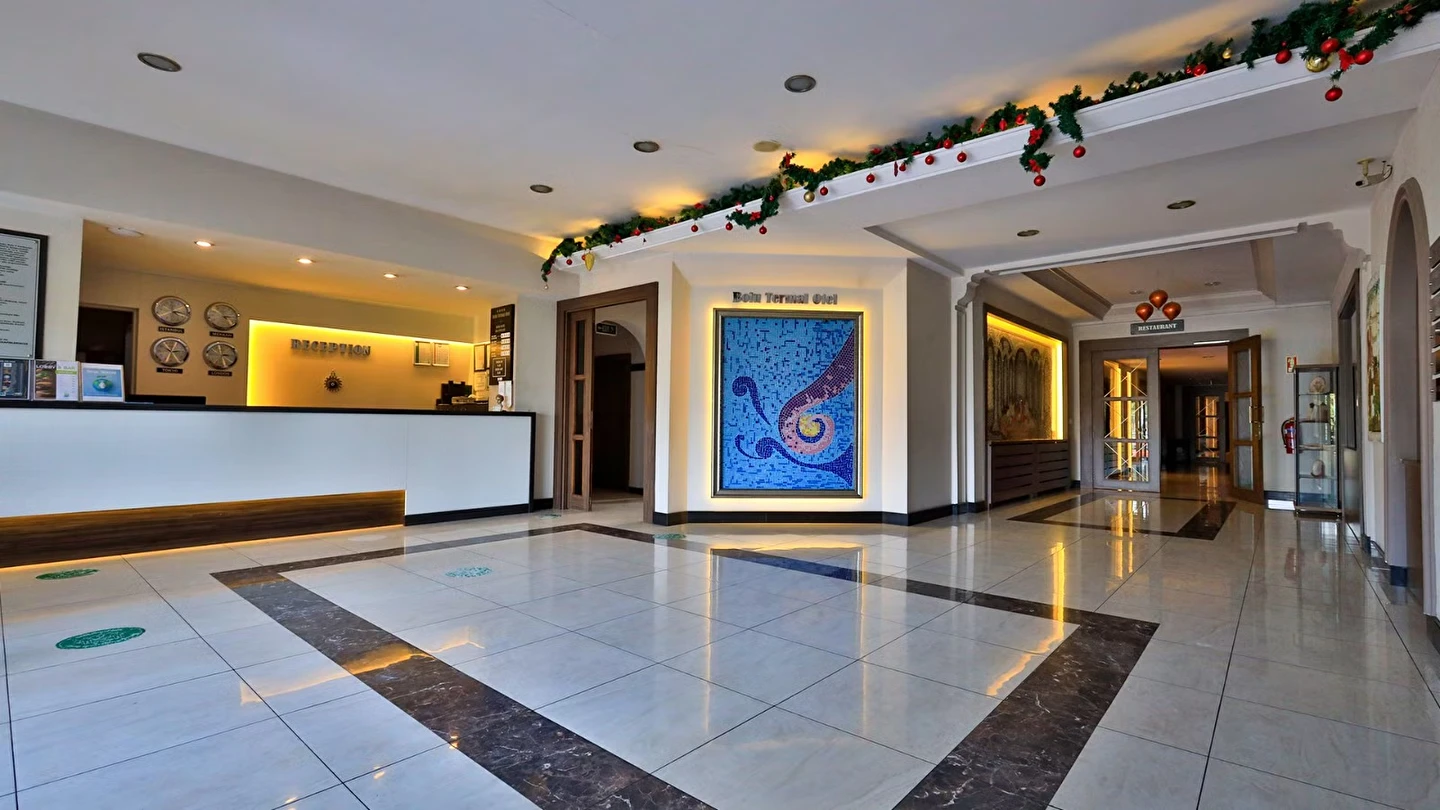 -Tesisten bulunan termal su kaynaktan gelmektedir. Termal suyun sıcaklığı 42 derecedir.