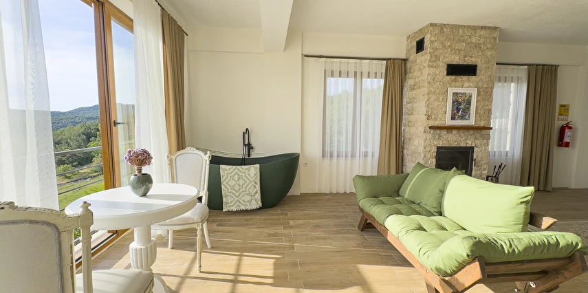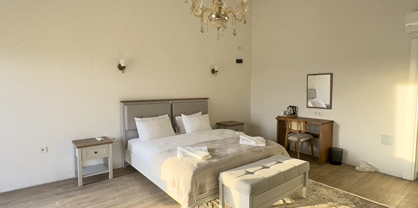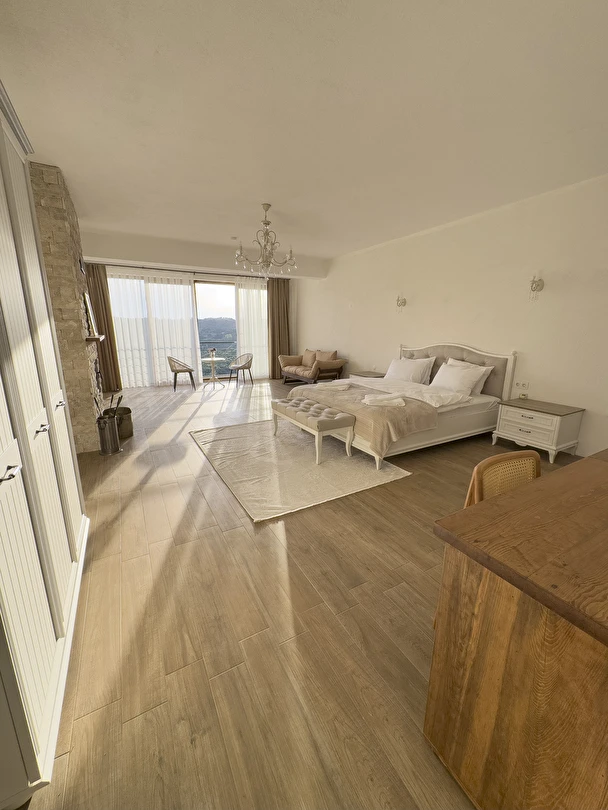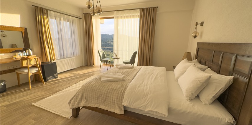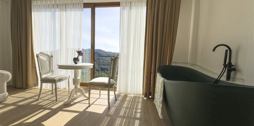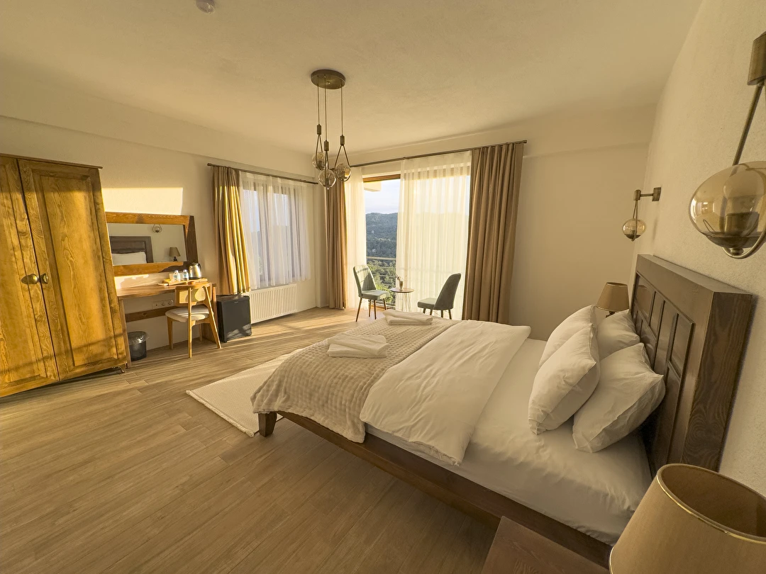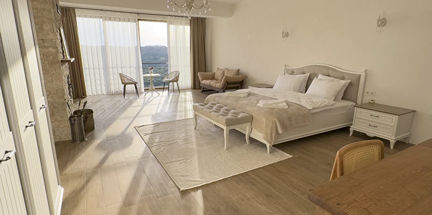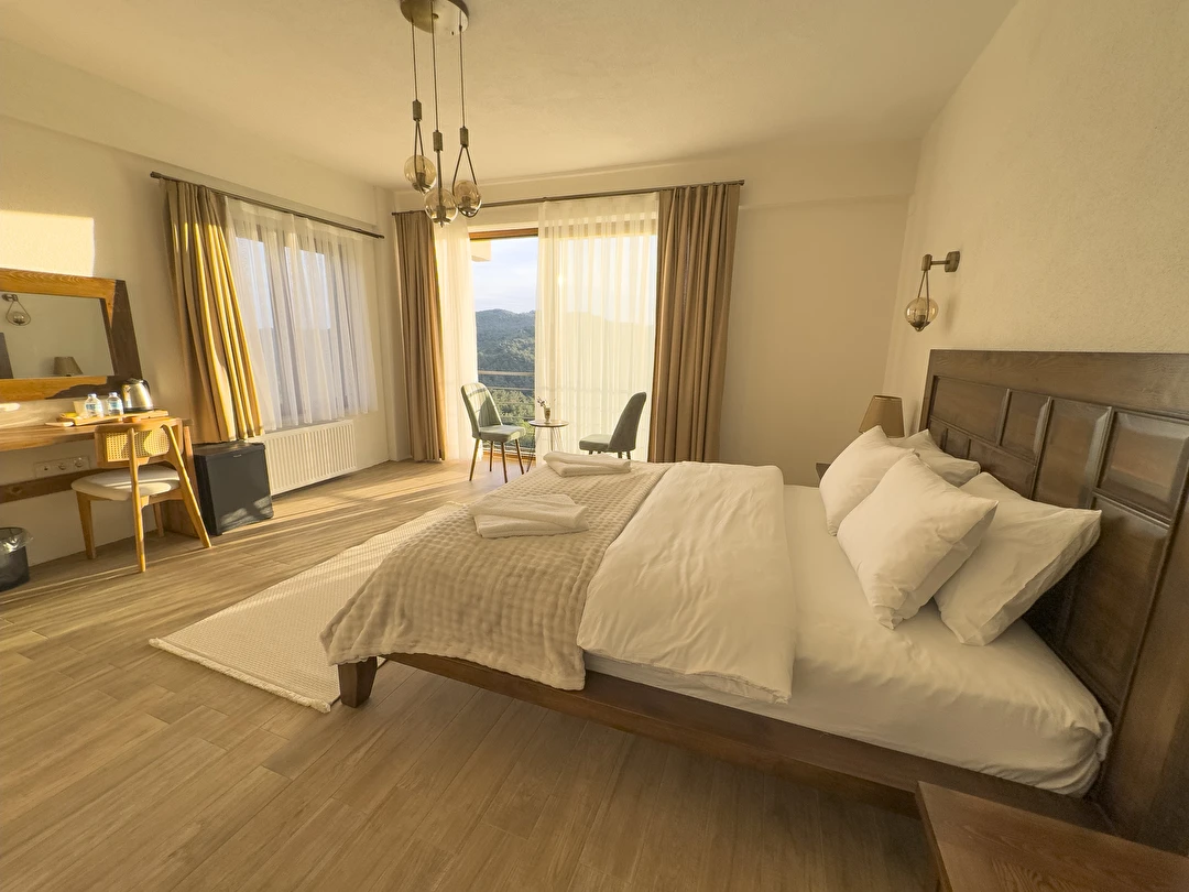 Doğa ve Deniz Manzaralı Odalar: Her odada, masmavi deniz ve yemyeşil doğa manzarasına karşı uyanabilirsiniz. Taş duvarların sıcaklığı, şömineli odalarımızla birleşerek, kış aylarında bile içinizi ısıtan bir atmosfer yaratıyor. Bona Dea'nın adını taşıyan bu huzurlu ortamda, her şey sağlığınız ve rahatınız için düşünülmüştür.