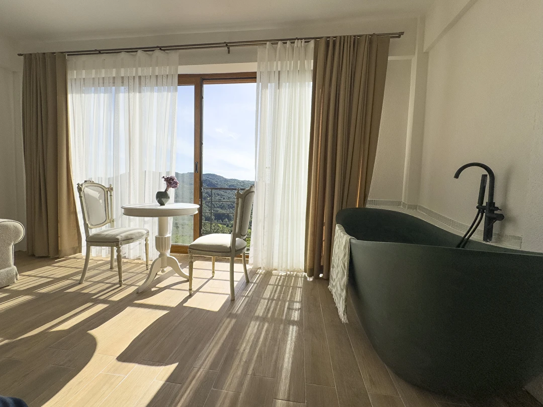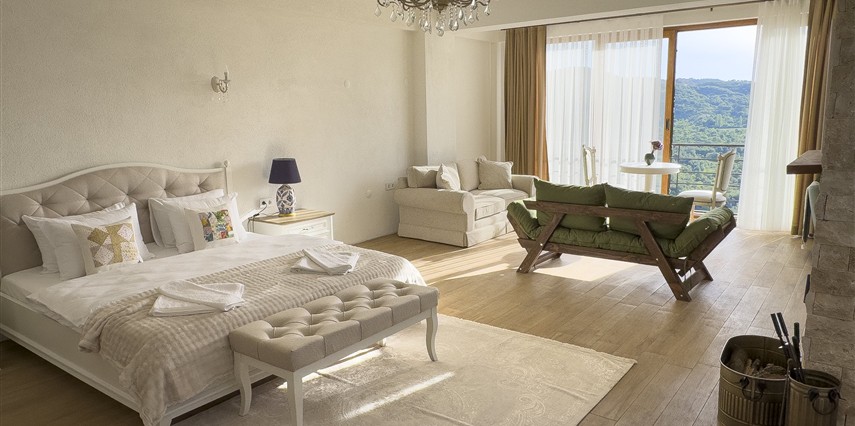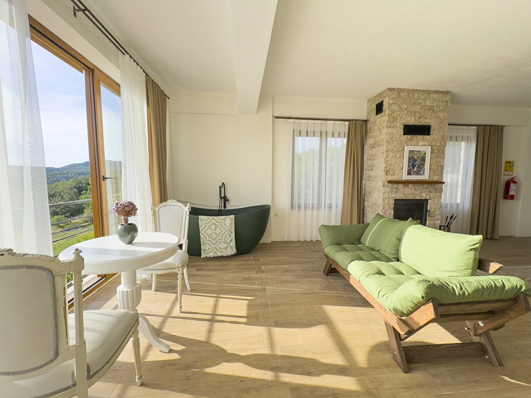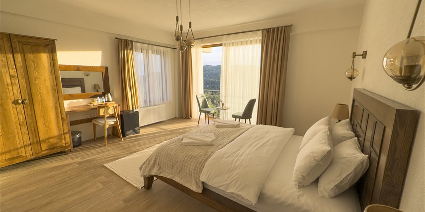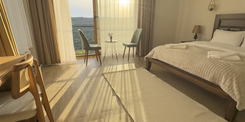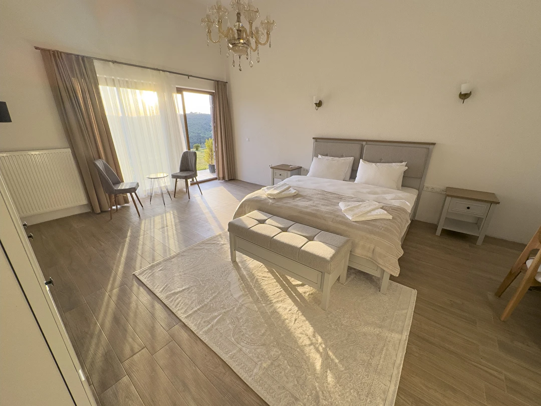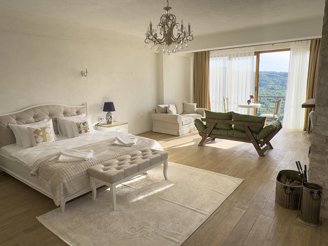 Doğa ve Deniz Manzaralı Odalar: Her odada, masmavi deniz ve yemyeşil doğa manzarasına karşı uyanabilirsiniz. Taş duvarların sıcaklığı, şömineli odalarımızla birleşerek, kış aylarında bile içinizi ısıtan bir atmosfer yaratıyor. Bona Dea'nın adını taşıyan bu huzurlu ortamda, her şey sağlığınız ve rahatınız için düşünülmüştür.