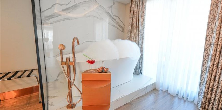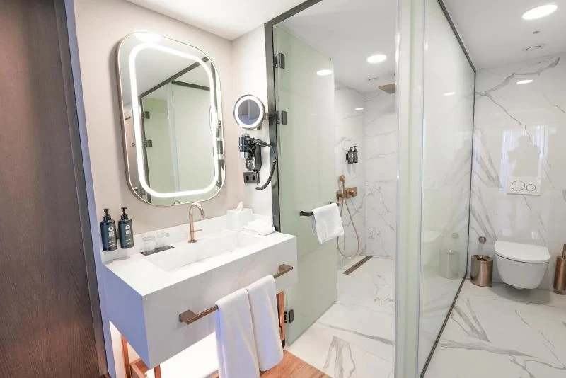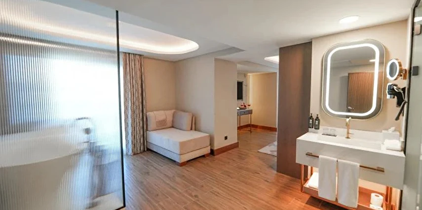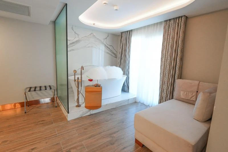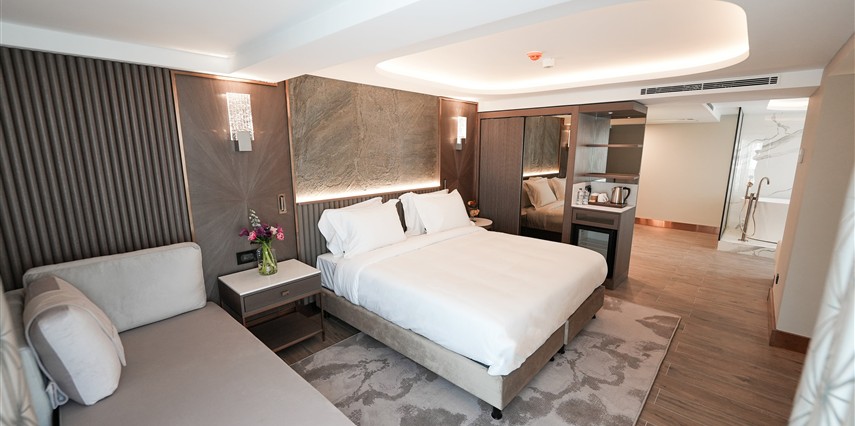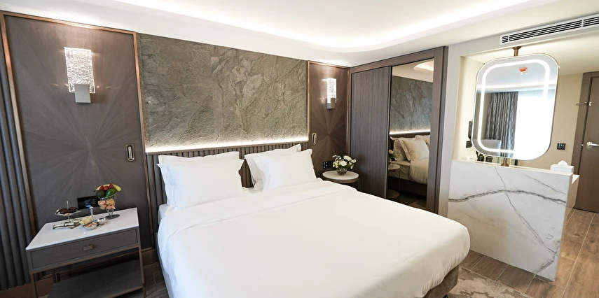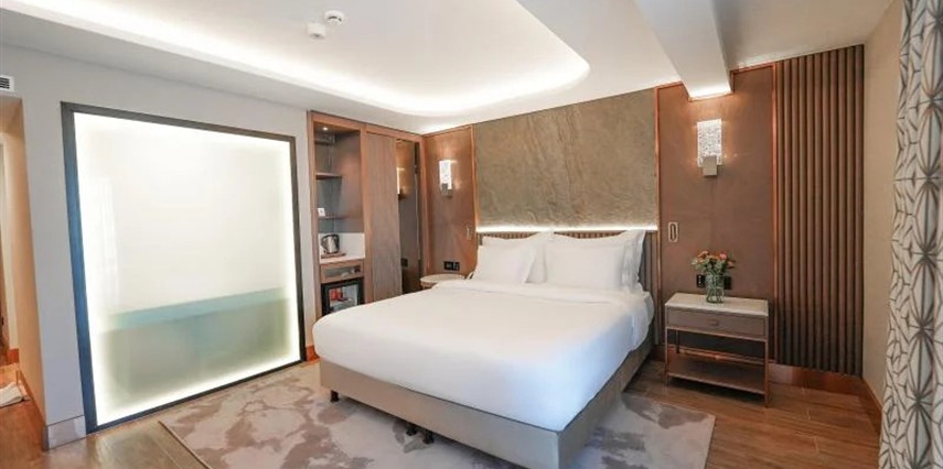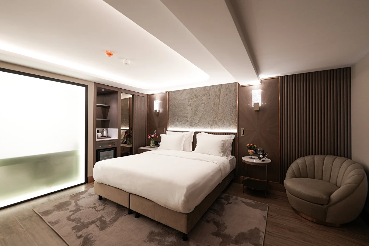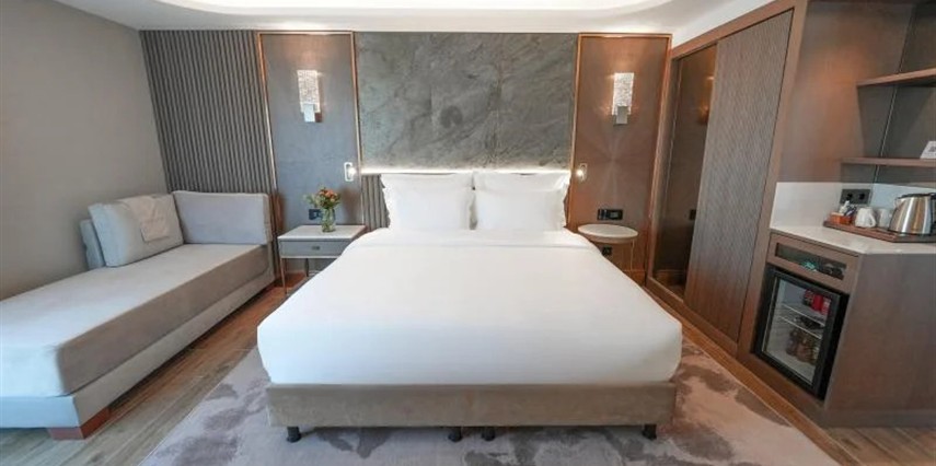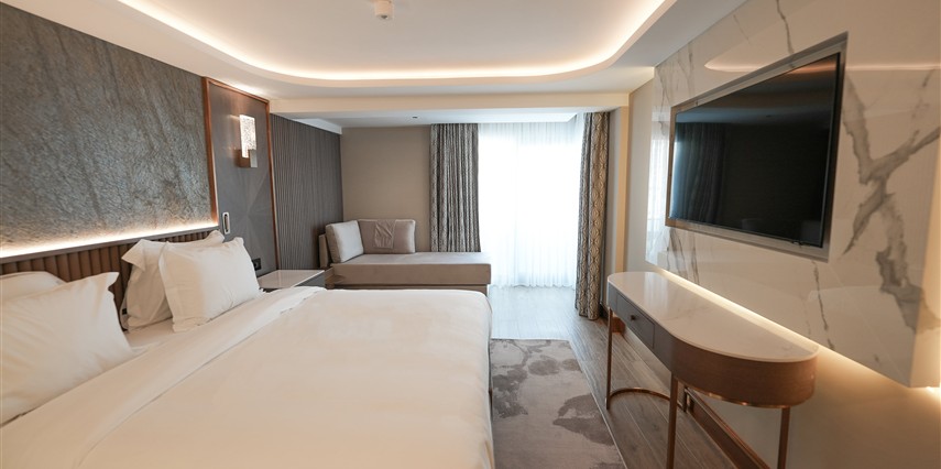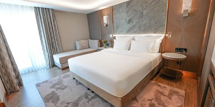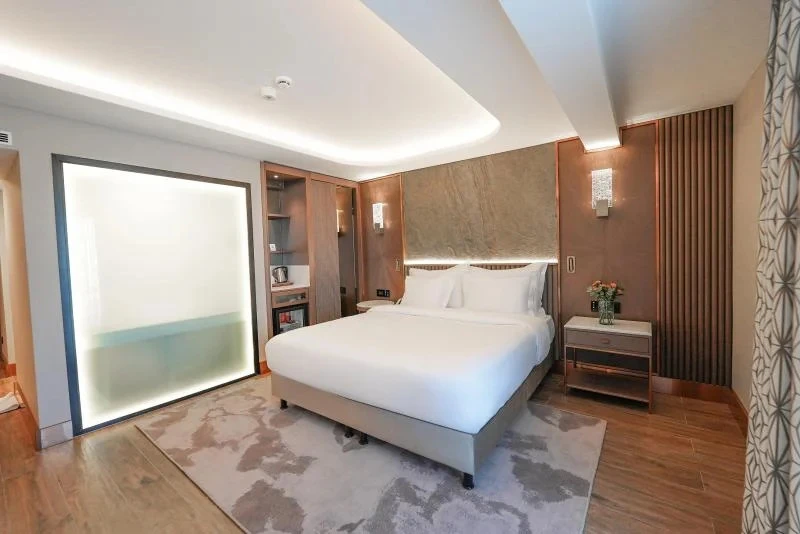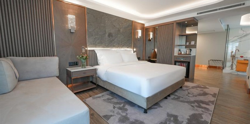 Misafirler konfor ve şıklığı bir arada buldukları geniş odalarda, yüksek hızlı Wi-Fi, klima, ses yalıtımlı alanlar, mini bar ve düz ekran TV gibi çağdaş olanaklarla donatılmıştır. Sabahlar zengin açık büfe kahvaltı ile başlarken, tesisin restoran ve bar alanlarında yerel ve uluslararası lezzetler servis edilir.