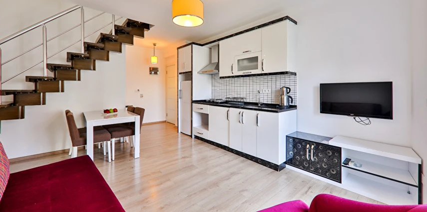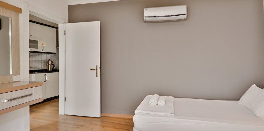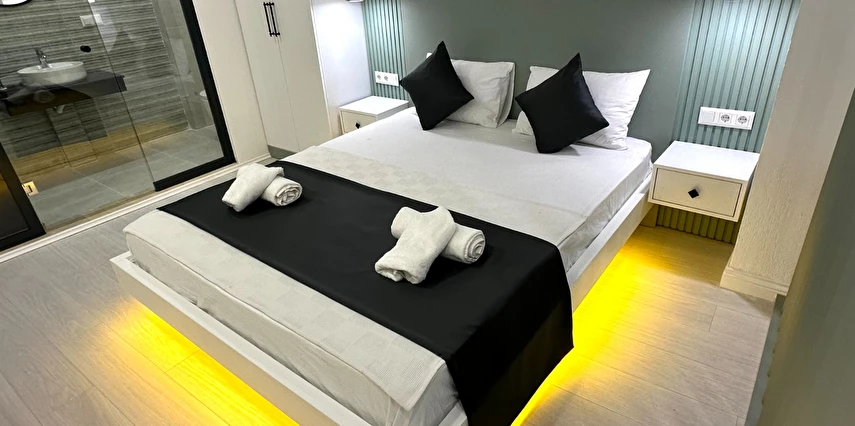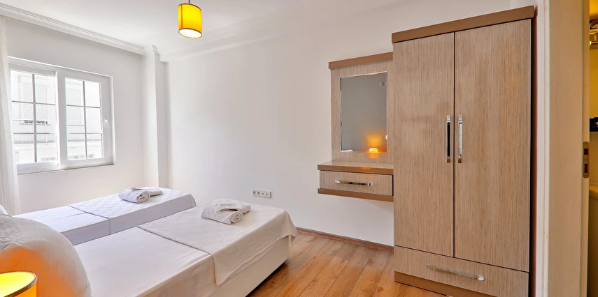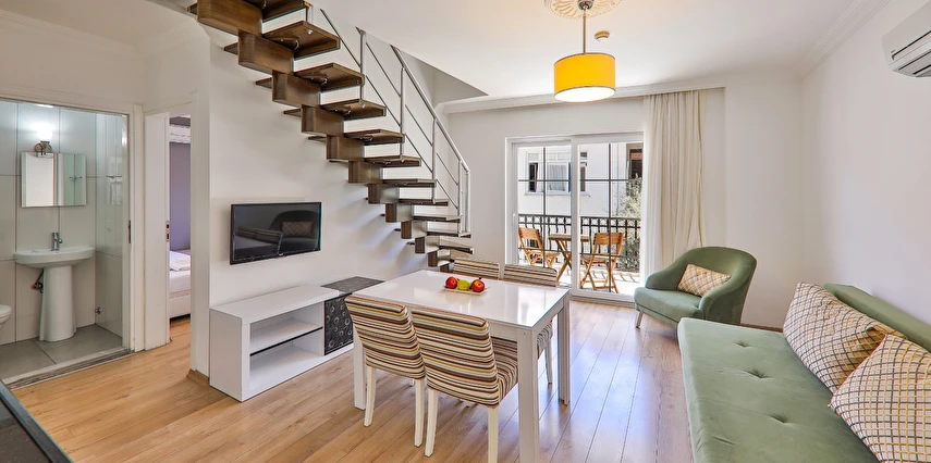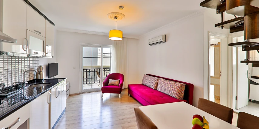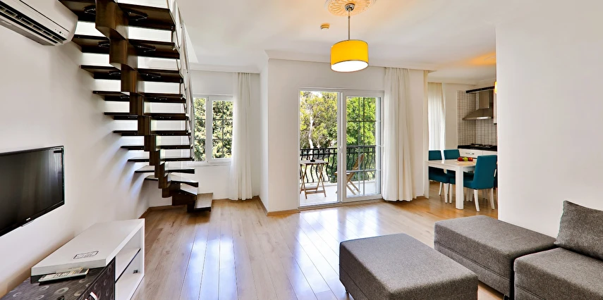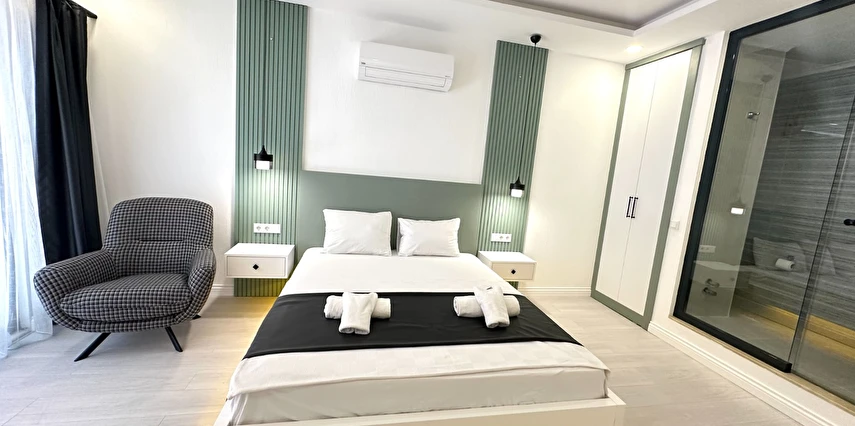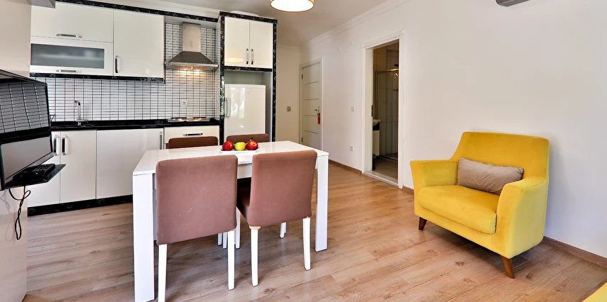 Modern ve kullanışlı şekilde dizayn edilmiş apart daireleri; mutfaklı yaşam alanları, konforlu yatak odaları ve ferah iç mekânlarıyla hem kısa hem de uzun süreli konaklamalar için uygundur. Merkezi konumu sayesinde Kaş çarşısına, plajlara, restoranlara ve kafelere yürüyerek ya da kısa sürede ulaşabilirsiniz.