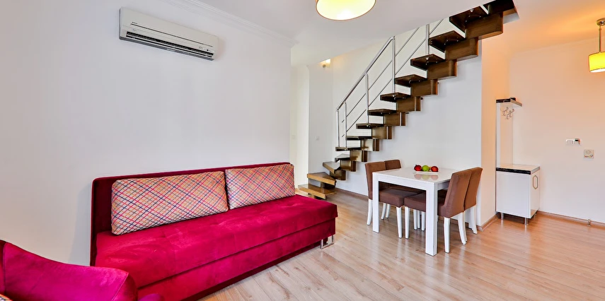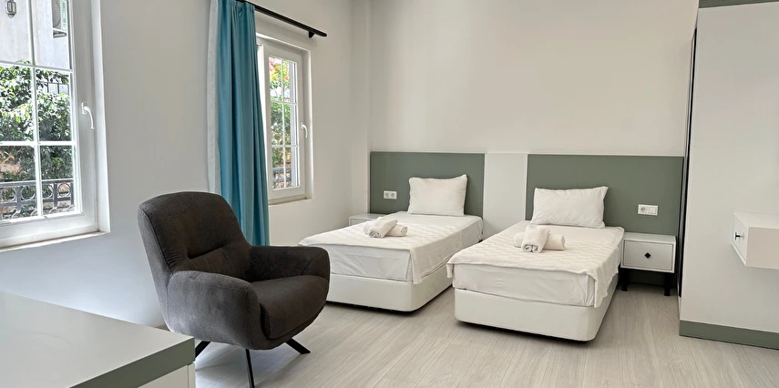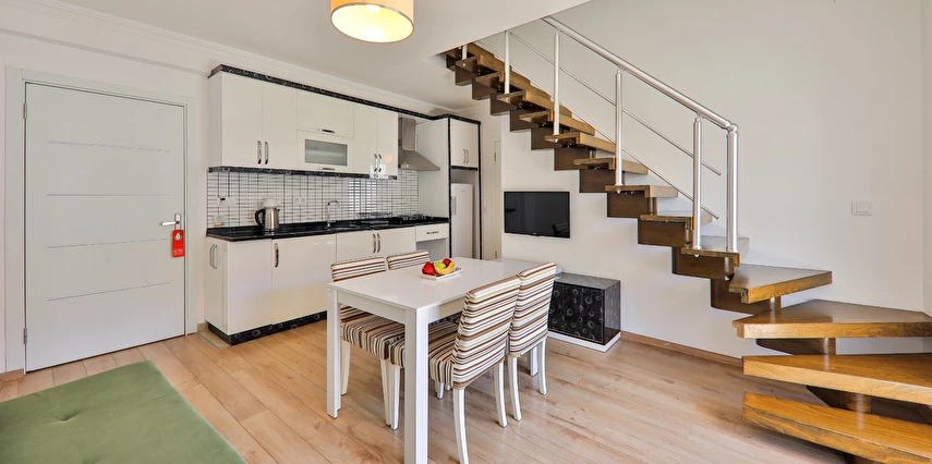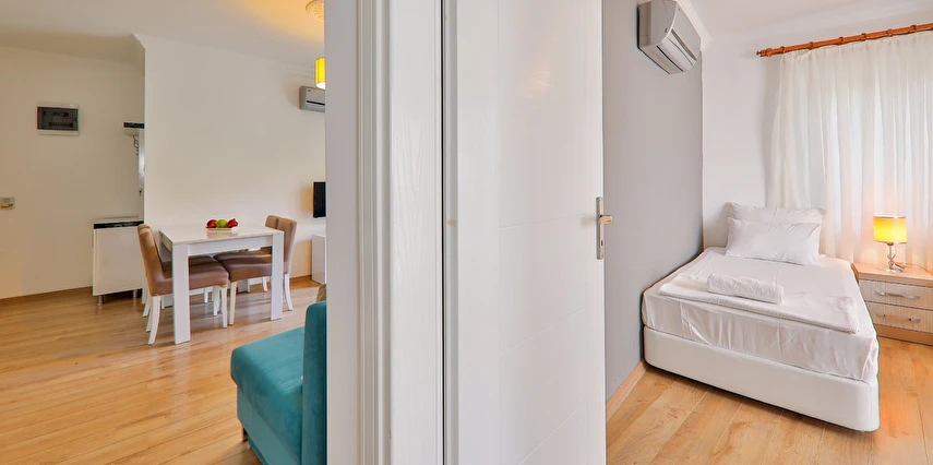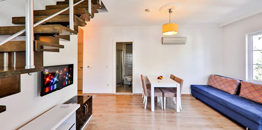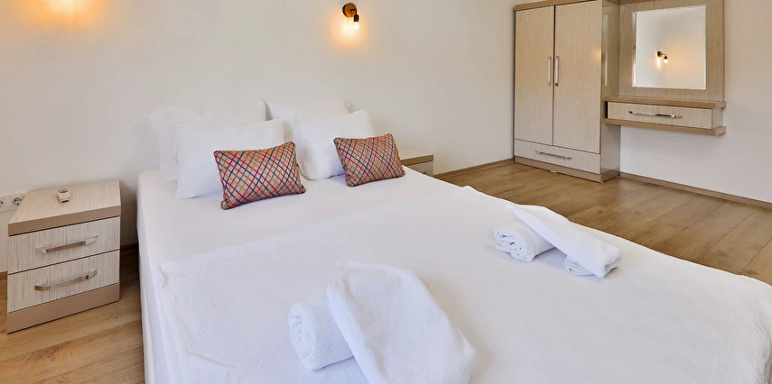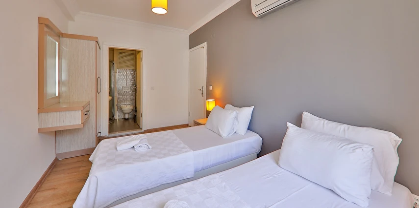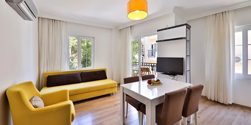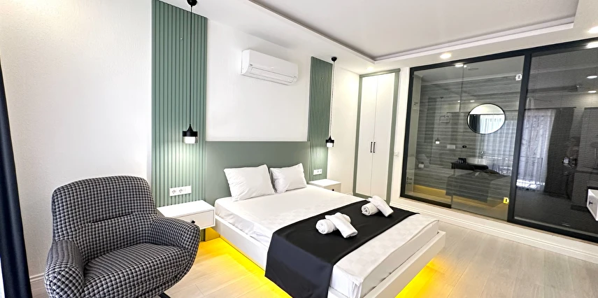 Modern ve kullanışlı şekilde dizayn edilmiş apart daireleri; mutfaklı yaşam alanları, konforlu yatak odaları ve ferah iç mekânlarıyla hem kısa hem de uzun süreli konaklamalar için uygundur. Merkezi konumu sayesinde Kaş çarşısına, plajlara, restoranlara ve kafelere yürüyerek ya da kısa sürede ulaşabilirsiniz.