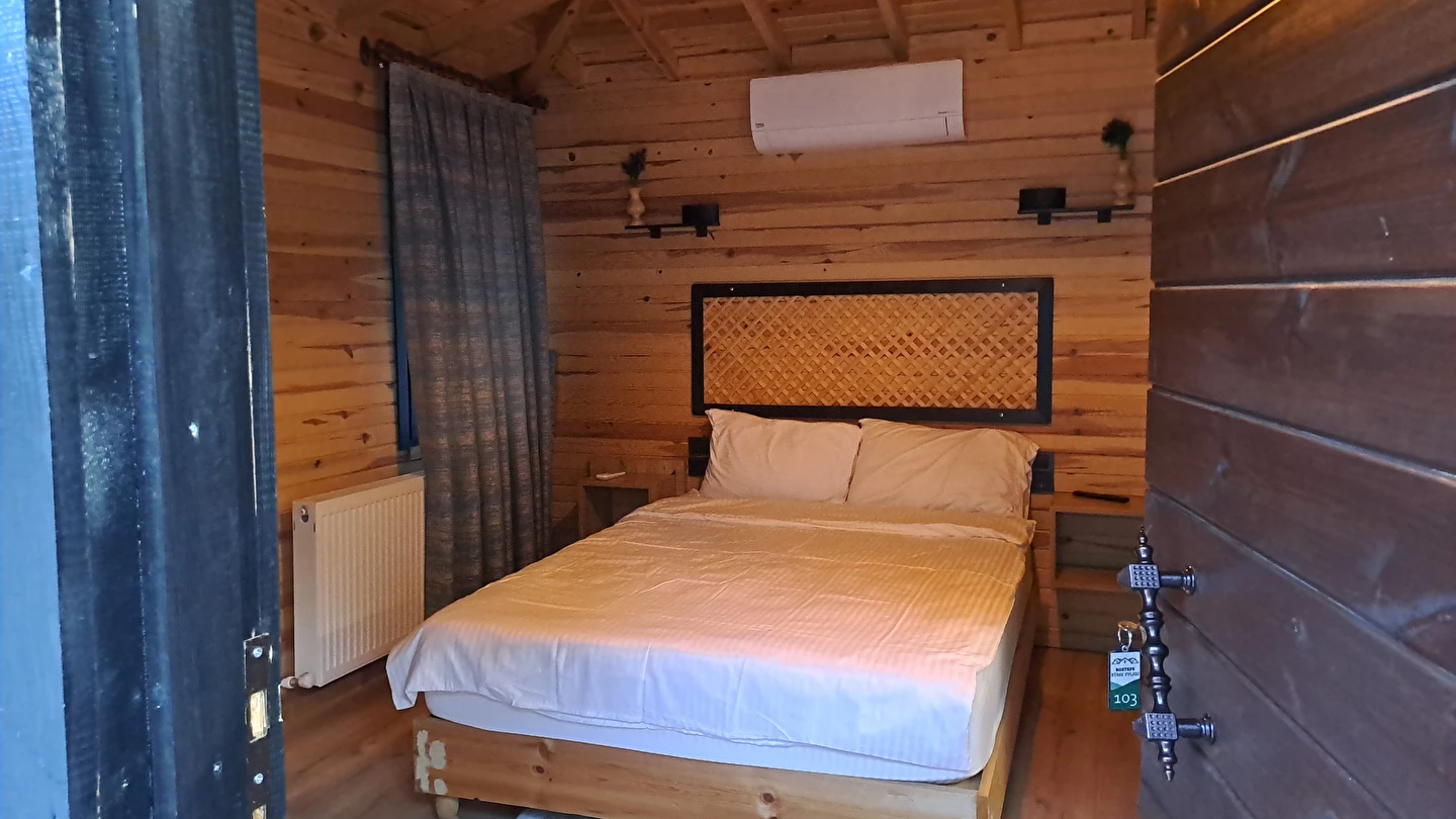 Daha Fazla GösterBoztepe Küme Evleri, şehir merkezine yakın ama bir o kadar da doğayla baş başa bir konumda yer alır. Ahşap tasarımlı küme evlerde konaklarken doğanın tüm huzurunu hissedebilirsiniz.Tesis konumu itibarıyla Karadeniz’in temiz havasını solurken, Ordu’nun simgesi haline gelen Boztepe Teleferiği ve panoramik şehir manzarasına kolay ulaşım fırsatı sağlar. Aynı zamanda çevredeki yürüyüş rotaları ve yeşil alanlar doğa tutkunu ziyaretçiler için idealdir.