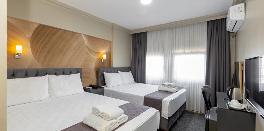 Otelin genel alanları modern mimari çizgilerle tasarlanmış olup sıcak ve davetkâr bir ambiyansa sahiptir. Gün boyu dinlenebileceğiniz lobisi, iş toplantıları ve kısa molalar için ideal alanlar sunarken, profesyonel ve güler yüzlü personeli her an misafir memnuniyetini ön planda tutar. Temizlik, düzen ve hizmet kalitesi tesisin öne çıkan güçlü yönleri arasında yer alır.