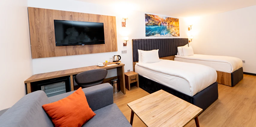 Otelin klimalı odalarında çalışma masası, su ısıtıcısı, minibar, emanet kasası, düz ekran TV ve duşlu özel banyo bulunmaktadır. Tüm konuk odalarında gardırop bulunmaktadır.