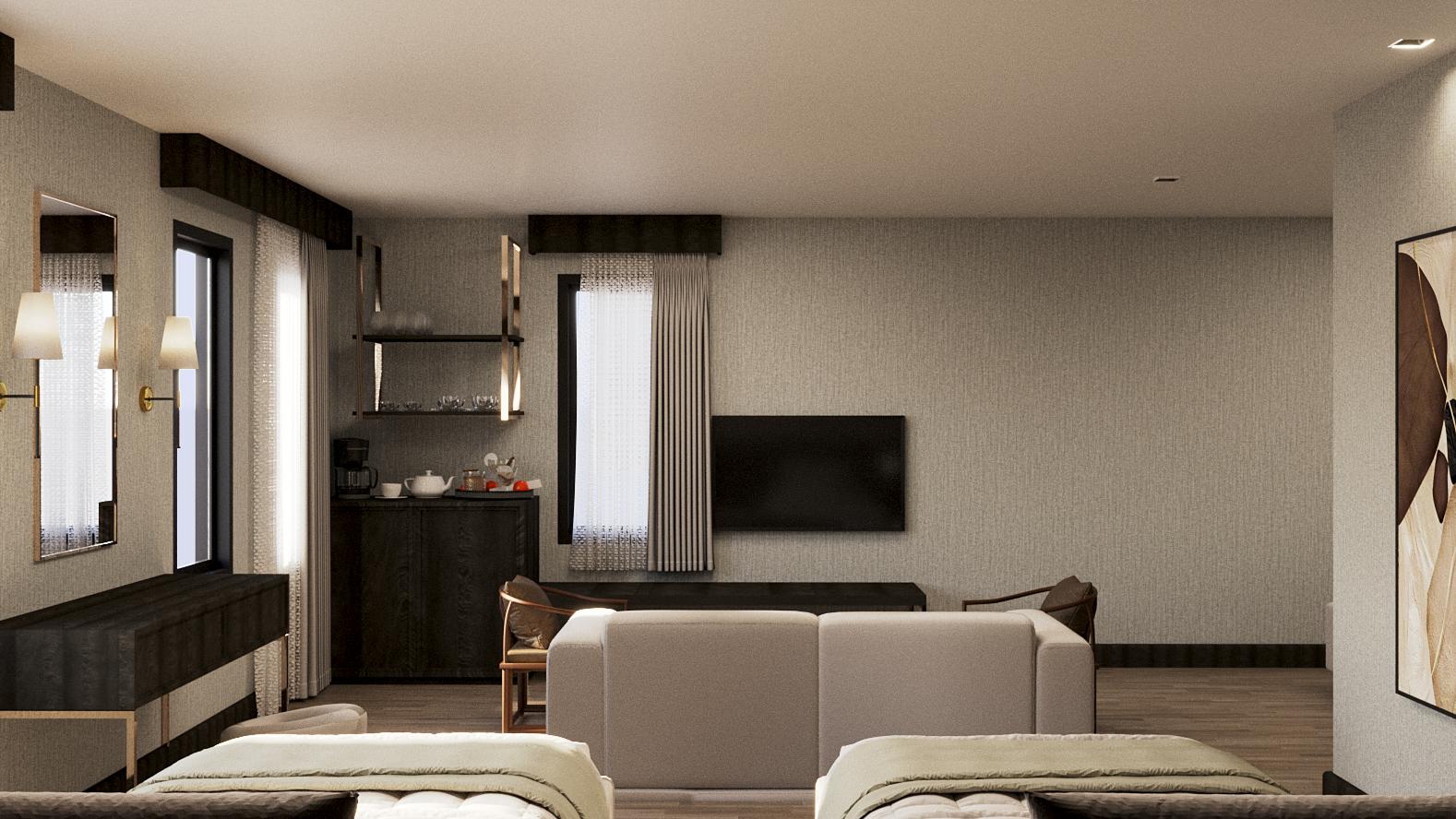 Panoramik Mezopotamya ve Mardin şehir manzarası sunan odalar