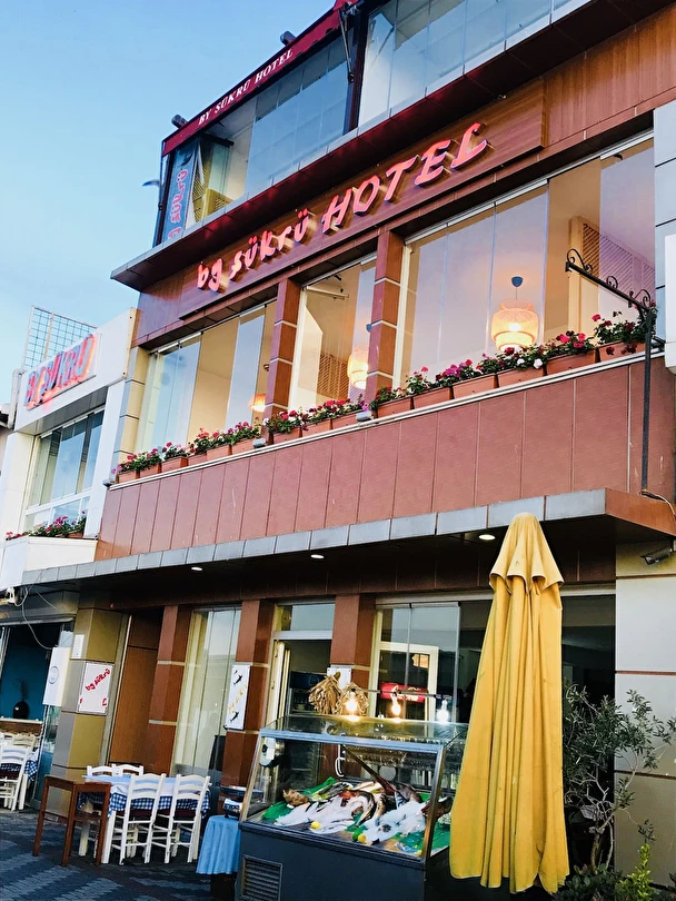 Daha Fazla GösterDeniz manzarasına sahip By Şükrü Otel, elverişli konumu ve güler yüzlü personelleriyle misafirlerine keyifli bir konaklama alternatifi sunuyor. By Şükrü Otel'in odalarında; klima, TV, uydu yayın, Wi-Fi, banyo, 7/24 sıcak su, havlu seti, saç kurutma makinesi, banyo buklet malzemeleri gibi olanaklar mevcuttur. By Şükrü Otel'de restoran ve otel konsepti haricinde, cumartesi geceleri canlı performanslar, müthiş eğlenceli geceleriyle ruhunuzu dinlendirebileceğiniz, eşsiz anılar edinebileceğiniz deniz kenarında konaklama hizmeti sunar.