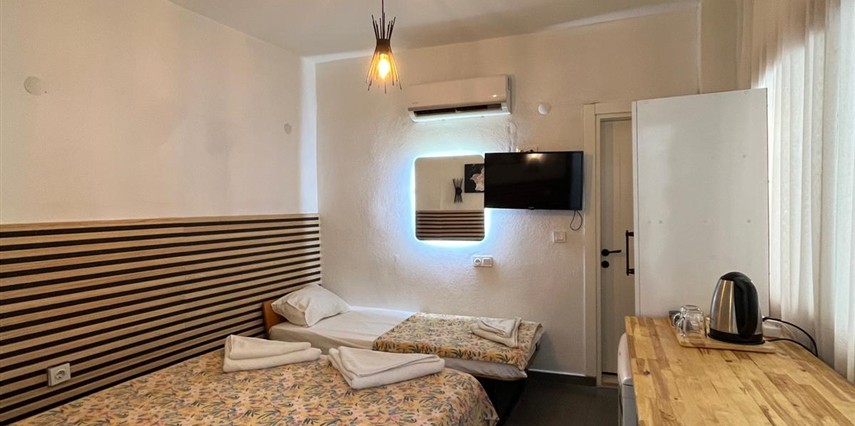 Sadece oda konsepti uygulanan otelimizde çevre fırınlardan temin edeceğiniz kahvaltılığınıza sabah saatlerinde sunduğumuz çay ikramımız eşlik edecektir.