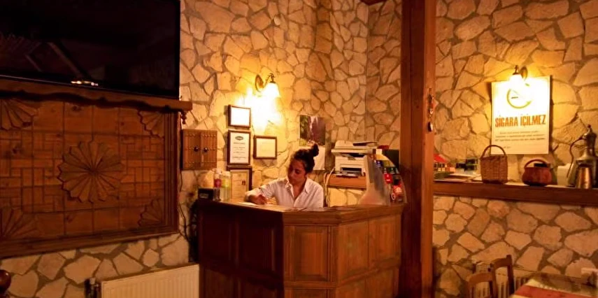 Otelimizde ayrıca 30 kişilik kapalı restoran ve 40 kişilik açık restoran ile gün boyu geleneksel yemekler (yaprak sarma, gözleme, mantı, cevizli baklava, su böreği, vb..) ve her türlü alkolsüz sıcak ve soğuk içecekler ile hizmetinizdedir.