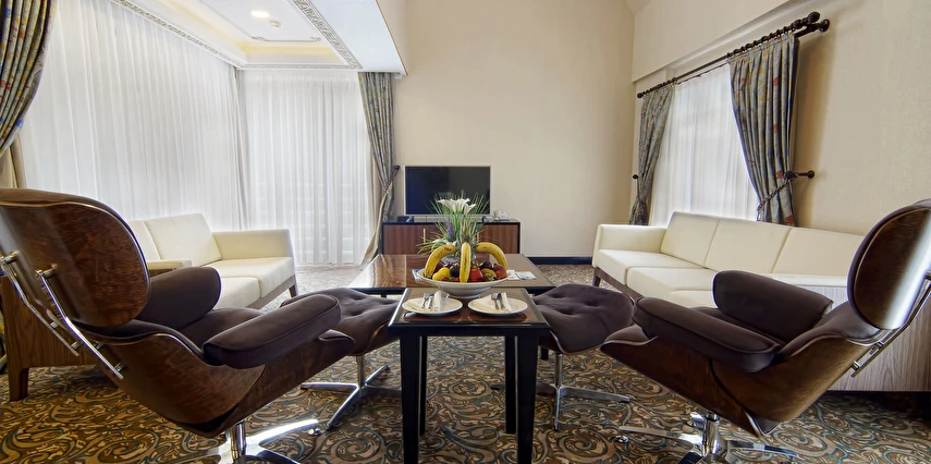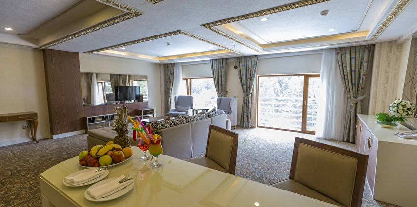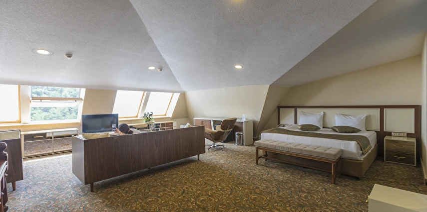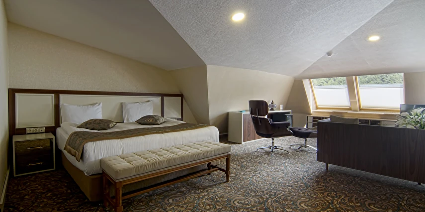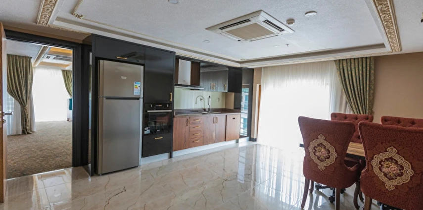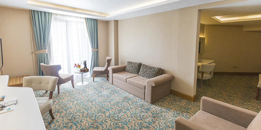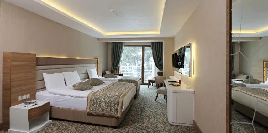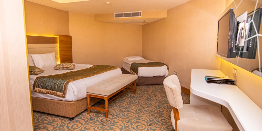 Geniş, ferah ve konfor odalar modern detaylarla tasarlanmış olup, misafirlerin dinlenme ve rahatlama ihtiyaçlarına eksiksiz şekilde cevap verir.