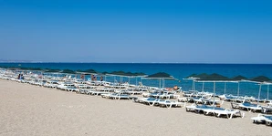 Şezlong ve şemsiye plajda hizmet vermektedir.