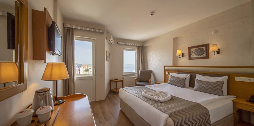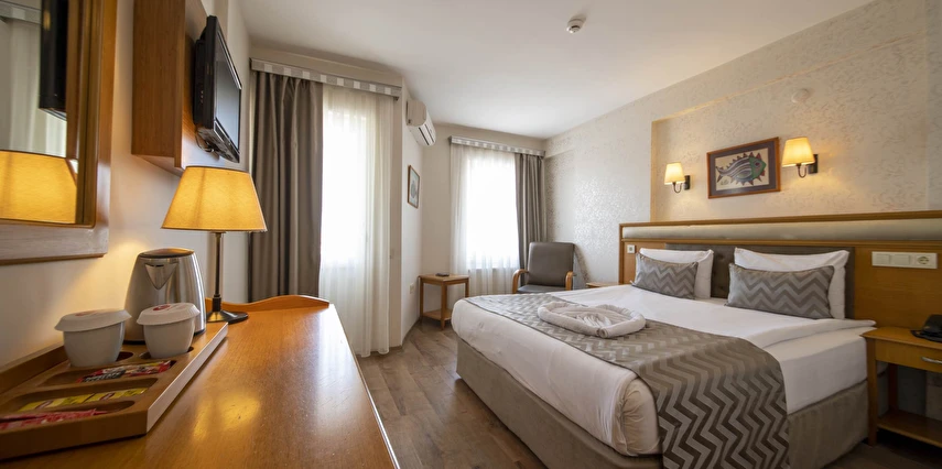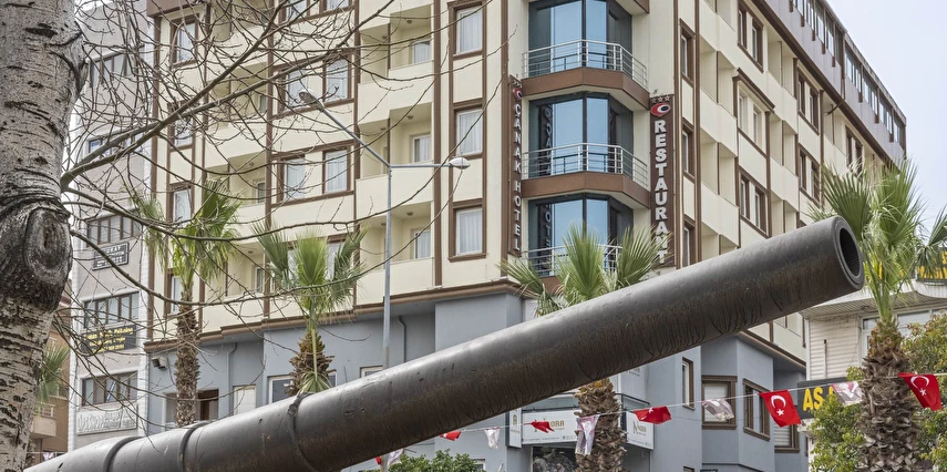 Daha Fazla GösterDoğal güzelliği ve tarihi zenginliği ile dikkat çeken Çanakkale’de hizmet veren Çanak Hotel, konforlu odaları, resmi organizasyonların düzenlendiği toplantı odası ve deneyimli personelleriyle keyifli bir tatilin kapılarını aralıyor. Tesisin Çanakkale Boğazı’na hakim terasında eşsiz manzaranın tadını çıkarabilirsin. Çanakkale’nin tarihi ve turistik yerlerine yakın mesafede konumlanan Çanak Hotel, hem iş hem turizm odaklı konaklamalar için ideal. Boğaz manzaralı terasıyla öne çıkan tesis, sahile ve feribot iskelesine 150 m, havalimanına 3 km uzaklıkta yer alıyor.