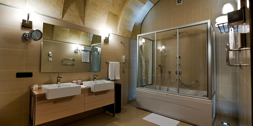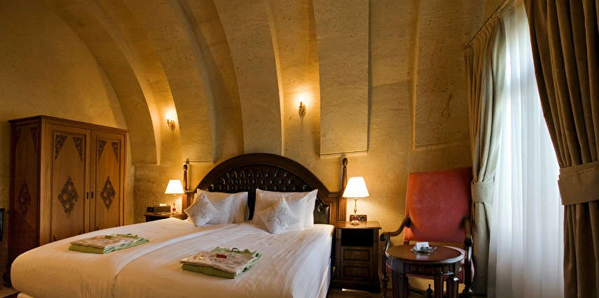 CCR Cappadocia Cave Resort & Spa, taş işçiliğine dayalı geleneksel mimarisi, şık ve sade dekore edilmiş odaları ve önemli tarihi yapılara yakın mesafesiyle misafirlerin keyifli zaman geçirmesini sağlıyor. Sabahları açık büfe kahvaltı servisiyle güne başlayabileceğiniz tesiste; masaj hizmeti, jakuzi, kar odası, hamam, tuz odası, buhar odası, SPA merkezi, kuaför, butik gibi pek çok olanak bulunuyor. Tatilde de zinde kalmak isteyenler için fitness merkezi ve güneşin keyfini çıkarmak isteyenler için açık yüzme havuzu mevcut. CCR Cappadocia Cave Resort & SPA, Nevşehir Kapadokya Havaalanı’na 38 km mesafede konumlanıyor.